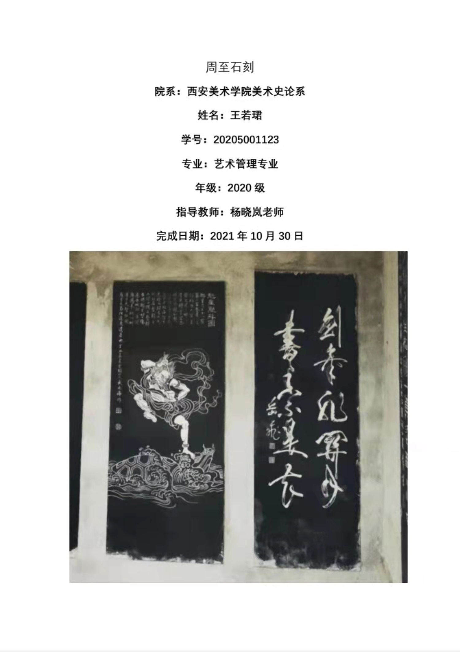 石刻属于雕塑艺术,是运用雕刻的技法在石质材料上创造出具有实在体积的各类艺术品。中国古代石刻种类繁多。古代艺术家和匠师们广泛地运用圆雕、浮雕、透雕减地平雕、线刻等各种技法创造出众多风格各异、生动多姿的石刻艺术品。周至石刻起源于明清时期的黑河岸边楼观台脚下余家村,武家受道教影响深厚,石刻技艺由石匠武德功学成之后带回周至地区,由武家世代传承石刻技艺,到如今我们看到的武元海老师,已经是第四代周至时刻的传承人。由实地考察观察得出,周至时刻的石刻手法为平面雕加阴线刻的手法,石刻题材较为多样,有神话故事,近现代革命故事,四书五经等。石刻字体也较为多样,包含楷书,隶书,草书等多种字体。由此可以得出,周至石刻只是石刻艺术中的一个小的分支,起源时间较晚,并且由武家世代单传,传承谱系较窄,流传范围仅限于周至县而并没有发展到更大范围,并且在实地考察中,我们从武元海老师口中得知,周至石刻的发展并未得到当地政府和文化局应有的重视和扶持,周至石刻发展进展在资金和普及度上较为艰难。