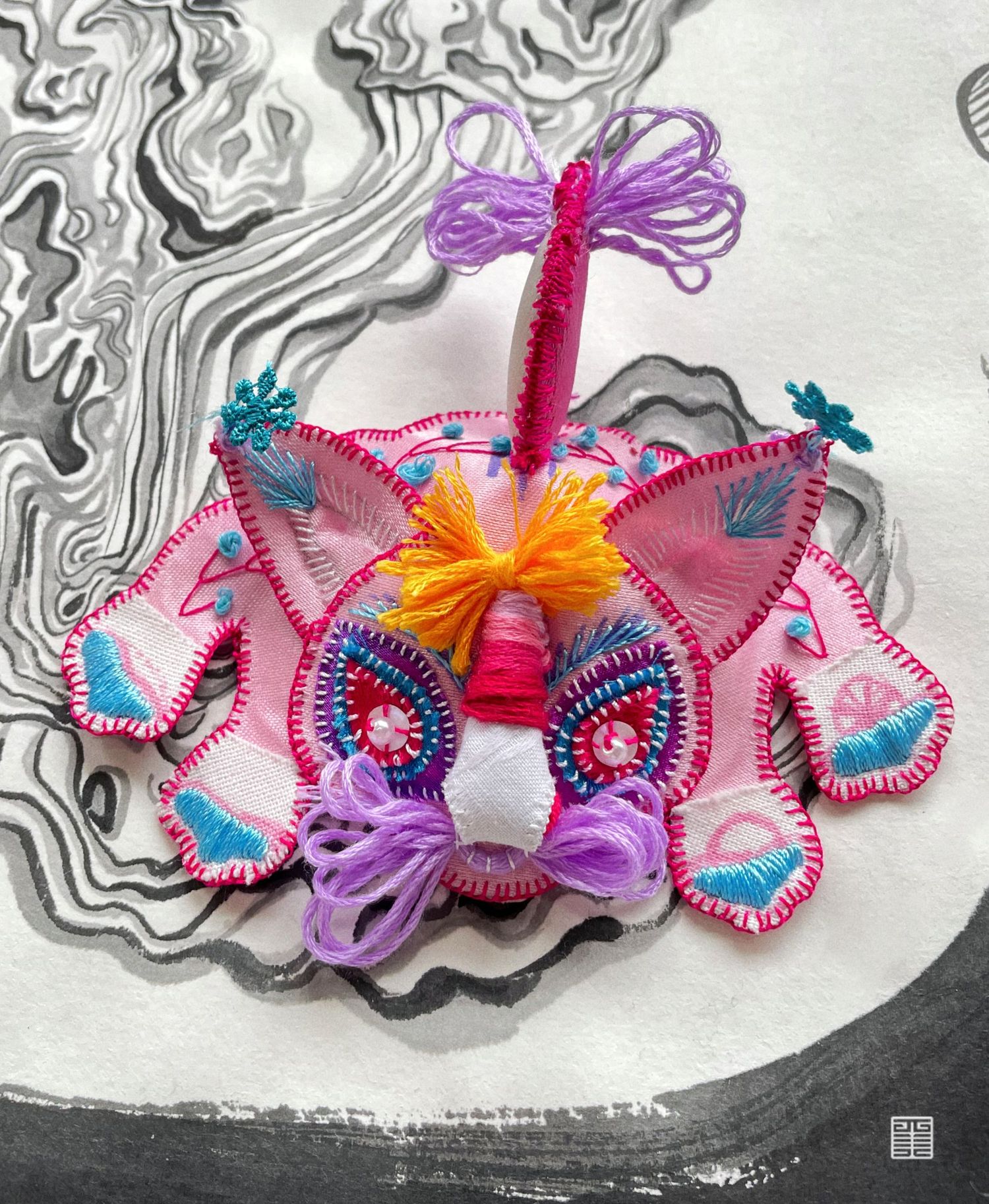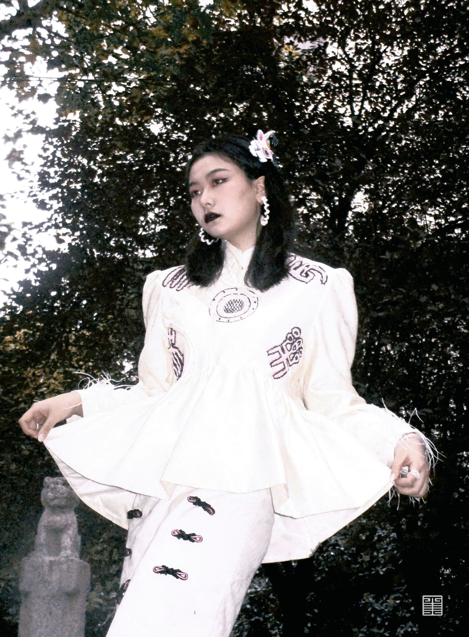 成衣以汉瓦中长乐未央的纹样为灵感,运用了澄城刺绣中打籽绣,锁链绣等方法呈现;考察笔记;传统动物刺绣