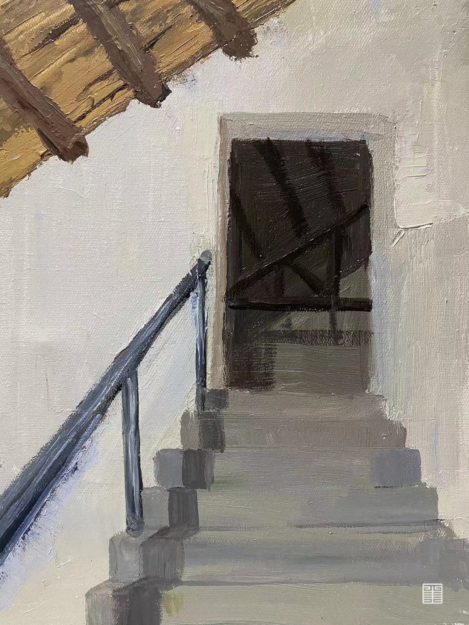 夜晚中,无意之间发现了这个打灯下的楼梯,阁楼的灰暗与门外的明亮形成鲜明对比,古朴的房梁显得非常融洽,少了这个房梁,这幅画就是不完整的。他或许不精细,但构图的感觉最为有趣,
