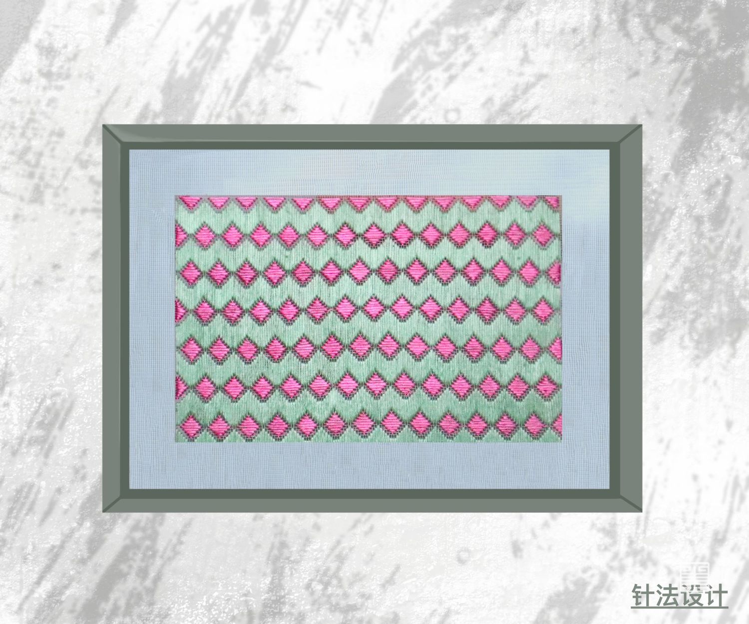 二、设计稿从属于针法,设计为制作服务:刺绣不是换了材料的绘画或照片,绣品的图案以针法显示深浅、远近、虚实的效果,就使秦绣具有了不同于绘画、照片的时空趣味和装饰韵味。秦绣在制作时要严格依网格施针,针法细密、严谨,多绣或少绣一格都无法将纹样继续绣下去,是纯手工精制的高档工艺品。但与精细的苏绣、蜀绣相比秦绣还是比较粗犷的。秦绣色彩多采用块面对比,古朴典雅,鲜活艳丽,具有黄土高原那种粗犷、豪放、凝重的艺术风格和装饰情调。