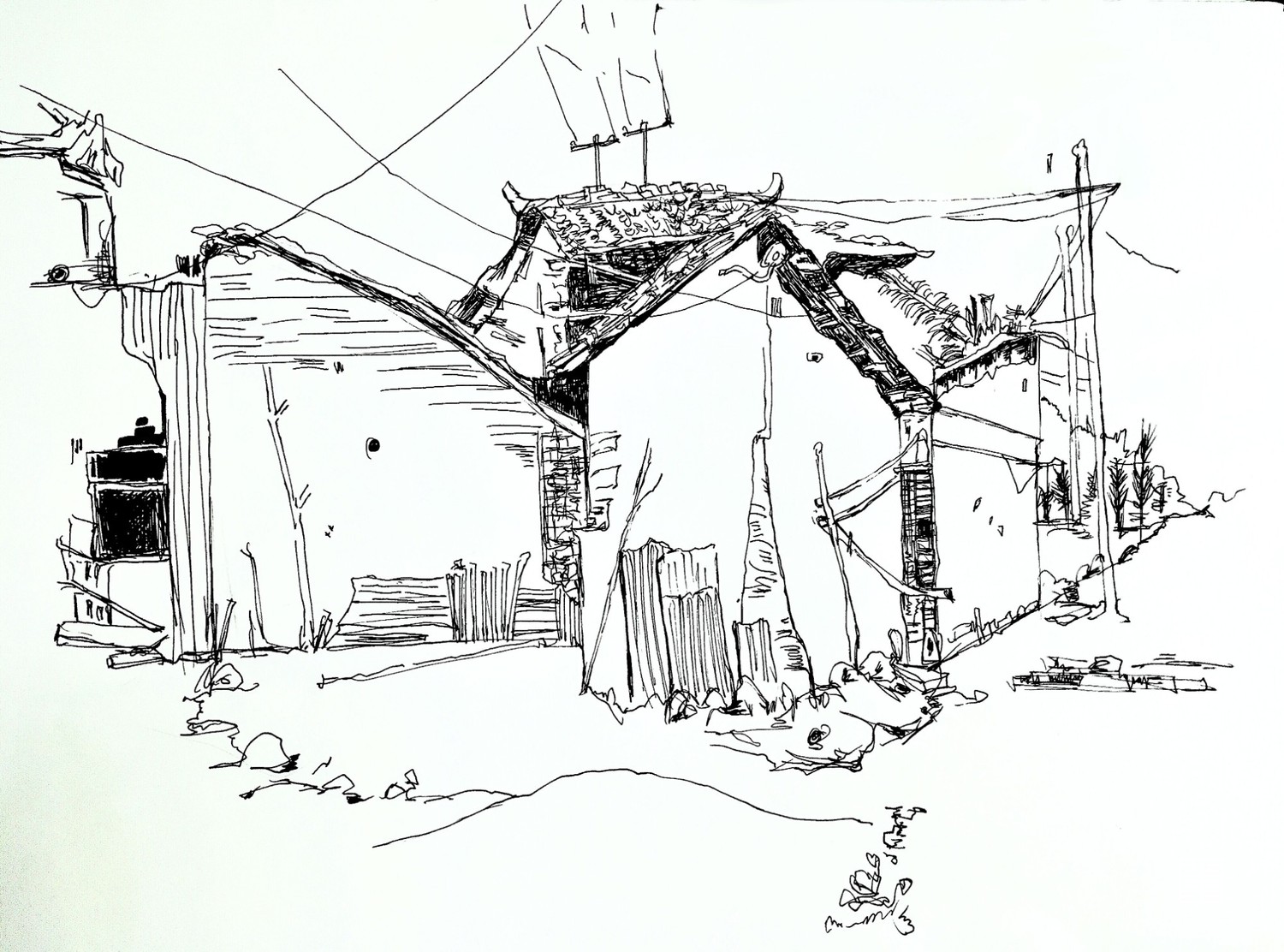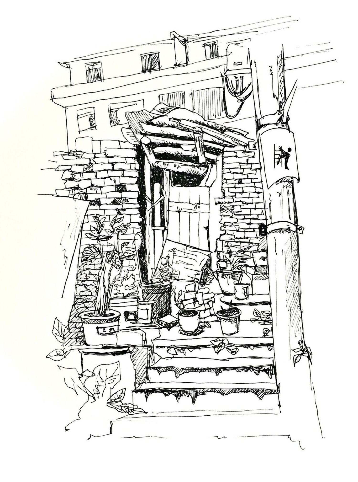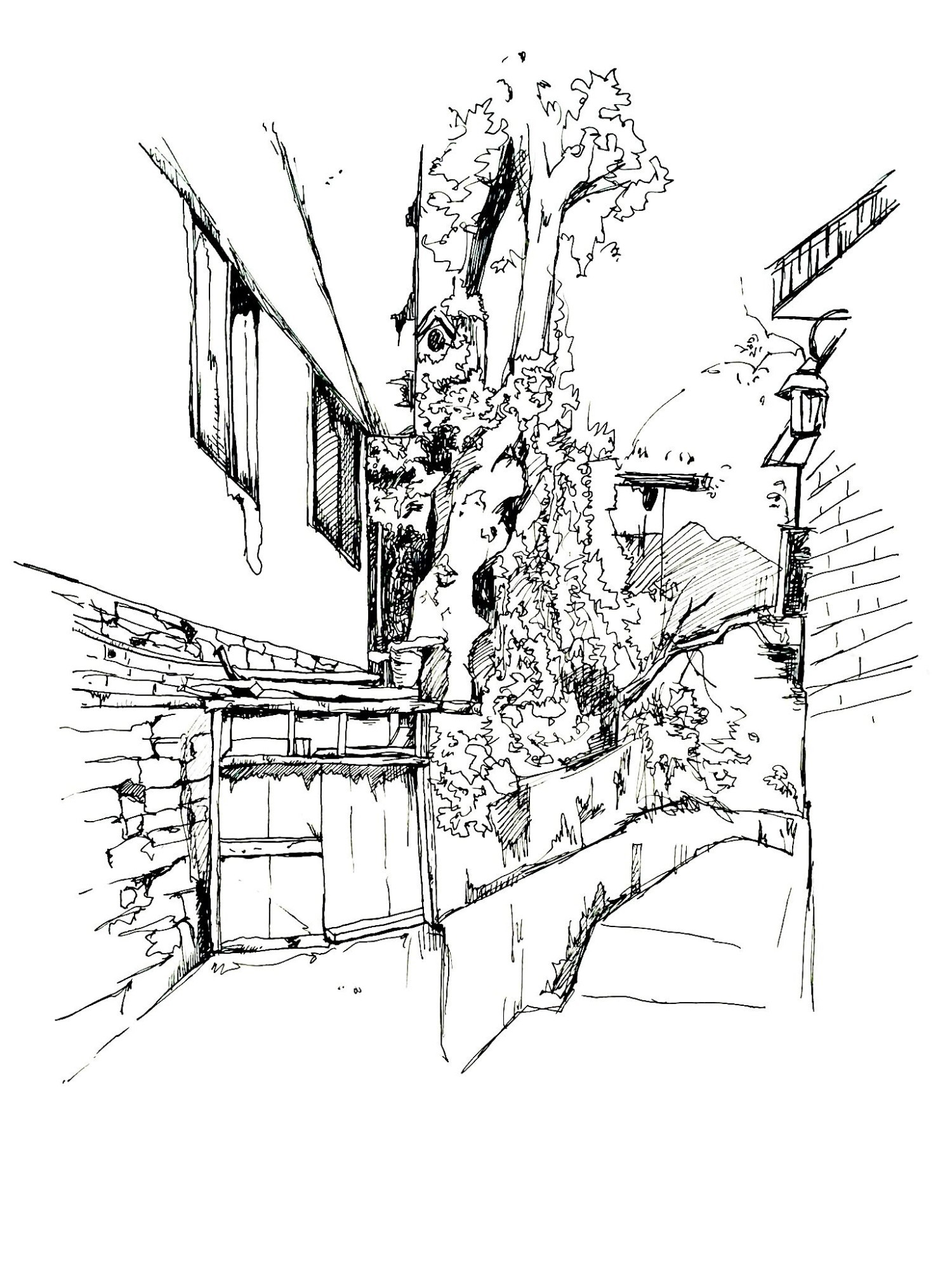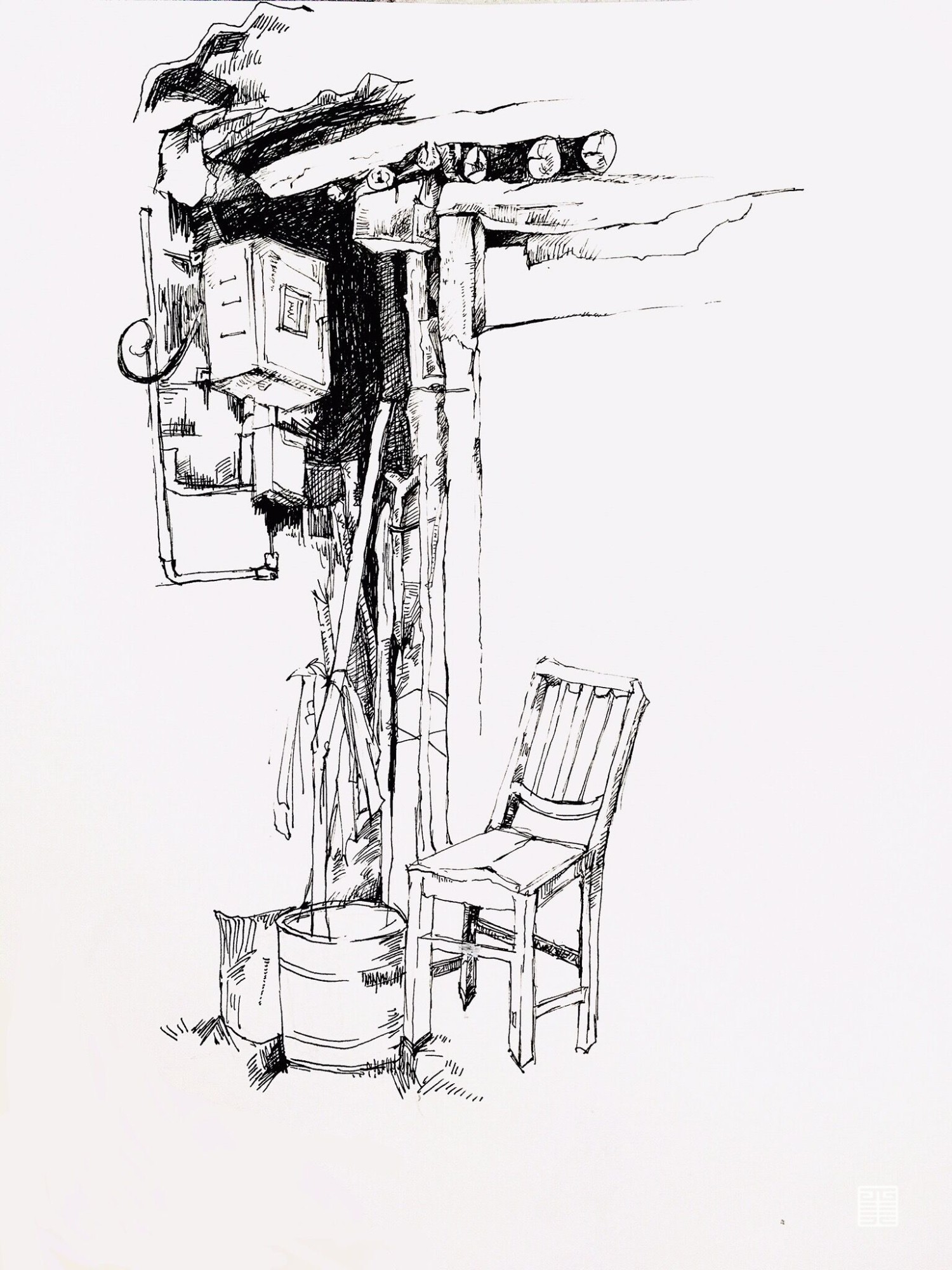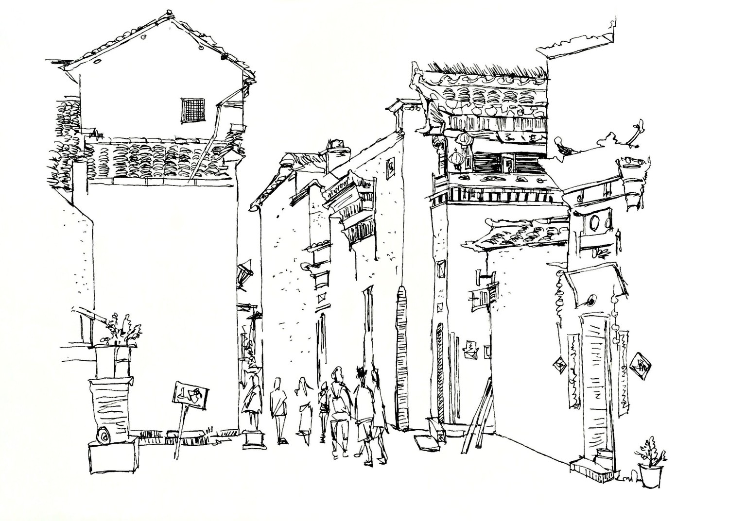 黑白针管笔探索县城乡村的独特味道