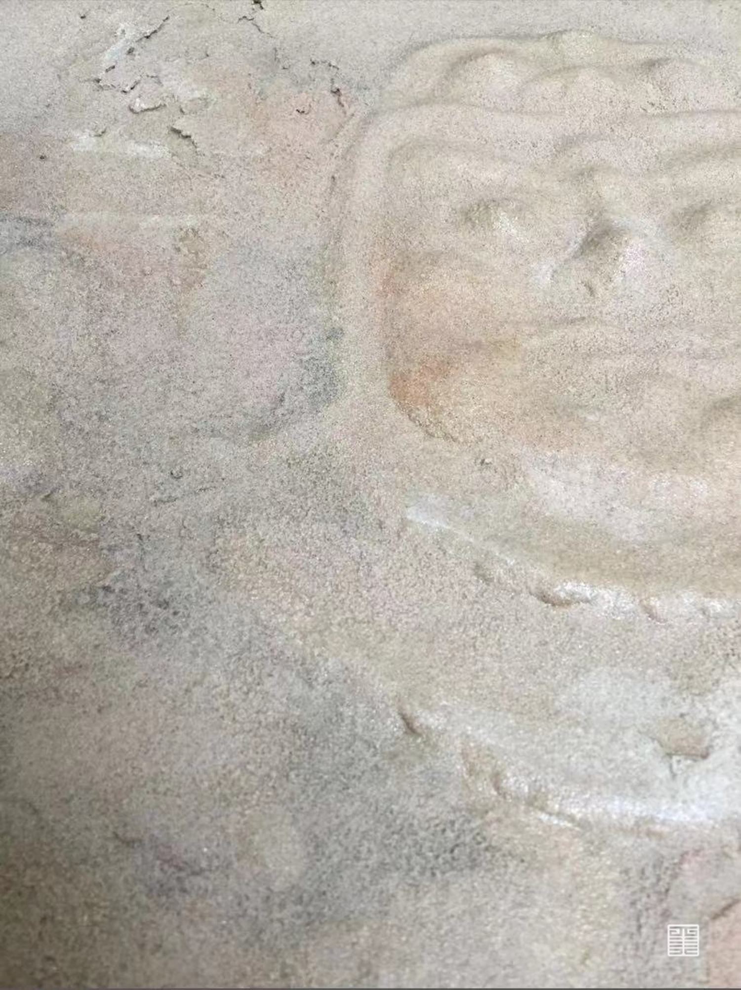 2021秋季中国古代雕塑考察论文及创作,研究性速写由数字绘画完成,最后一幅作品为结合过往壁画学习对麦积山的一幅石刻神像就行创作,材料为沙子,明胶,岩彩,尺寸40x40cm。