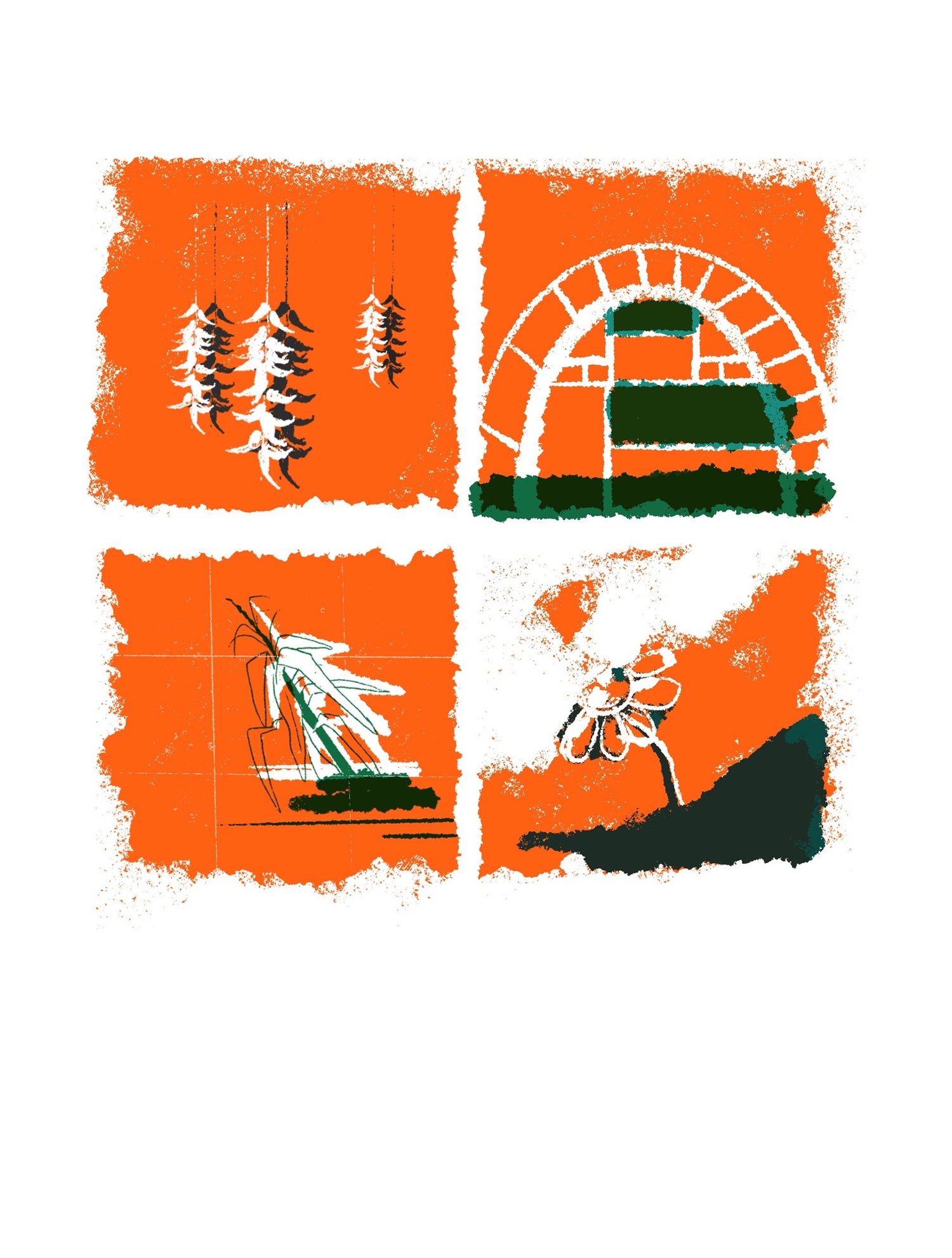 山梁上一眼望去便是一望无垠的黄土高坡,窑洞嵌在一个一个的土坡里。羊杂碎、炸油饼、洋芋擦擦,我们也终于在这次写生之旅中尝过了陕北的独特风味。
