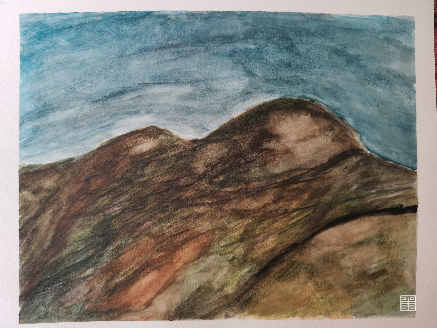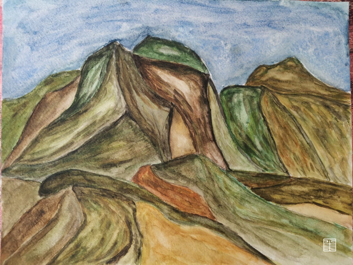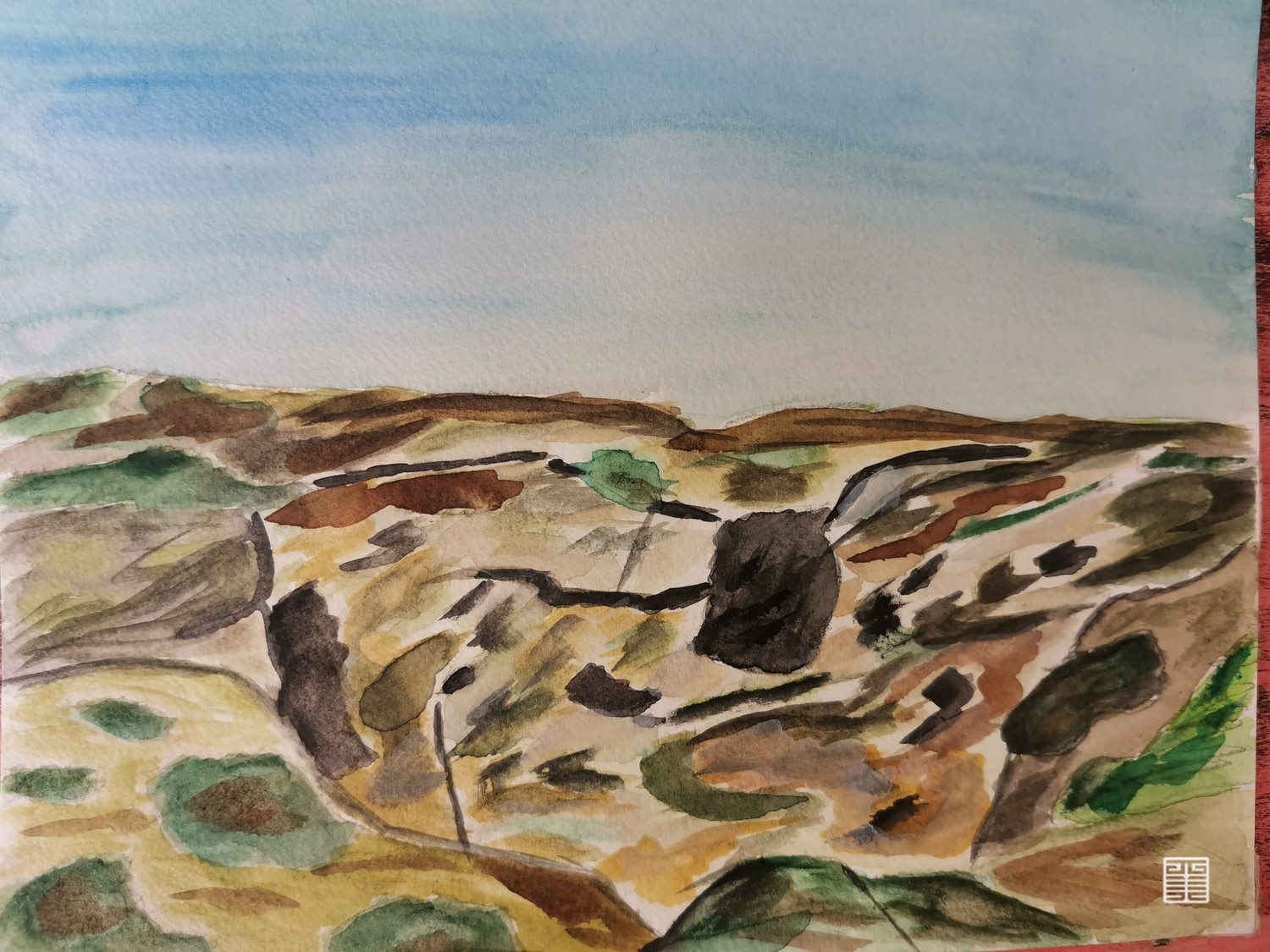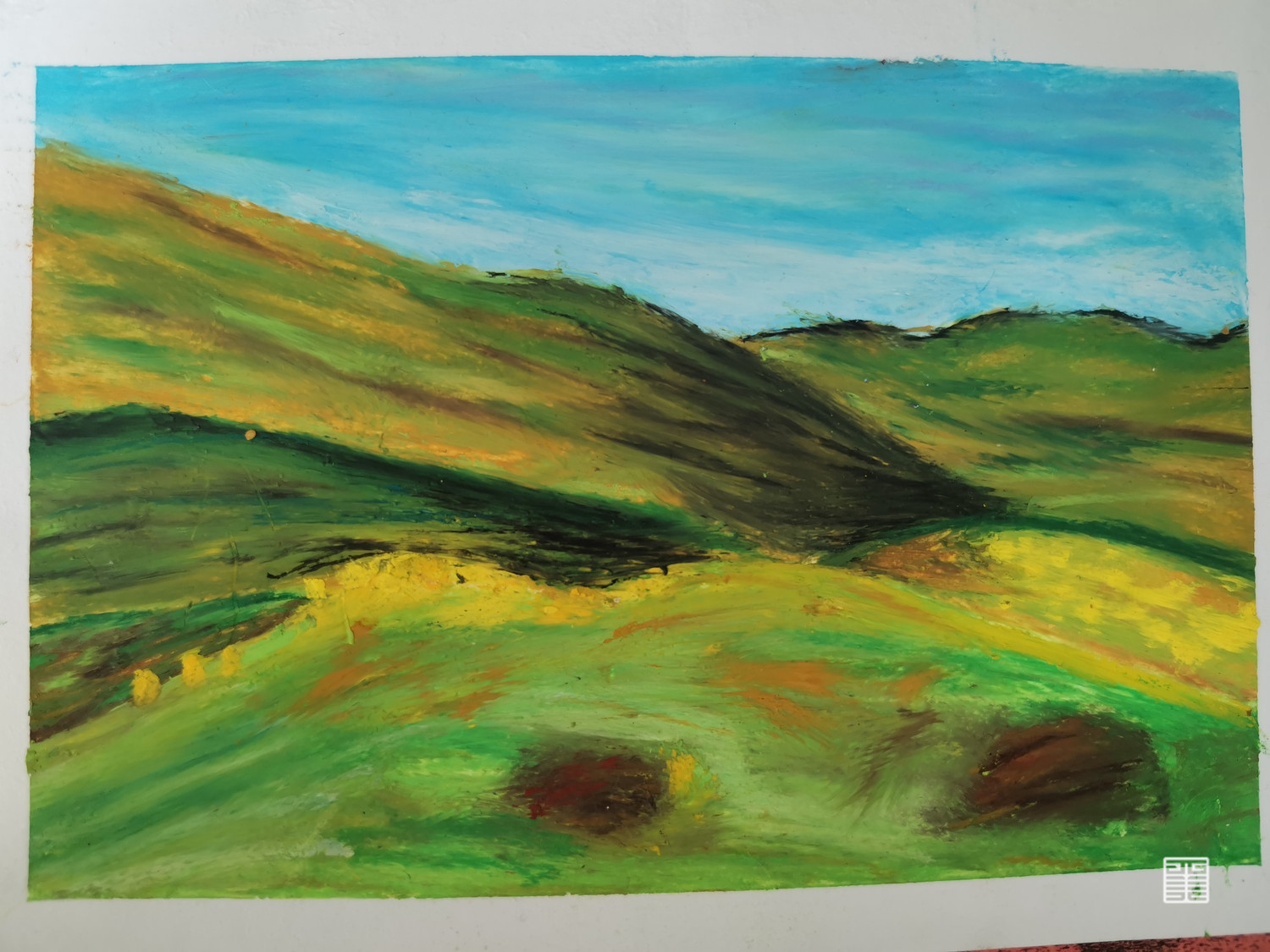 作品主要用抽象的手法表现陕北地貌特征,色彩突出,尽量还原陕北色彩,表现主观情感。