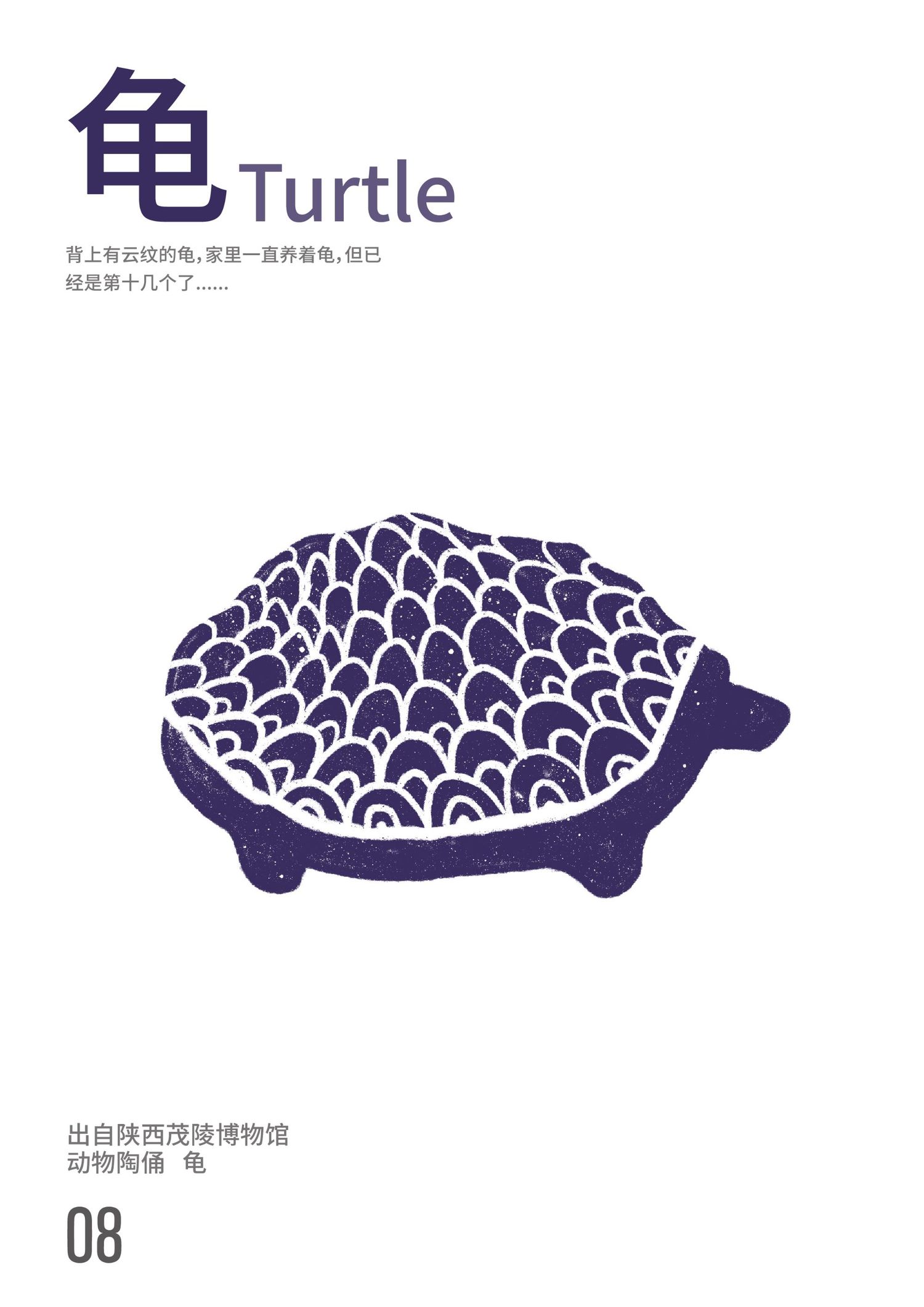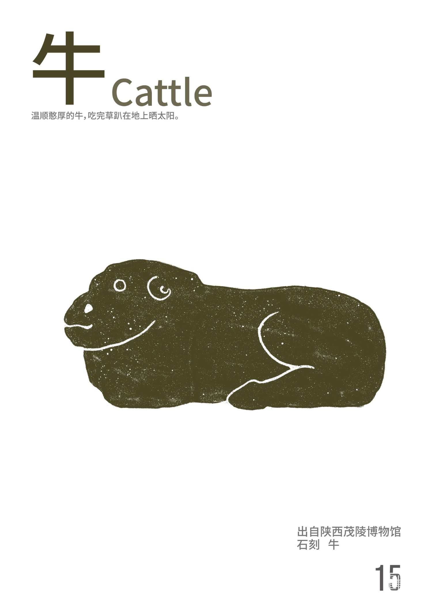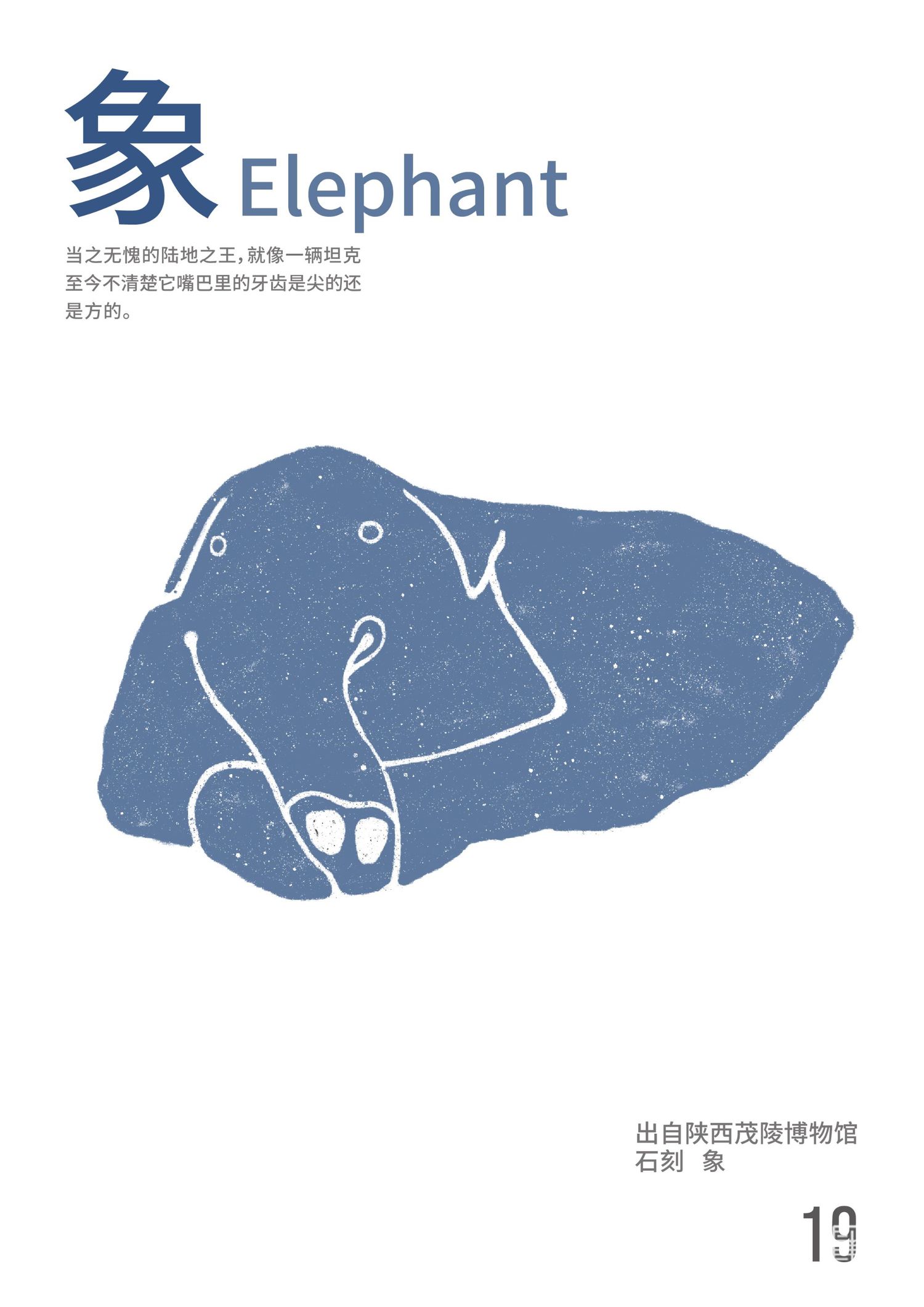 来自本次写生考察中在霍去病墓石刻群与秦砖汉瓦博物馆的所见所闻,想通过平面插画的方式将这些文物更好地传播开来,以一种温和的方法介绍古人们对造型的概括和提炼。
