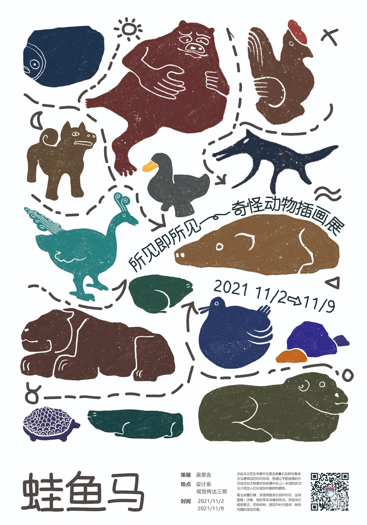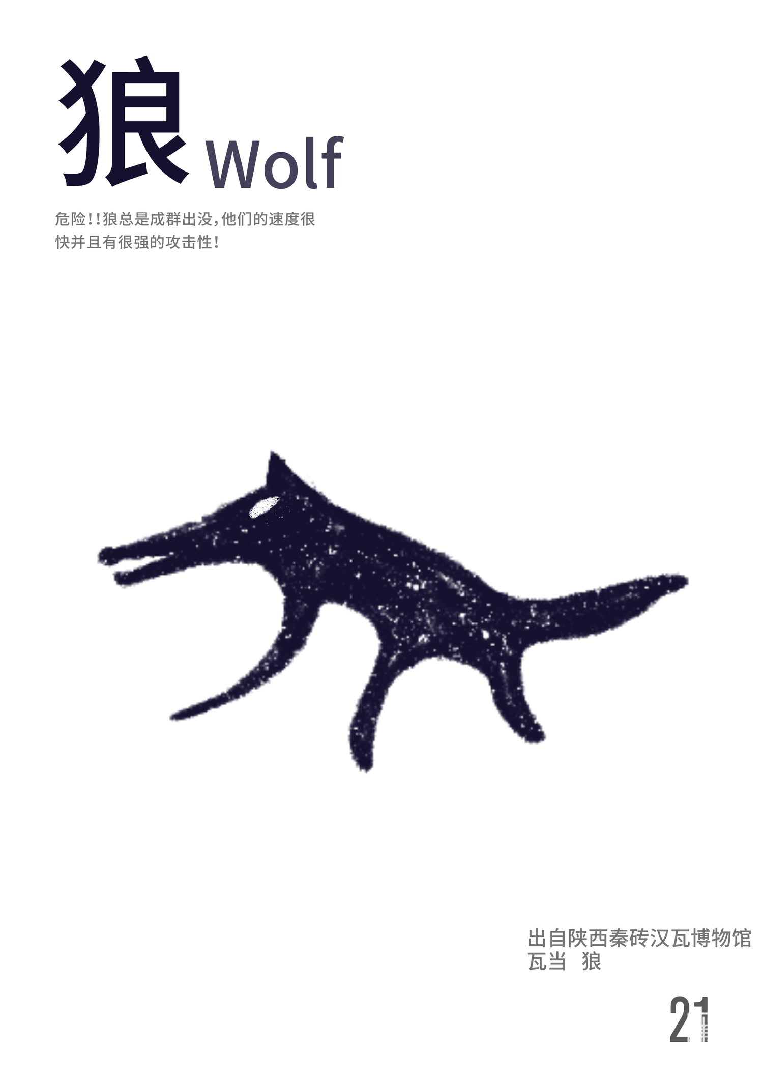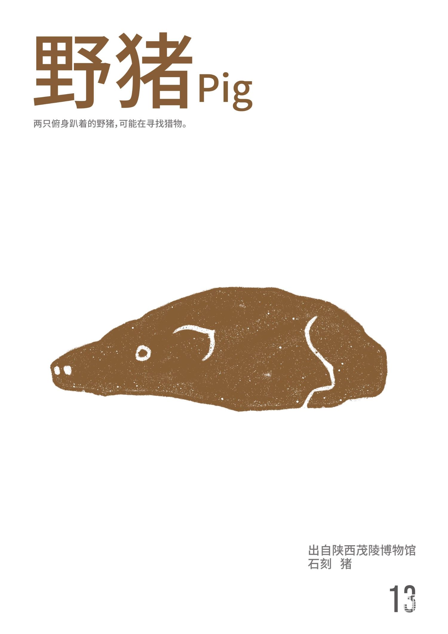 来自本次写生考察中在霍去病墓石刻群与秦砖汉瓦博物馆的所见所闻,想通过平面插画的方式将这些文物更好地传播开来,以一种温和的方法介绍古人们对造型的概括和提炼。