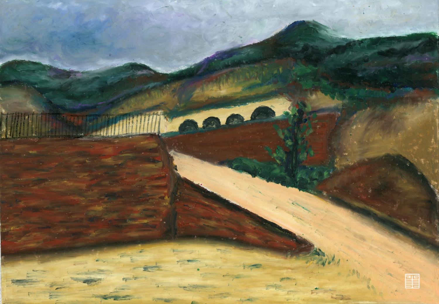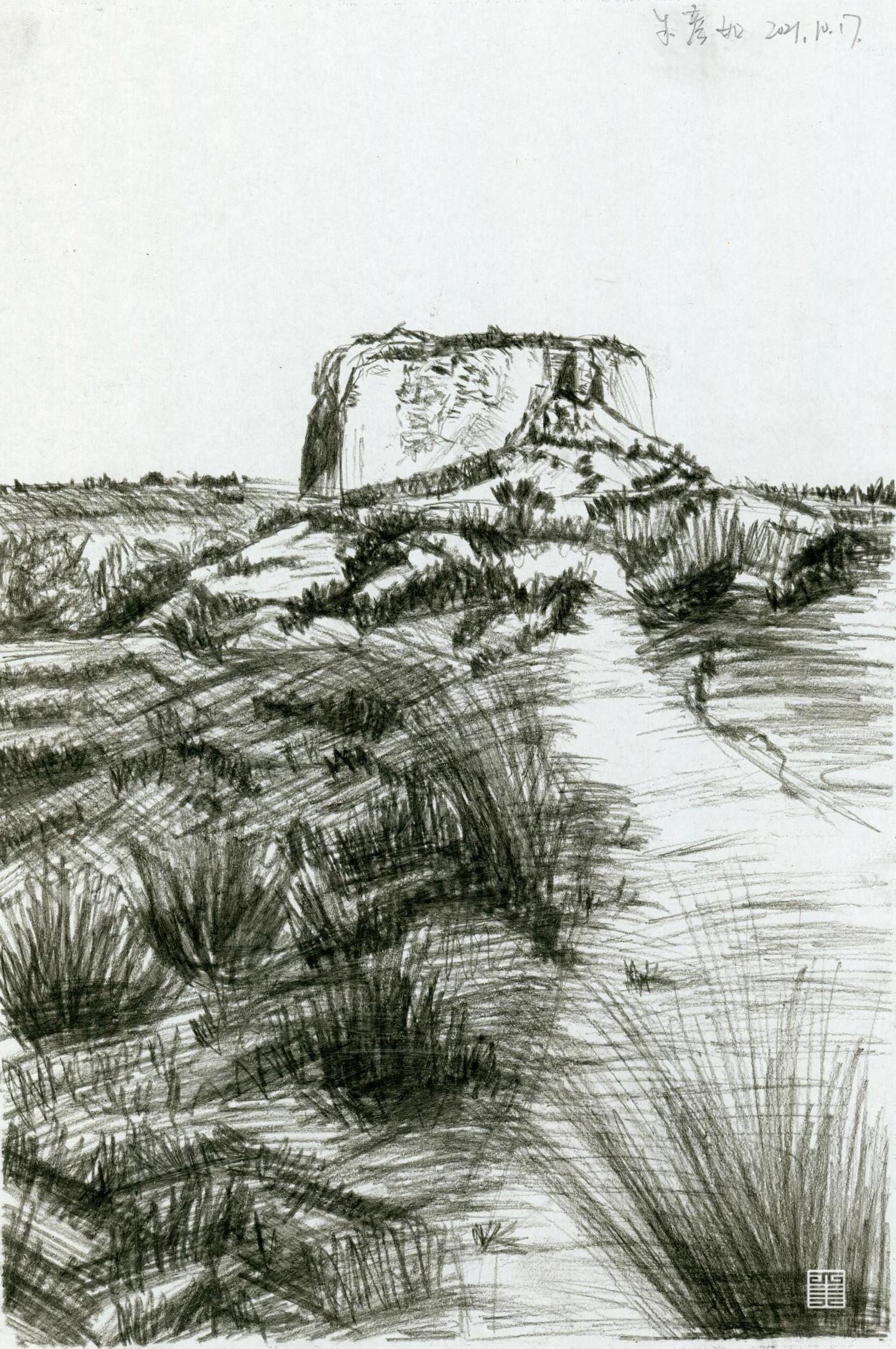 十几天的写生过程中,一共完成了二十多幅作品,从中挑选了几张作为展示,这些作品大多描绘了榆林靖边当地的独特风景。