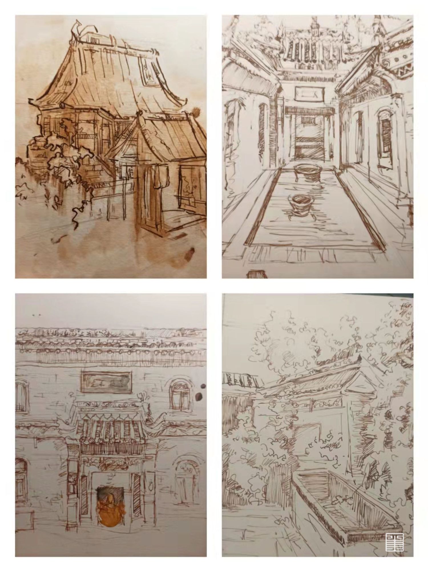 图1--图2为考察创作方案,图3--图5为考察报告,图6--图8为考察期间部分速写