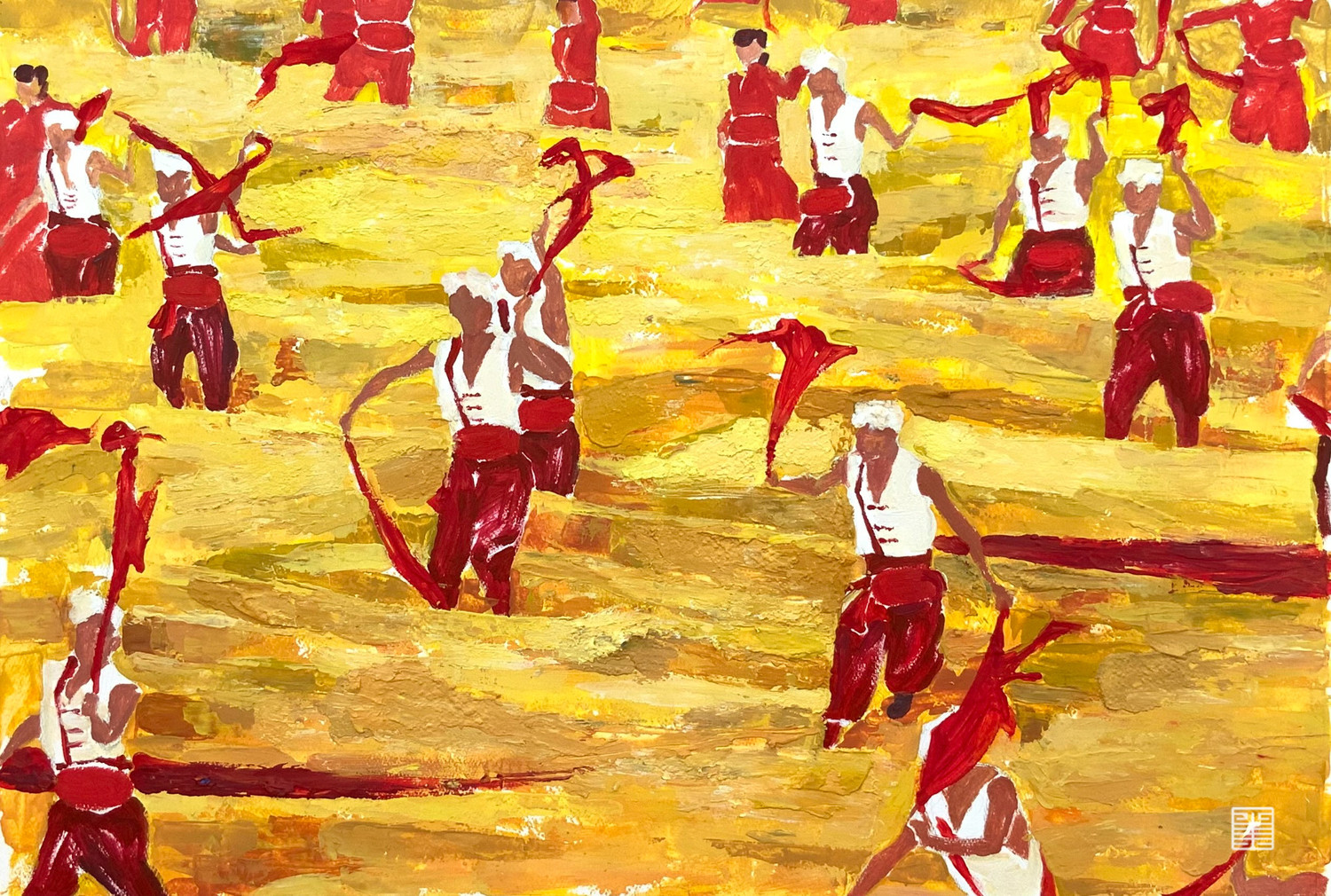 此作品灵感来源于陕西省举办的十四届全运会陕西百姓表演的节目,它表达了一个民族的生命力,创造力和凝聚力。