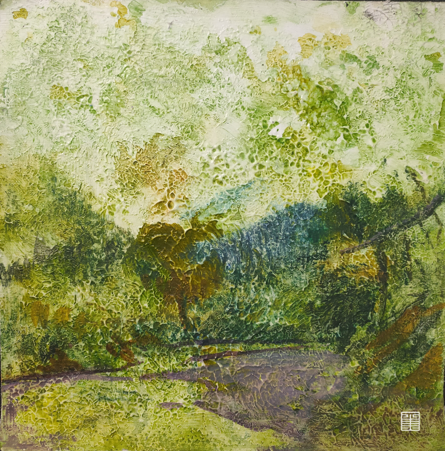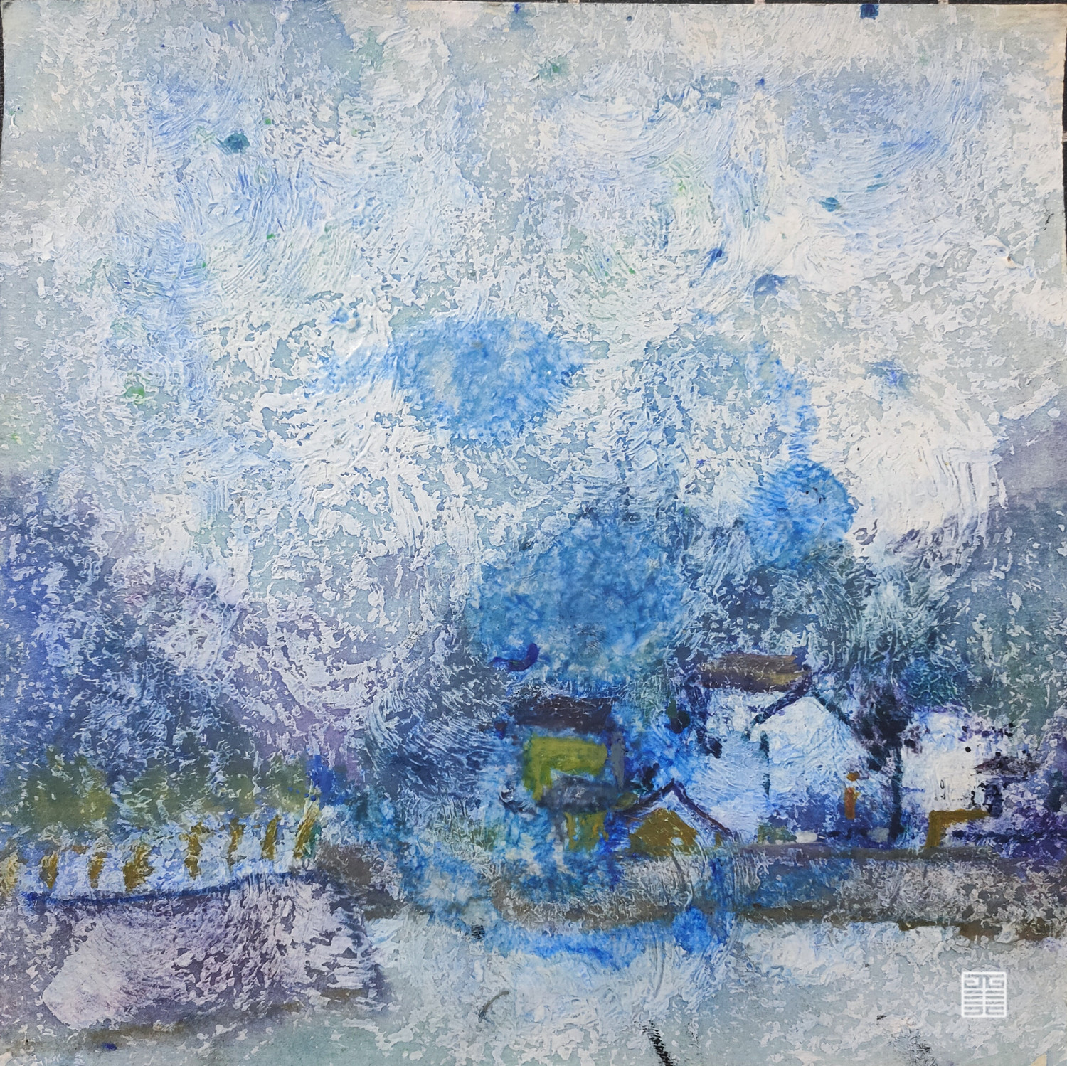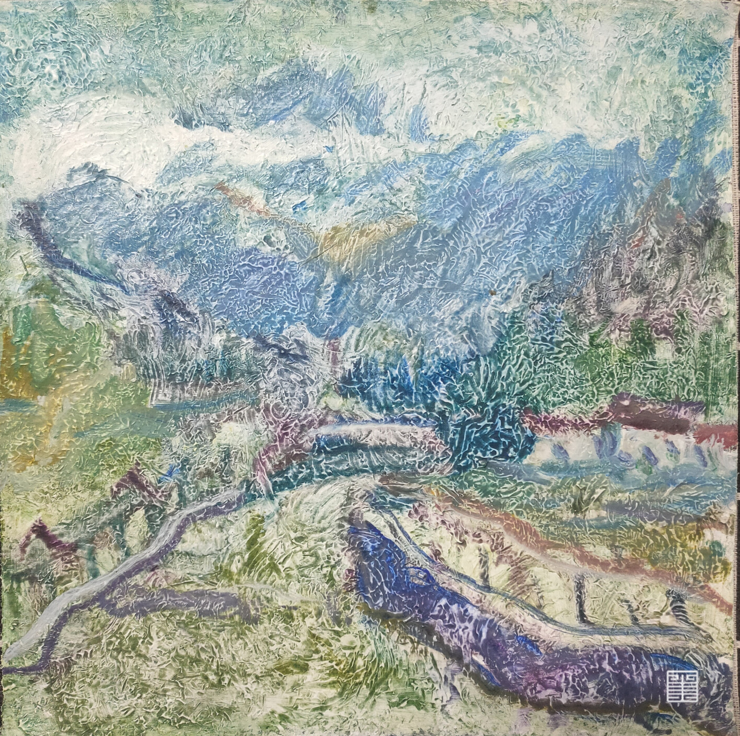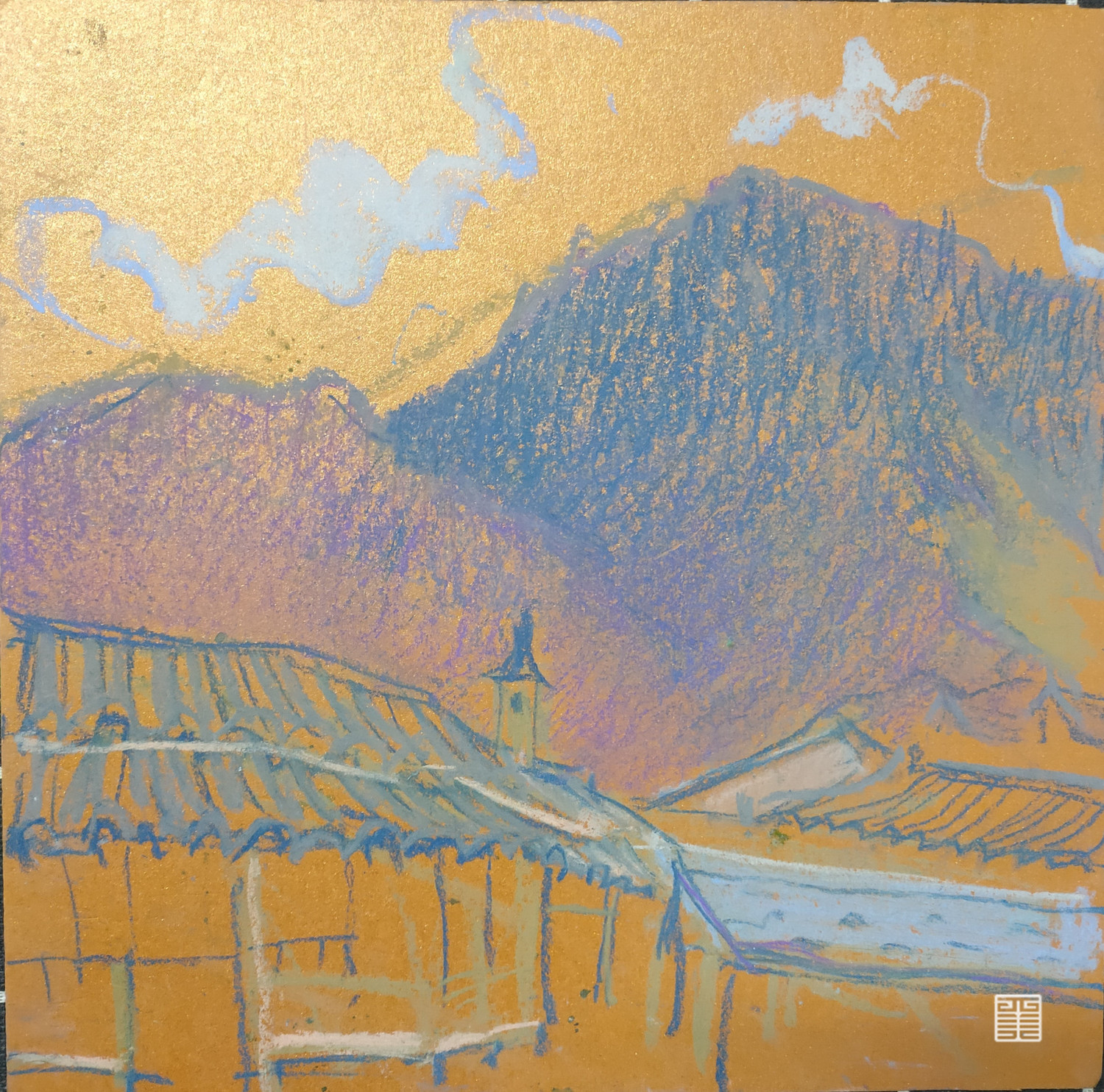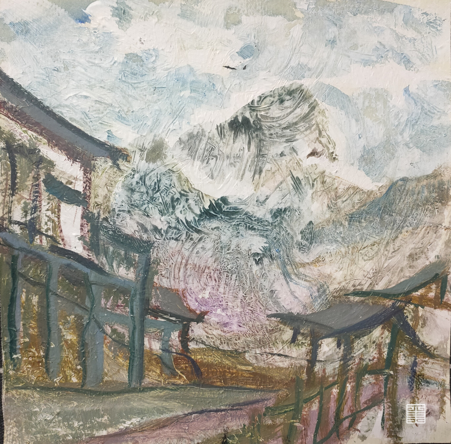 本次写生携带了多种材料进了大量的尝试,其中一些使用了树脂做出随机的肌理效果,在之上用水彩作画,借用其有意无意产生的肌理纹路,增加了画面的丰富性和厚重感,同时着力表达绘画意向感受,不断尝试寻找事物具象和感受直接的平衡,期望达到一种中国画式的写意之美。之外我还在画了一些色粉画,主要是解决一些色彩概括问题,通过对风景颜色造型的取舍更简单直观地表达出来。