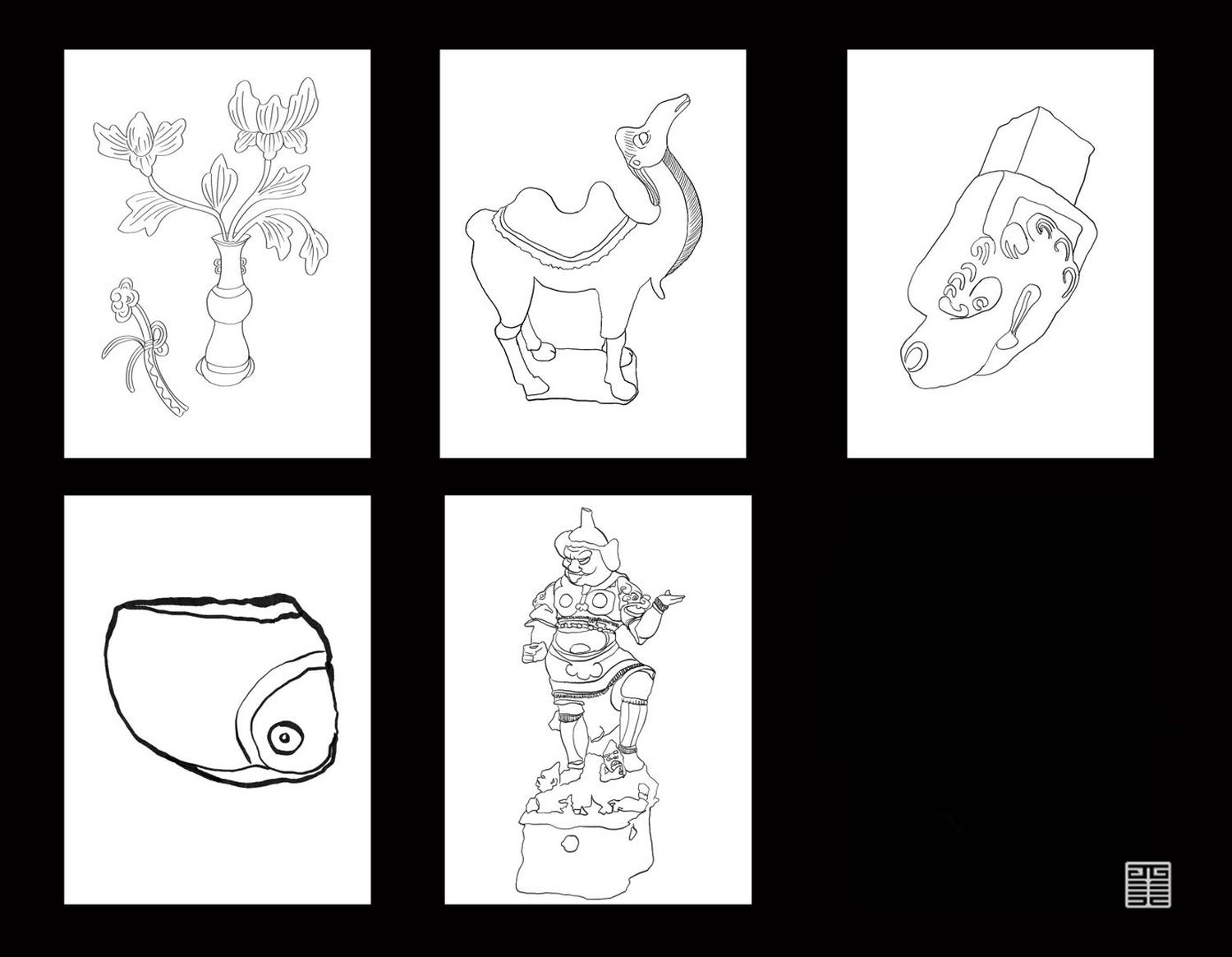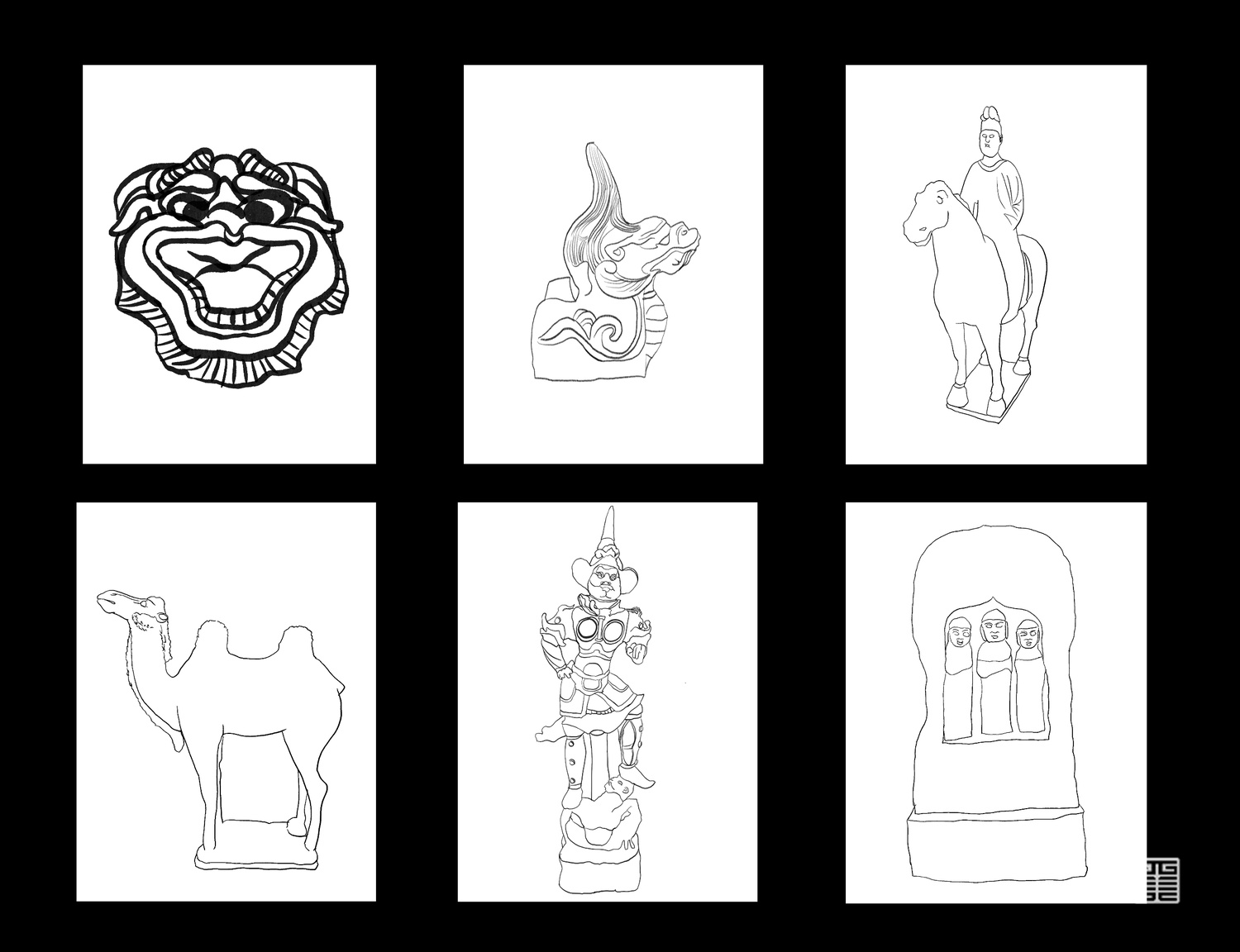 图1为根据考察所创作的文创作品,图2—6为考察报告,图7—9为考察期间部分速写。