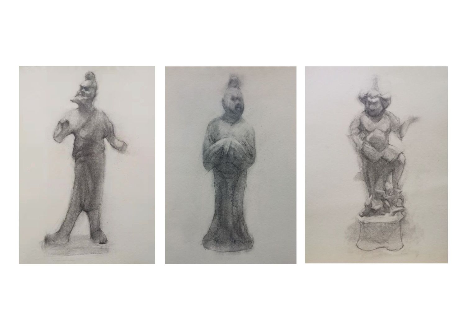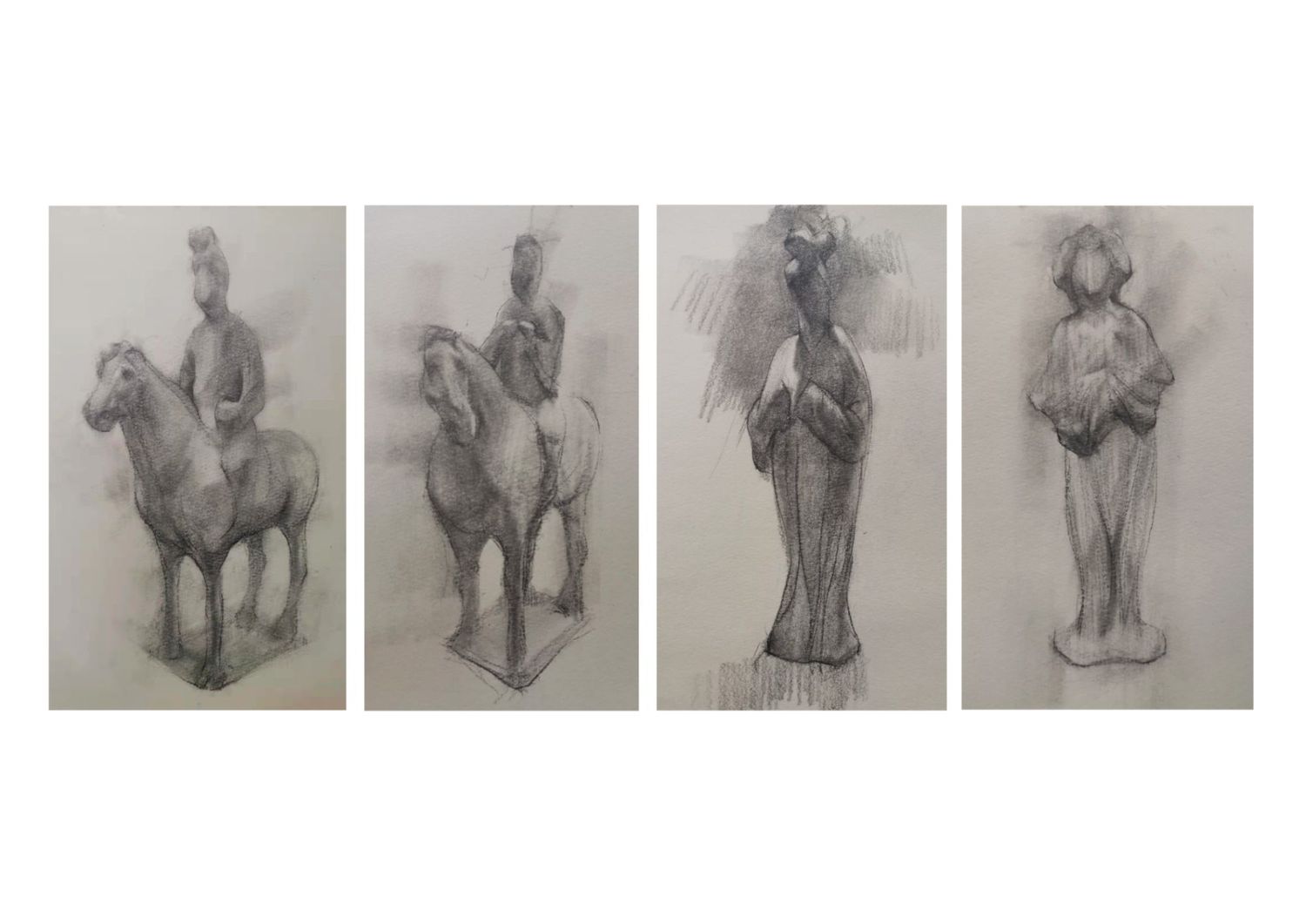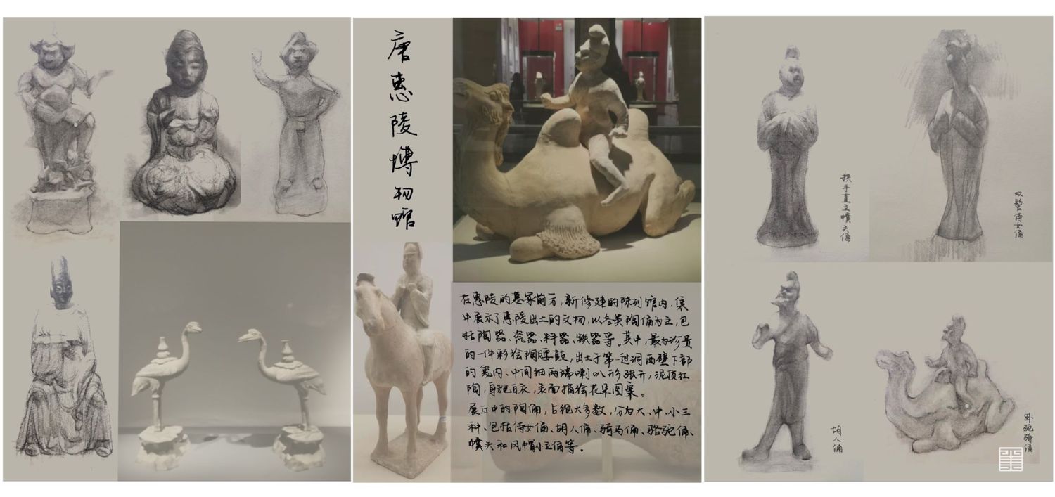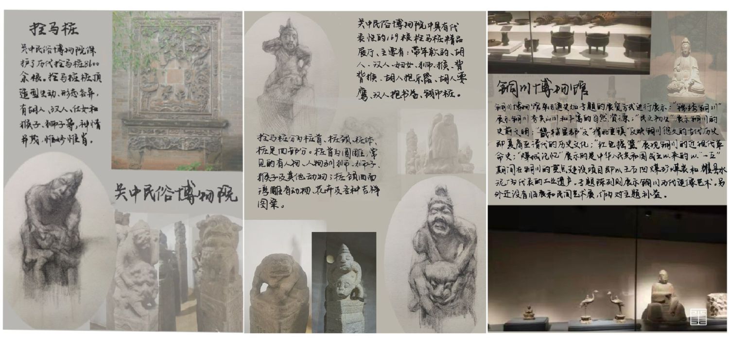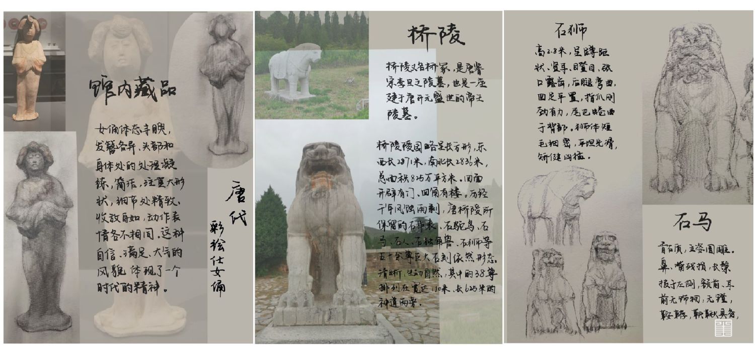 图一为根据考察所创作的文创作品,图二到图四为考察报告,图五到图七为考察期间部分速写。