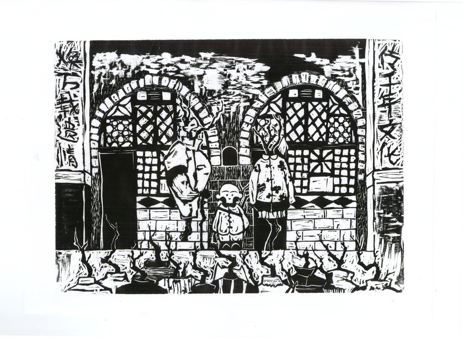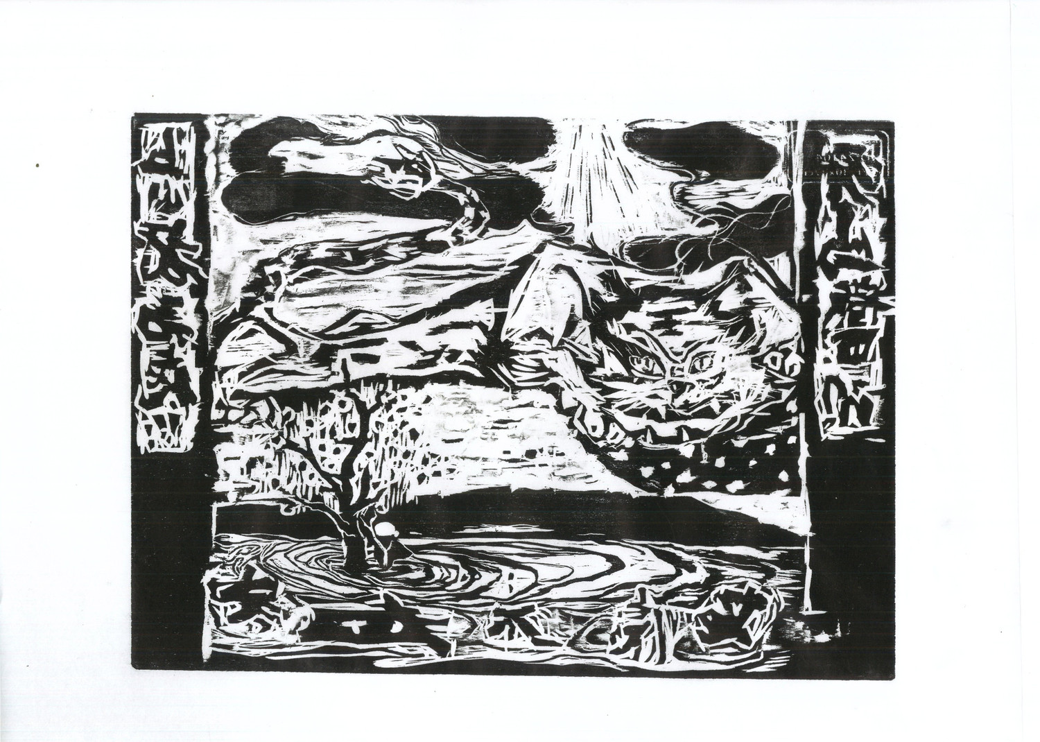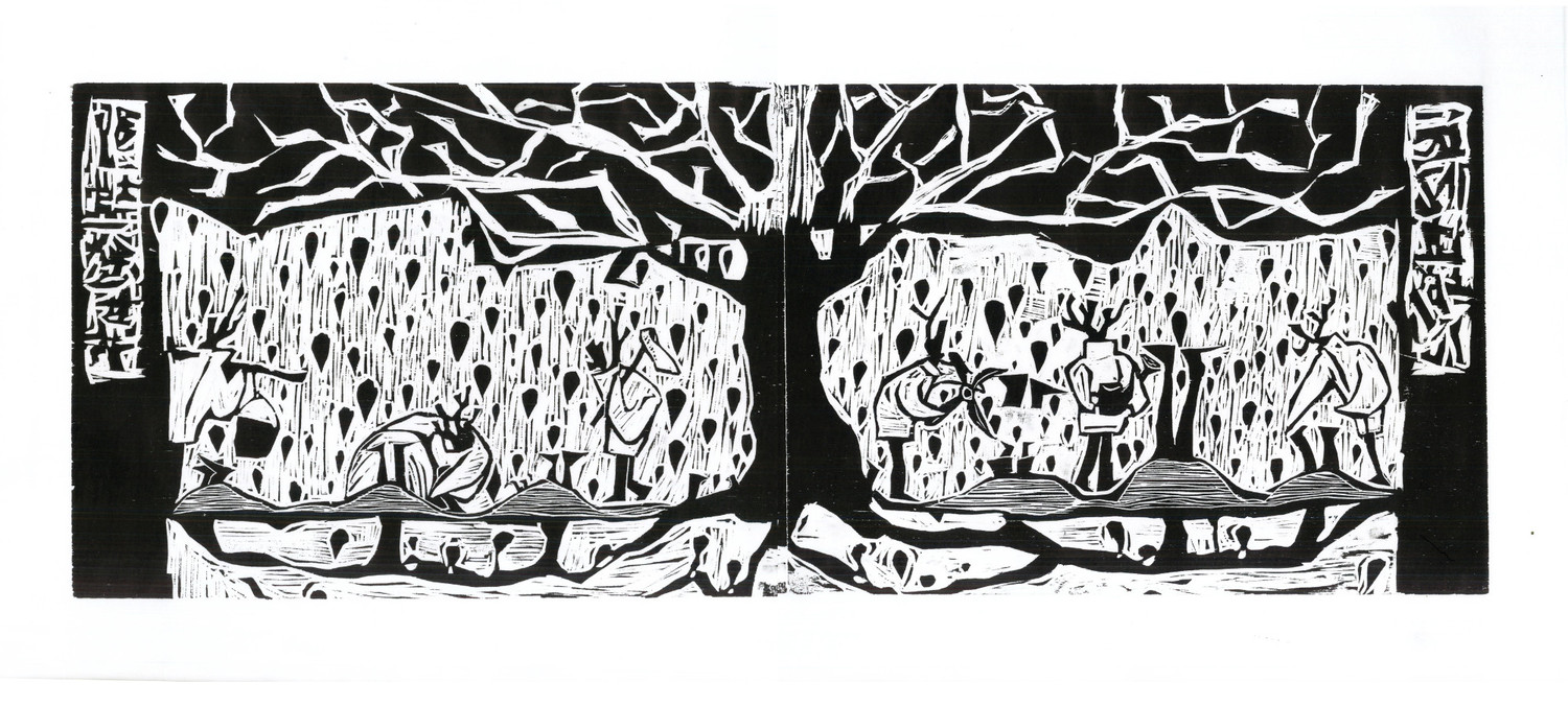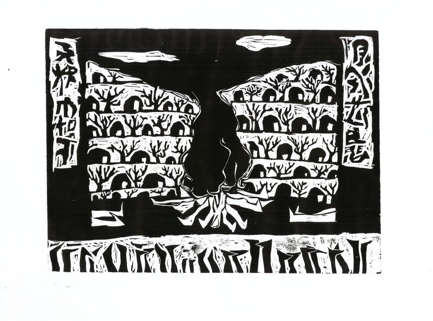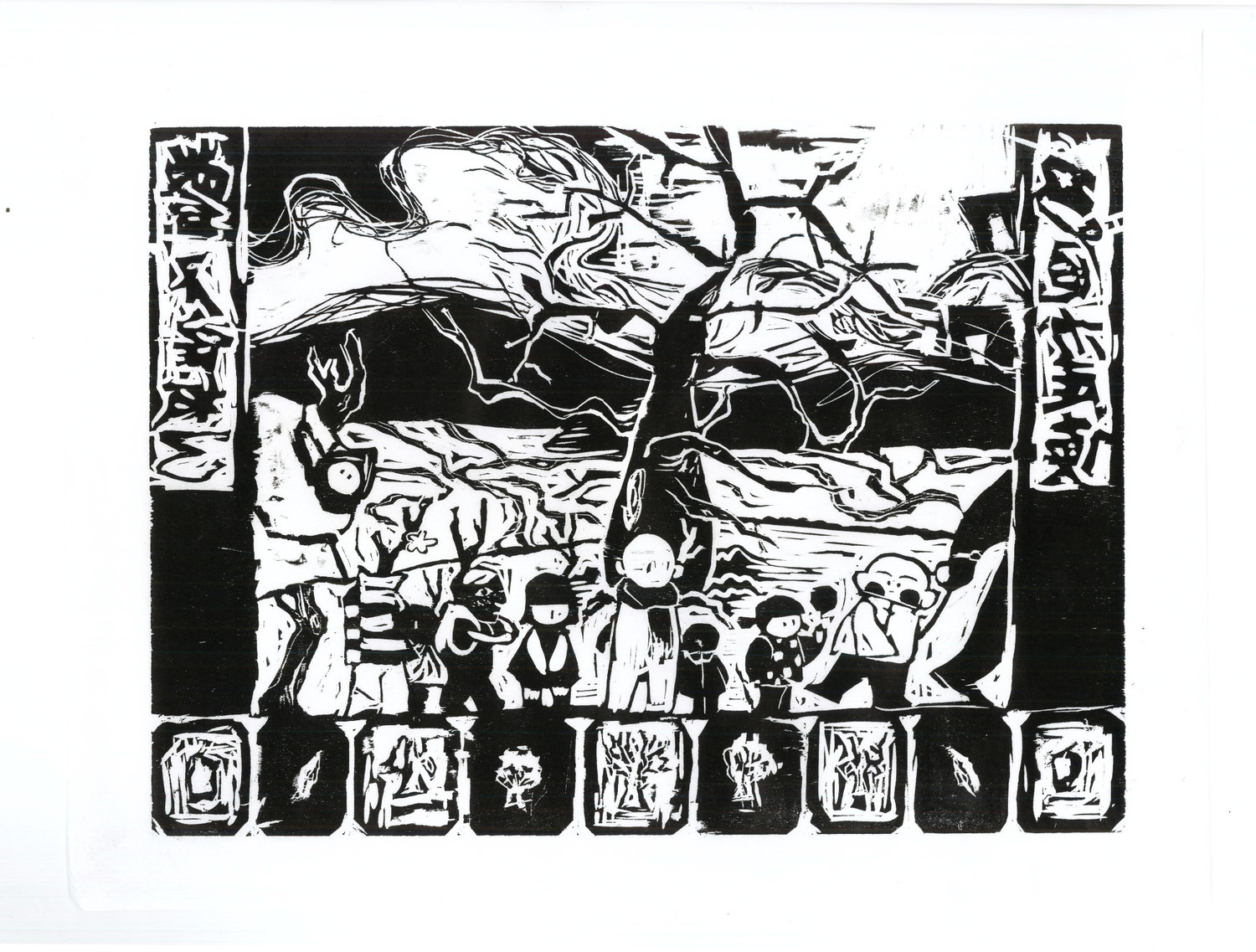 (因为只能10张,加上封面那版《戏:婚》太大了上传不成功,所以就放了印在2张纸上的《戏:婚》)这些版画算是我来到陕北枣林坪所见所闻后内心产生的胡思乱想。因为一些原因不好靠嘴巴说,于是我就把一些无厘头、不好解释的东东和这里随处可见的枣树、废旧戏台结合,变成正在表演的戏台。戏嘛就可以离谱可以没有逻辑,按我这个导演定好的剧本走。:D 所以看不懂很正常,我在这里也说不明白,说明白可能还没意思了。如果看完还觉得不理解,那简直太棒了 :D