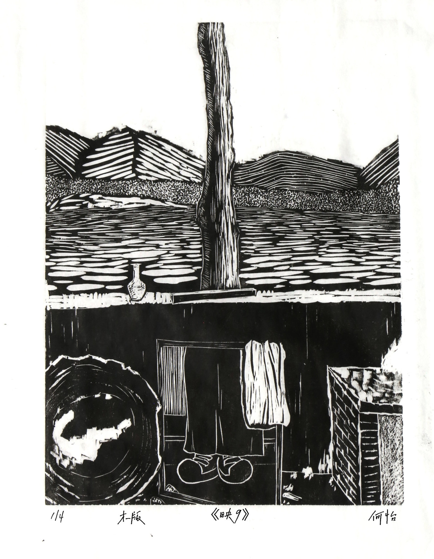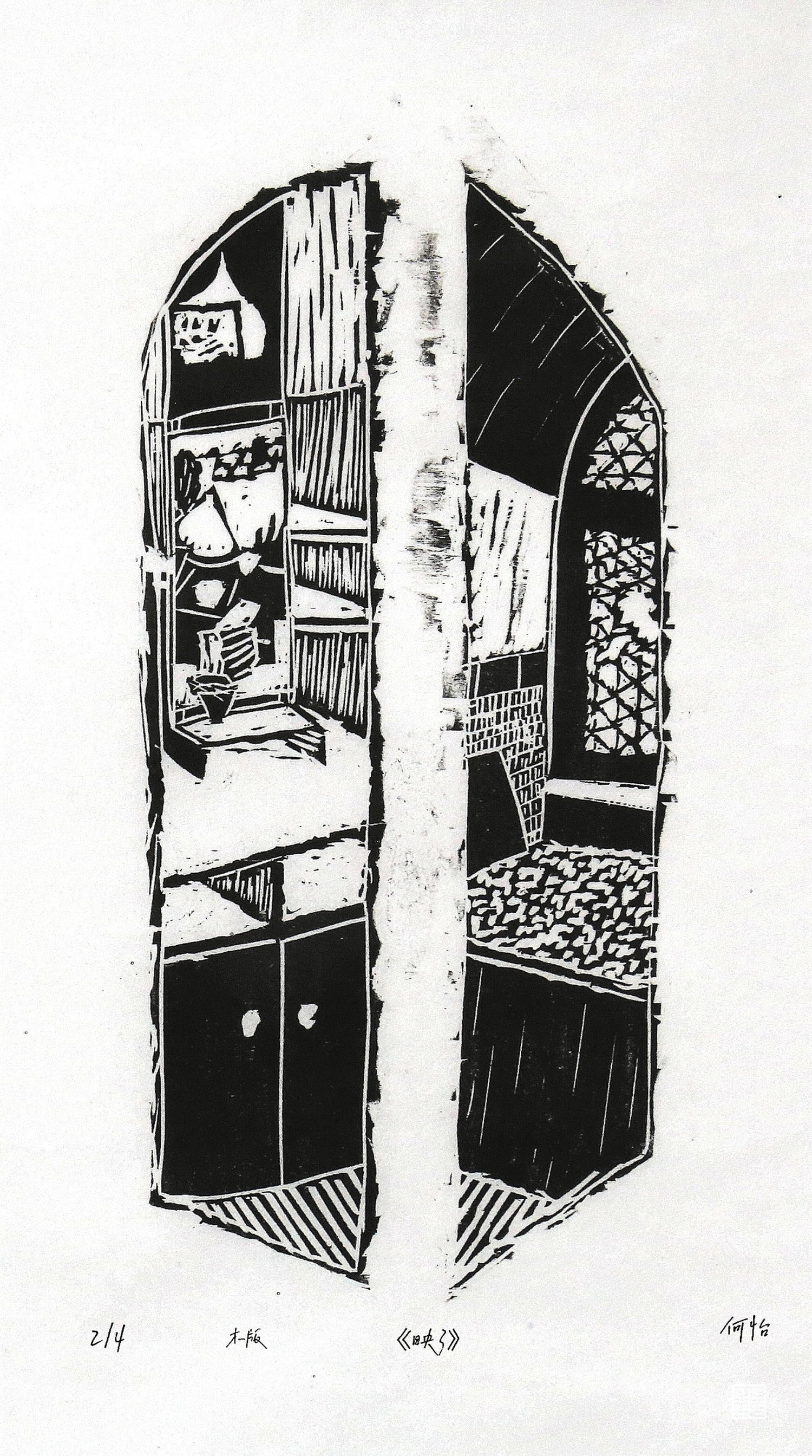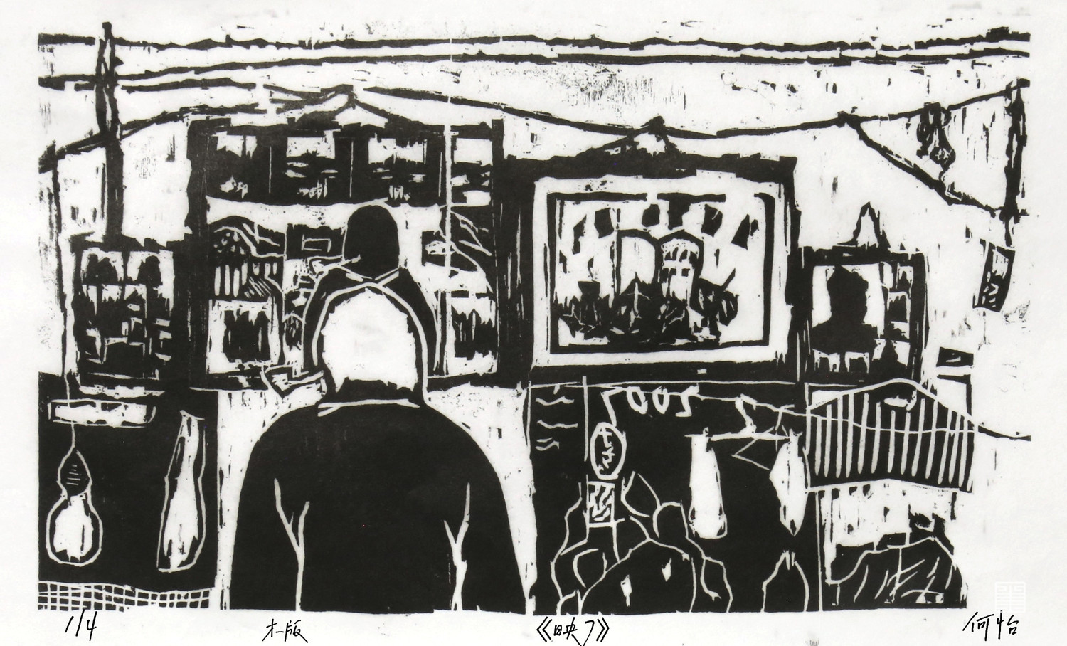 《映》这一系列作品创作于2021年十月的陕北绥德文化考察,主要取材于绥德县枣林坪镇枣前坪村和枣后坪村。《映》描绘的是镜子及镜子周围环境,选择镜子这个主题是因为镜子基本上在每个家庭里都能见到,而且镜子这个媒介也是可以直接反射、倒映一部分现实环境。通过镜子及其周围的环境表现陕北绥德枣林坪人们的生活环境。