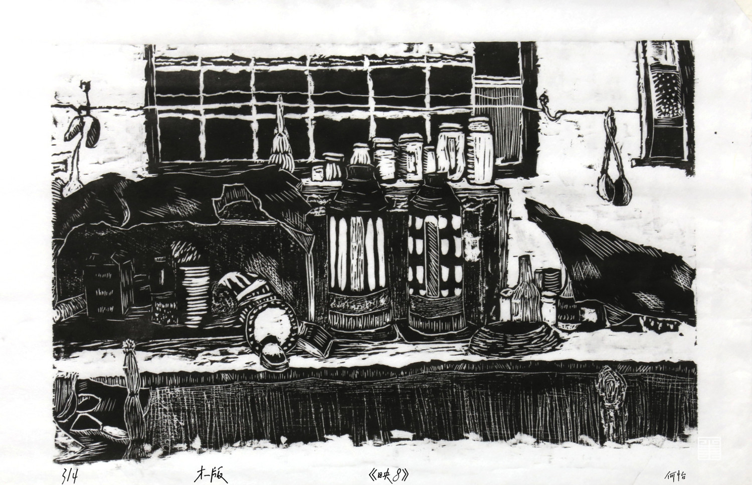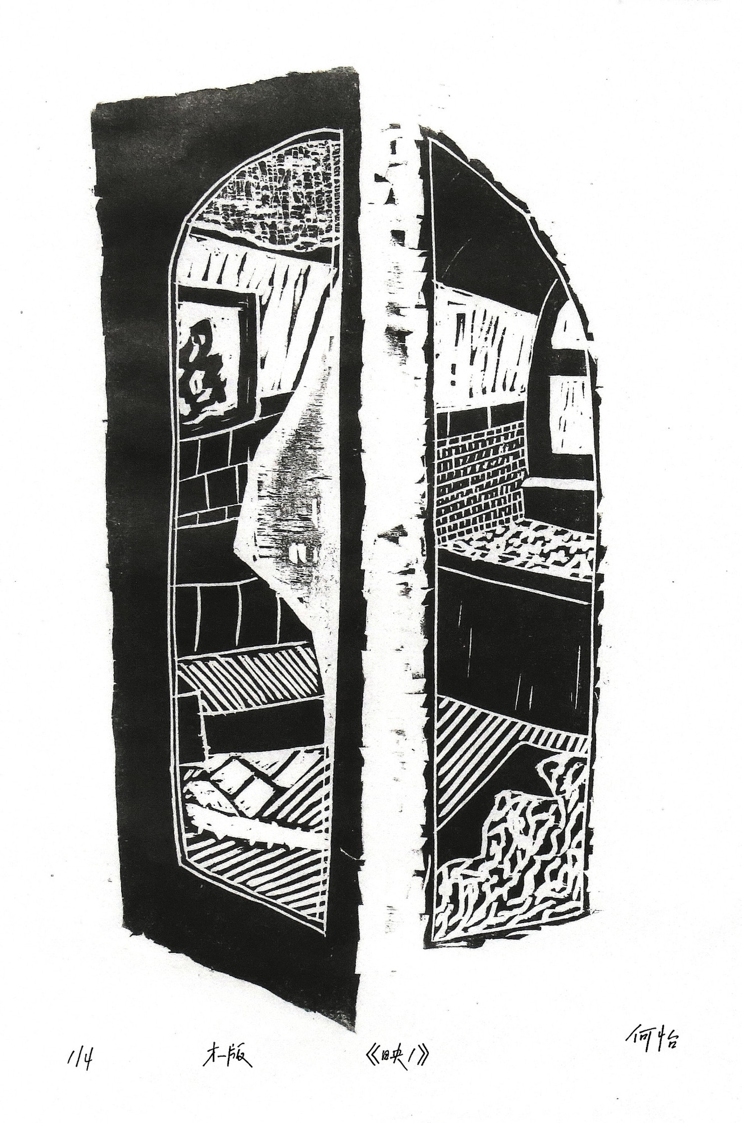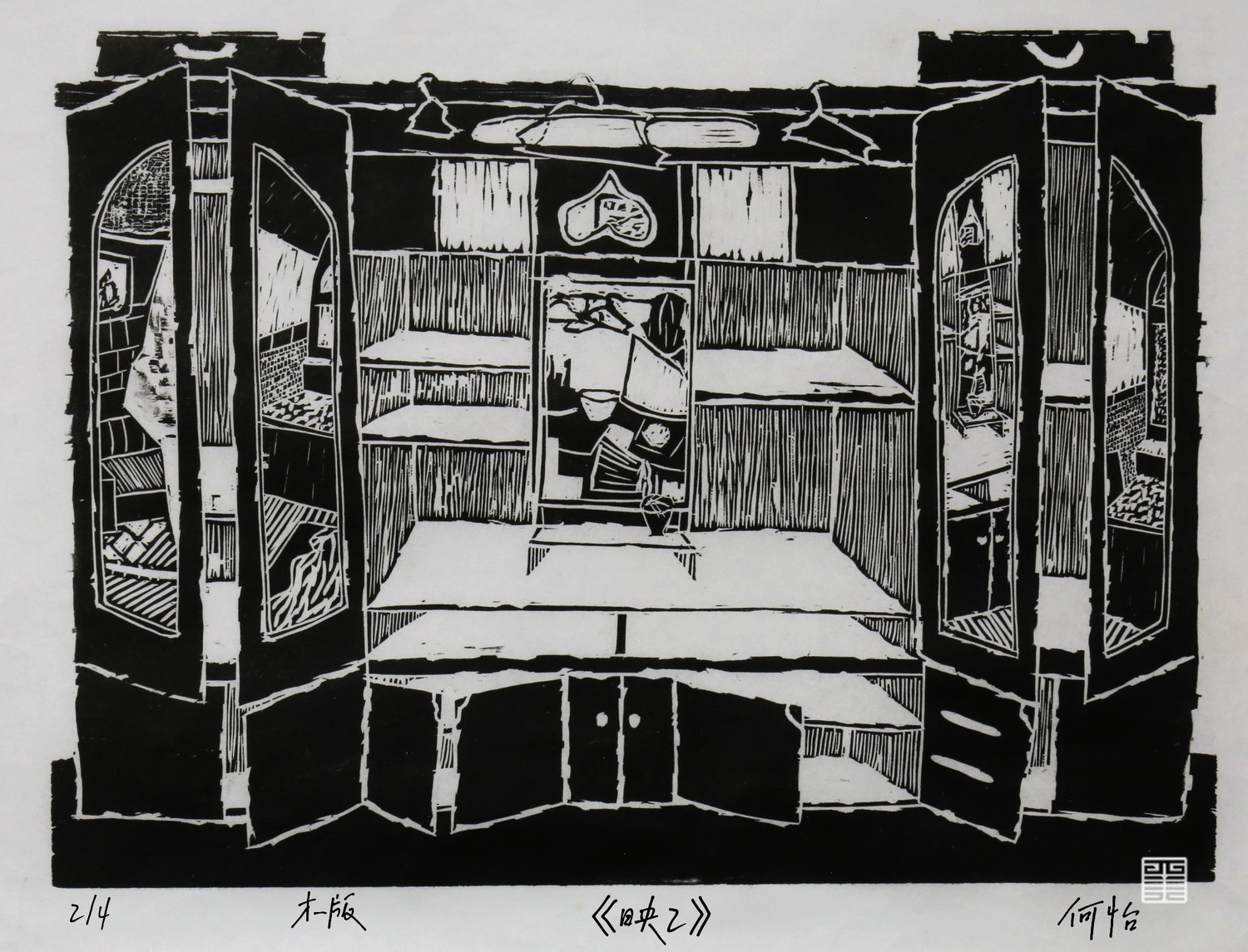 《映》这一系列作品创作于2021年十月的陕北绥德文化考察,主要取材于绥德县枣林坪镇枣前坪村和枣后坪村。《映》描绘的是镜子及镜子周围环境,选择镜子这个主题是因为镜子基本上在每个家庭里都能见到,而且镜子这个媒介也是可以直接反射、倒映一部分现实环境。通过镜子及其周围的环境表现陕北绥德枣林坪人们的生活环境。