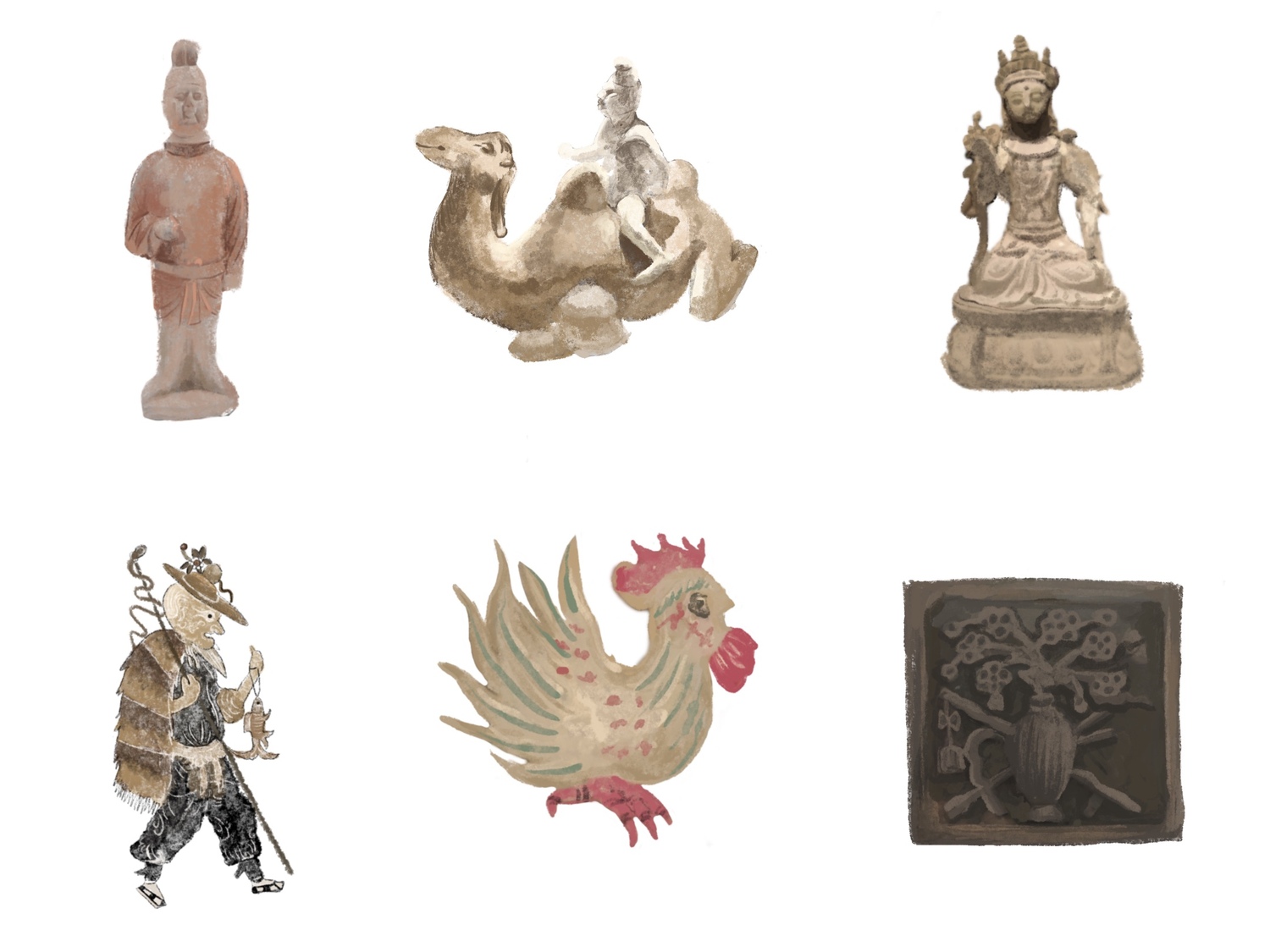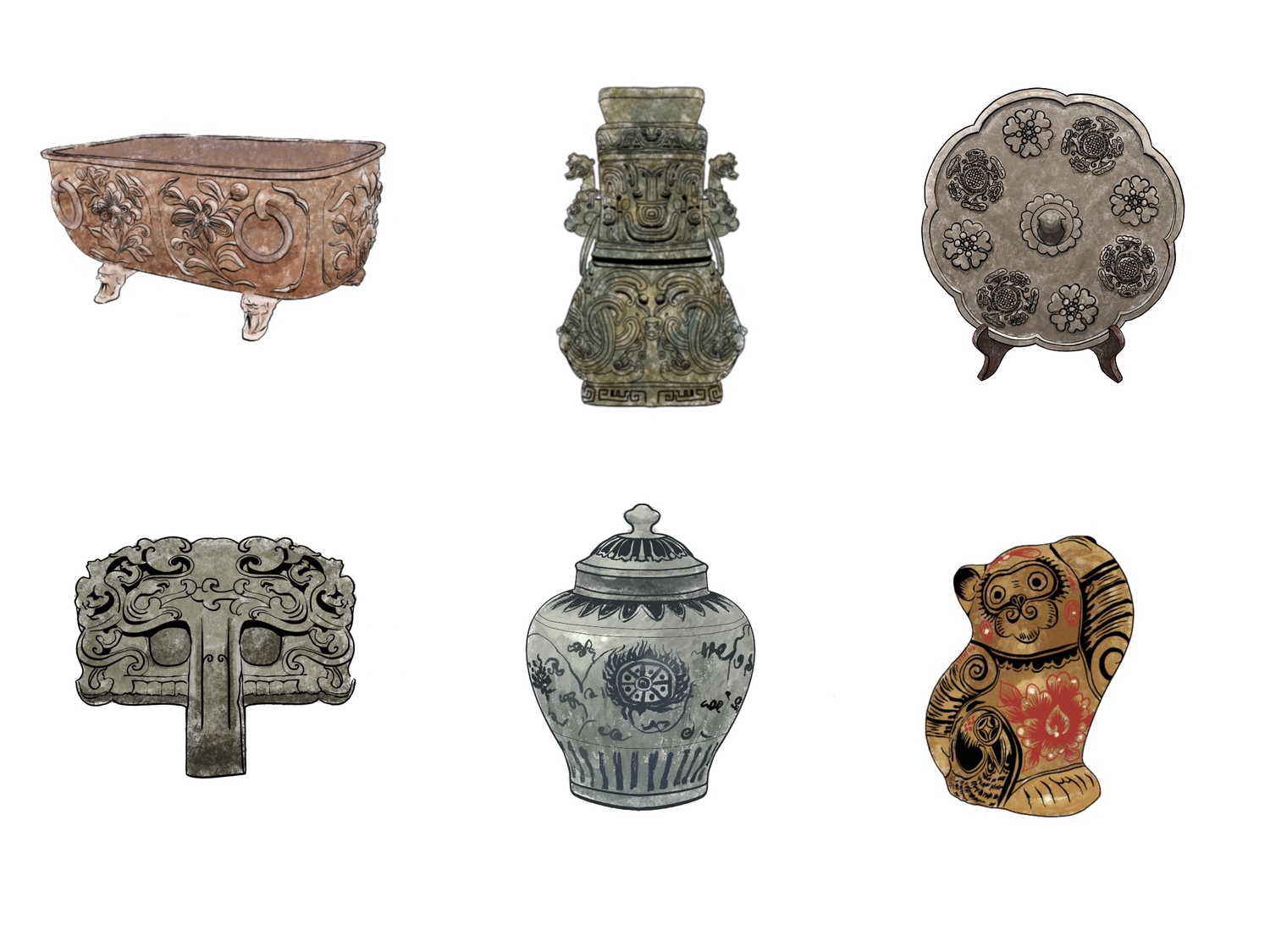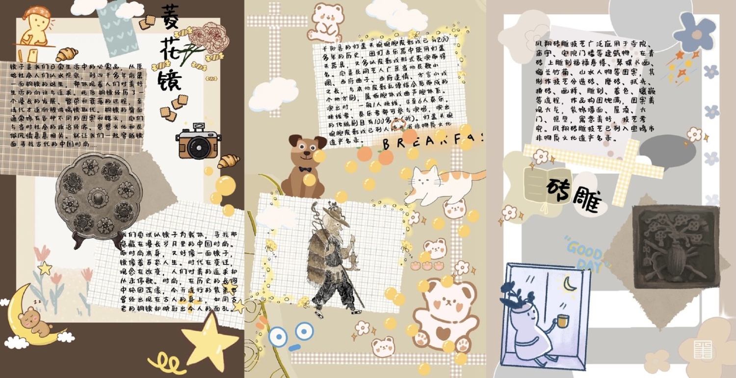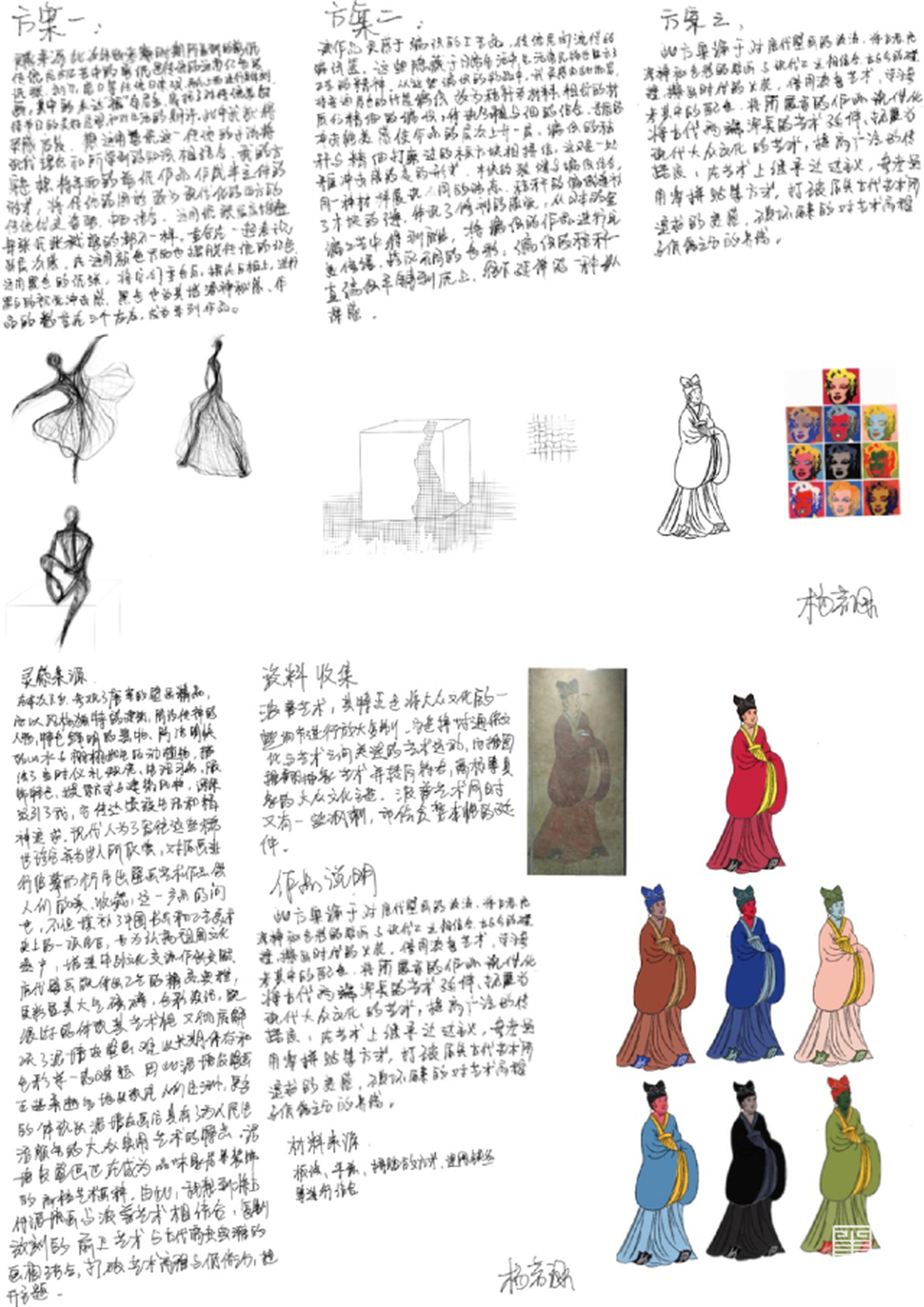 图1为根据考察所创作的方案作品,图2—图6为考察报告,图7—图9为考察报告期间部分速写