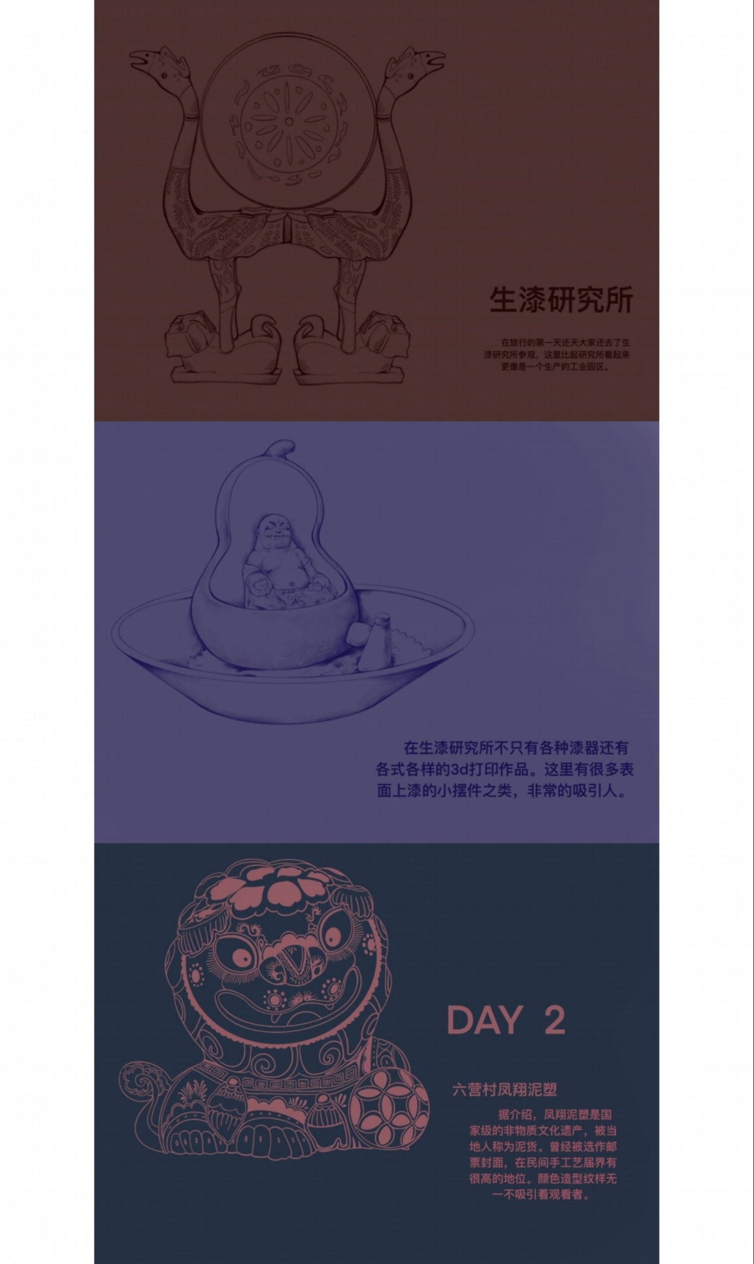 图1为根据考察所创作的文创作品,图2—11为考察报告,图12—14为考察期间部分速写。