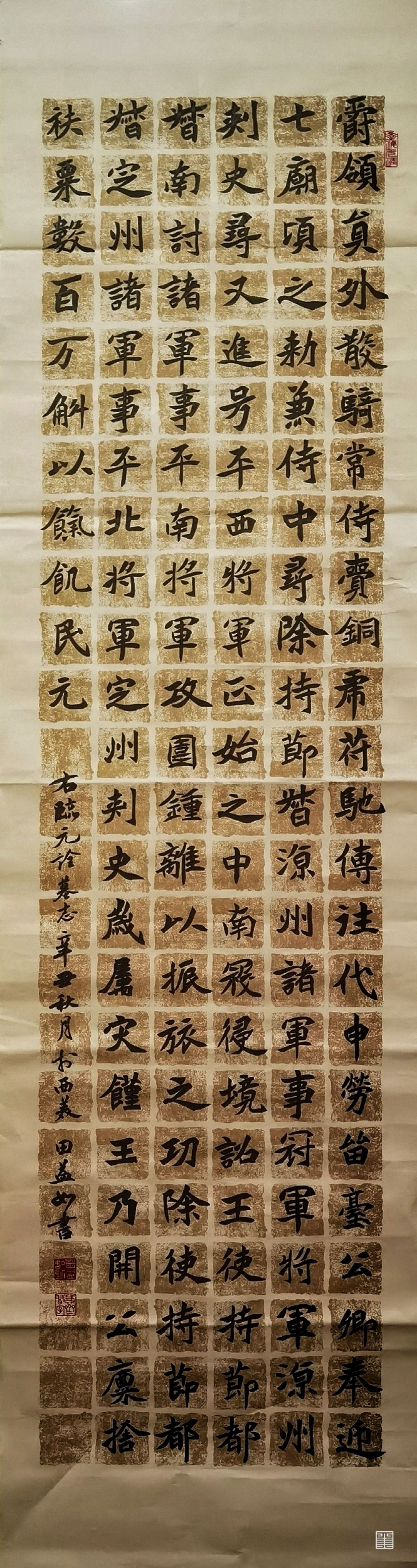 以《元诠墓志》为临摹对象,加入了其他如元贞墓志、爨宝子碑等墓志的特点,在保持古人用笔用法的基础上,融合了自己的书写风格而进行的创作。