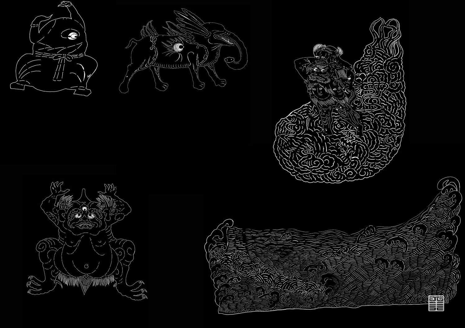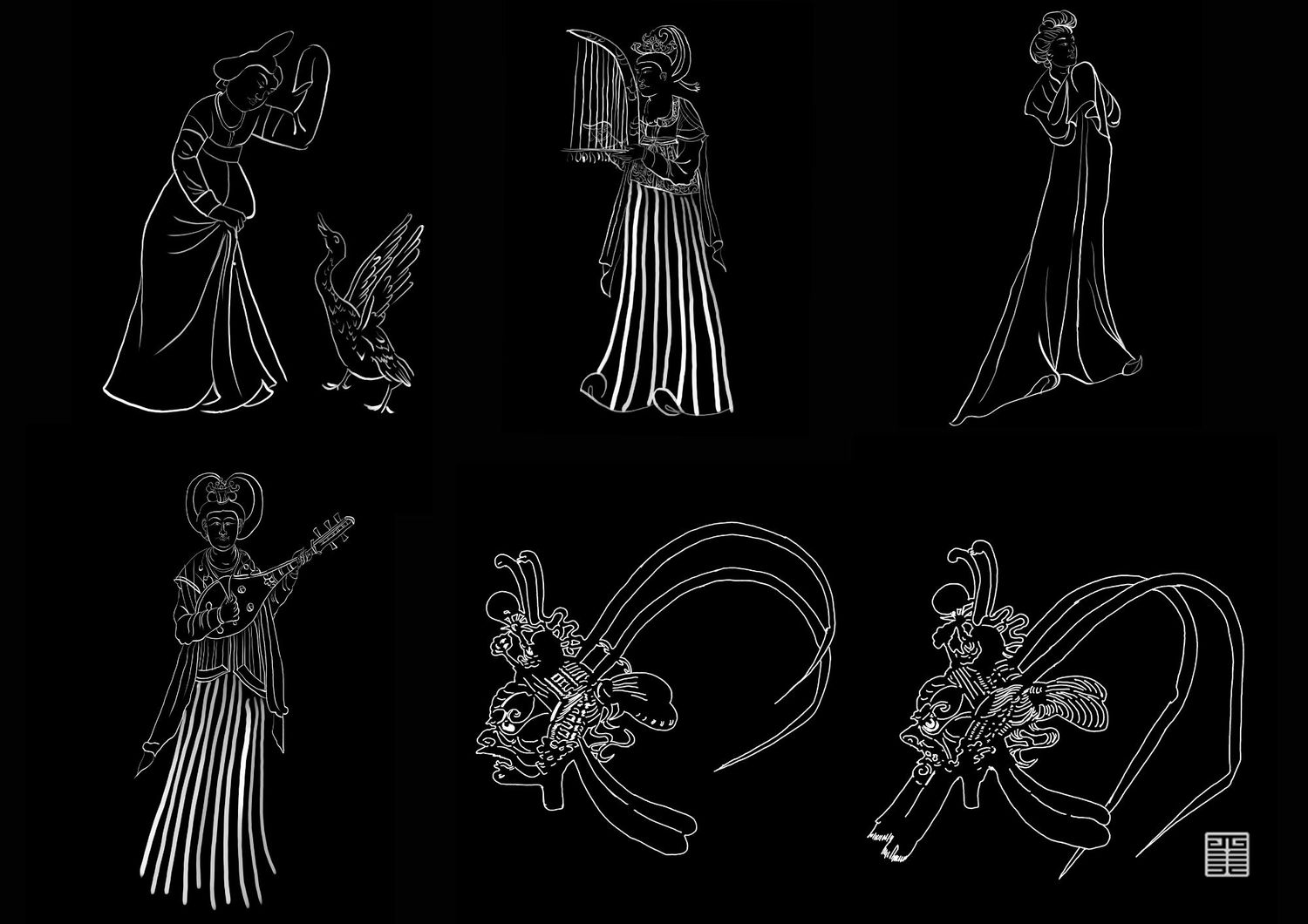 图1——图3为根据考察所创作的作品,图4——图7为考察报告,图8——图10为考察期间部分速写。