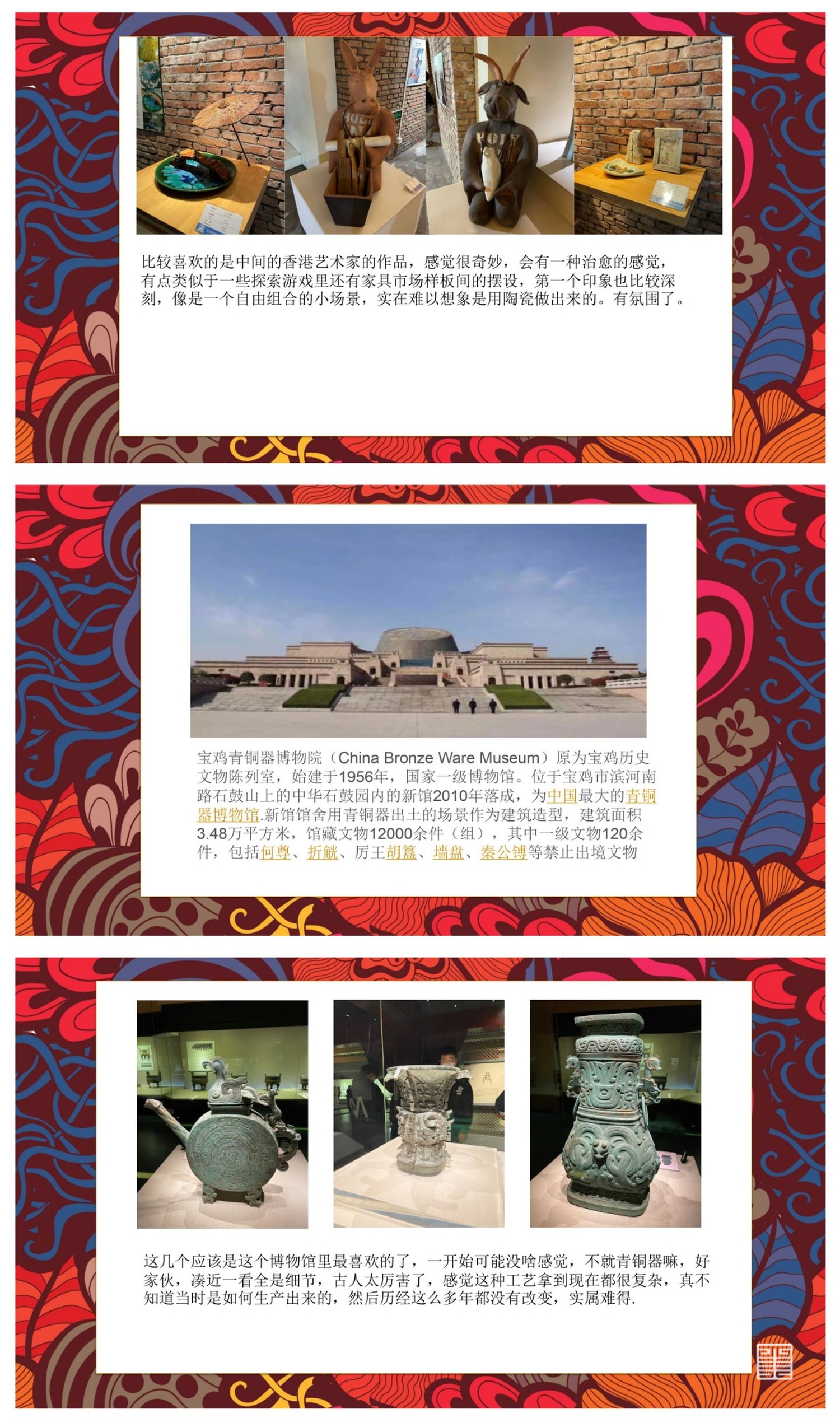 这次关中地区的考察收获良多,参观并且学习了很多民间传统艺术,了解到了很多新的艺术表现形式,拓展了眼界。为以后的艺术创作提供了许多案例。