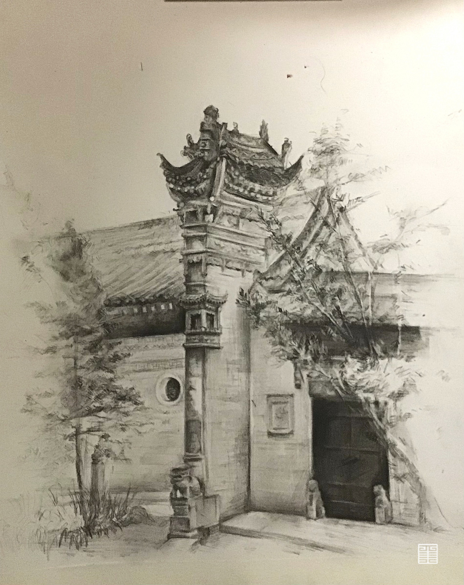 普通的一个房屋角落,柱子的花纹能显示出这户人家的富有