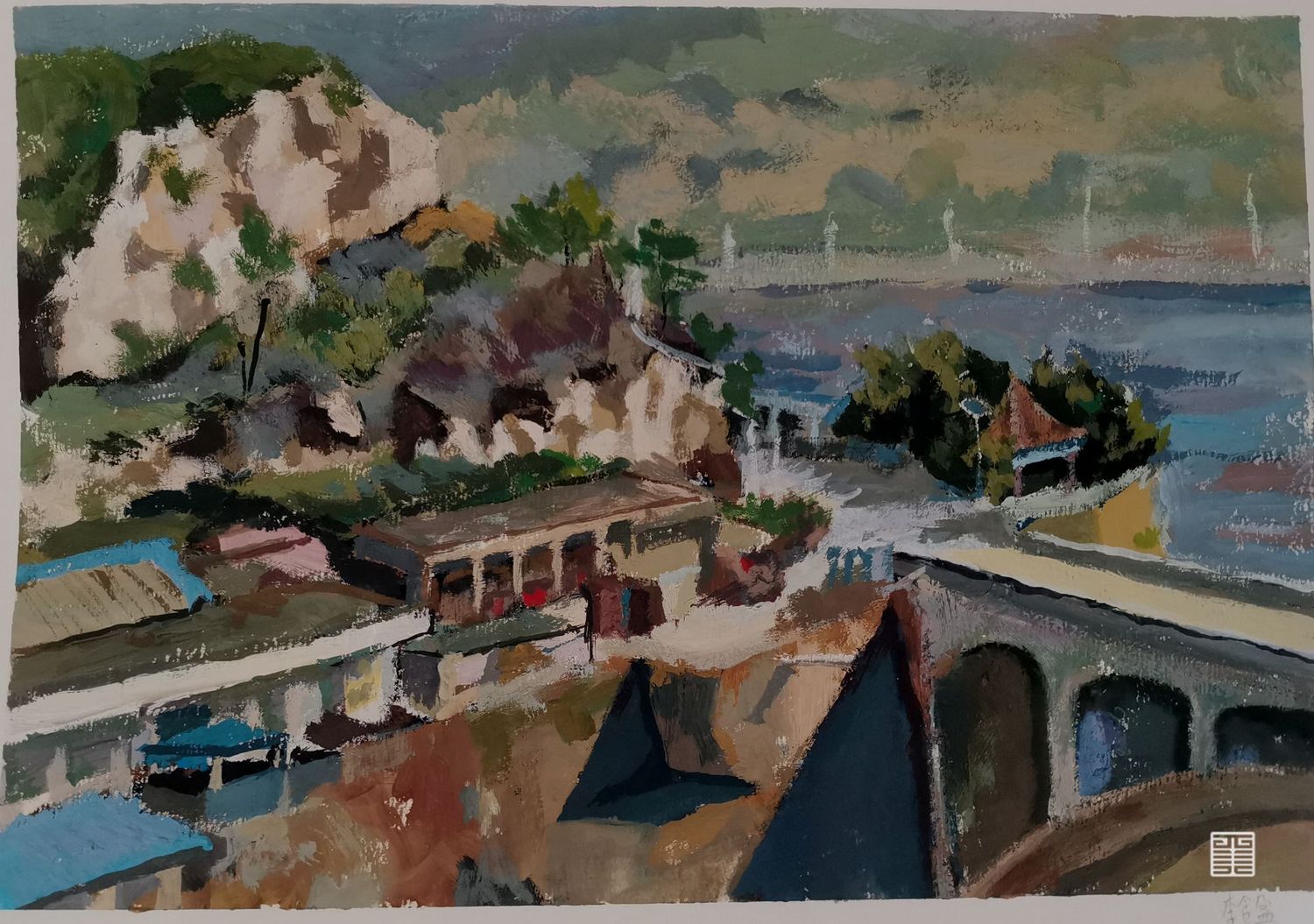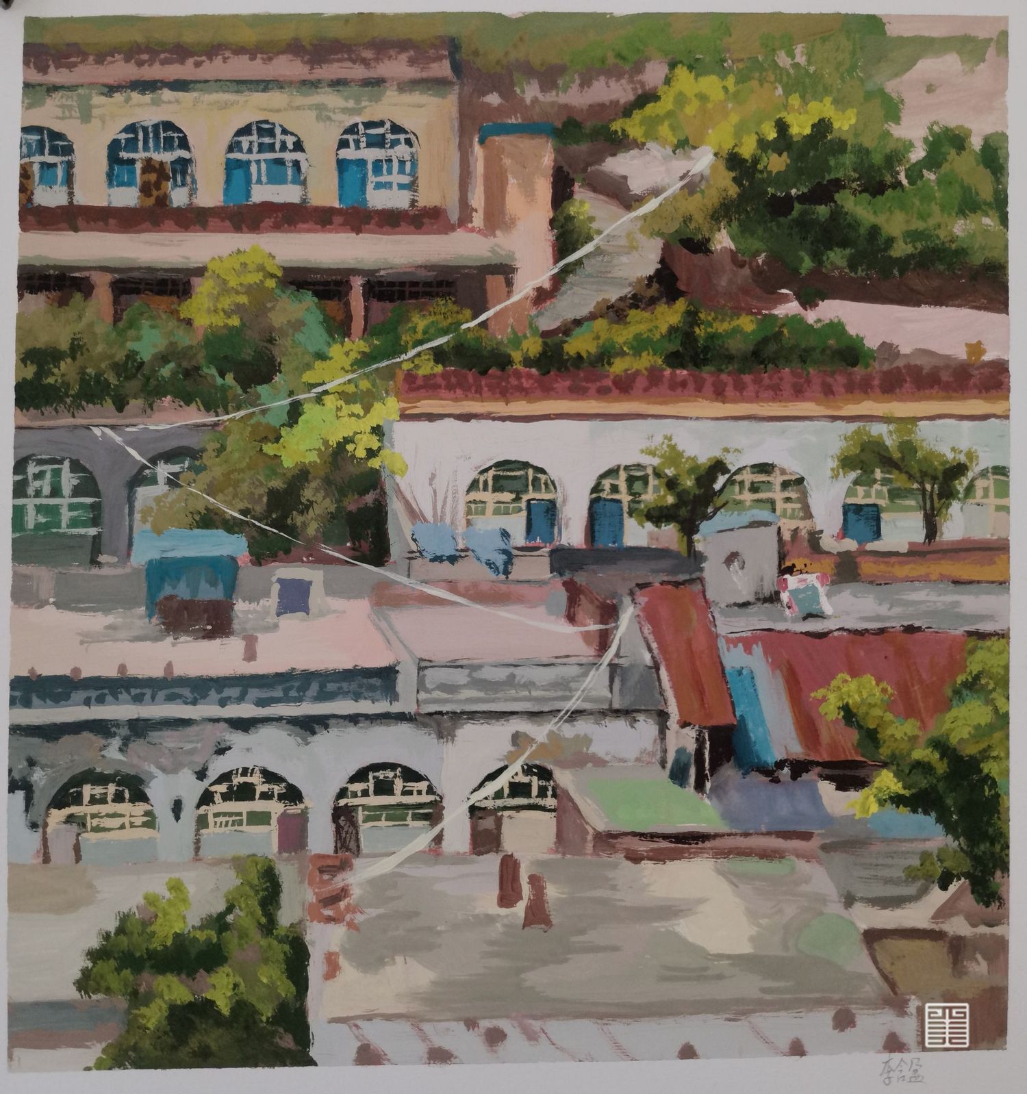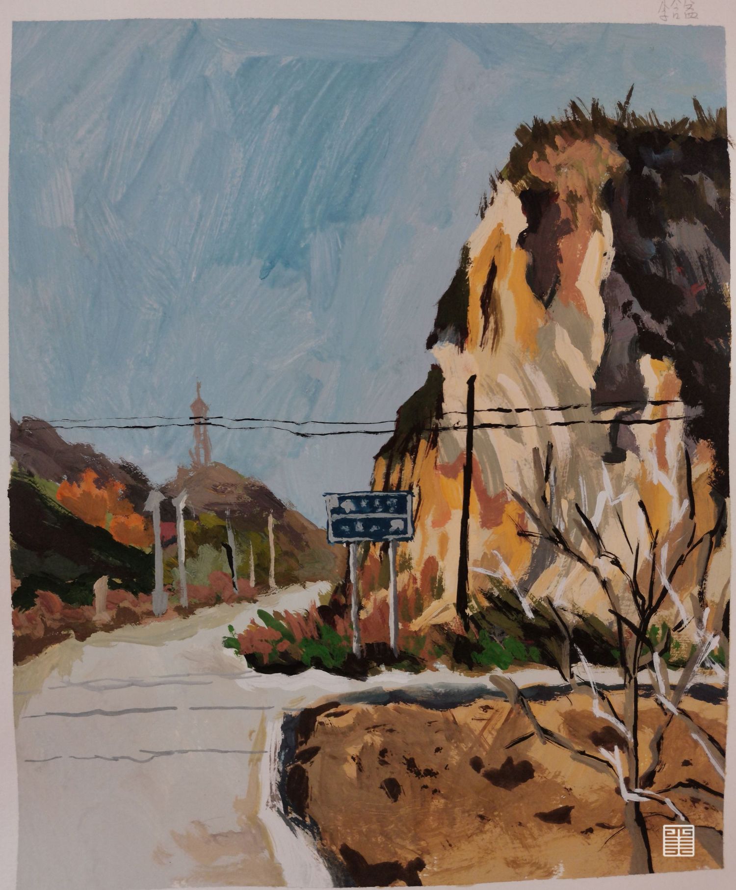 在作品的选材上,我主要选择了陕北地区最具有代表性的窑洞作为创作题材,以纸本水粉的方式进行绘画,在陕北写生的一个月期间,我们也住在窑洞,将自己真实的置在陕北的这样一个风土人情中,用最真实的感官亲自触摸与自己相处的地方完全不同的美感,尽量将自己的感受完整的表达出来。