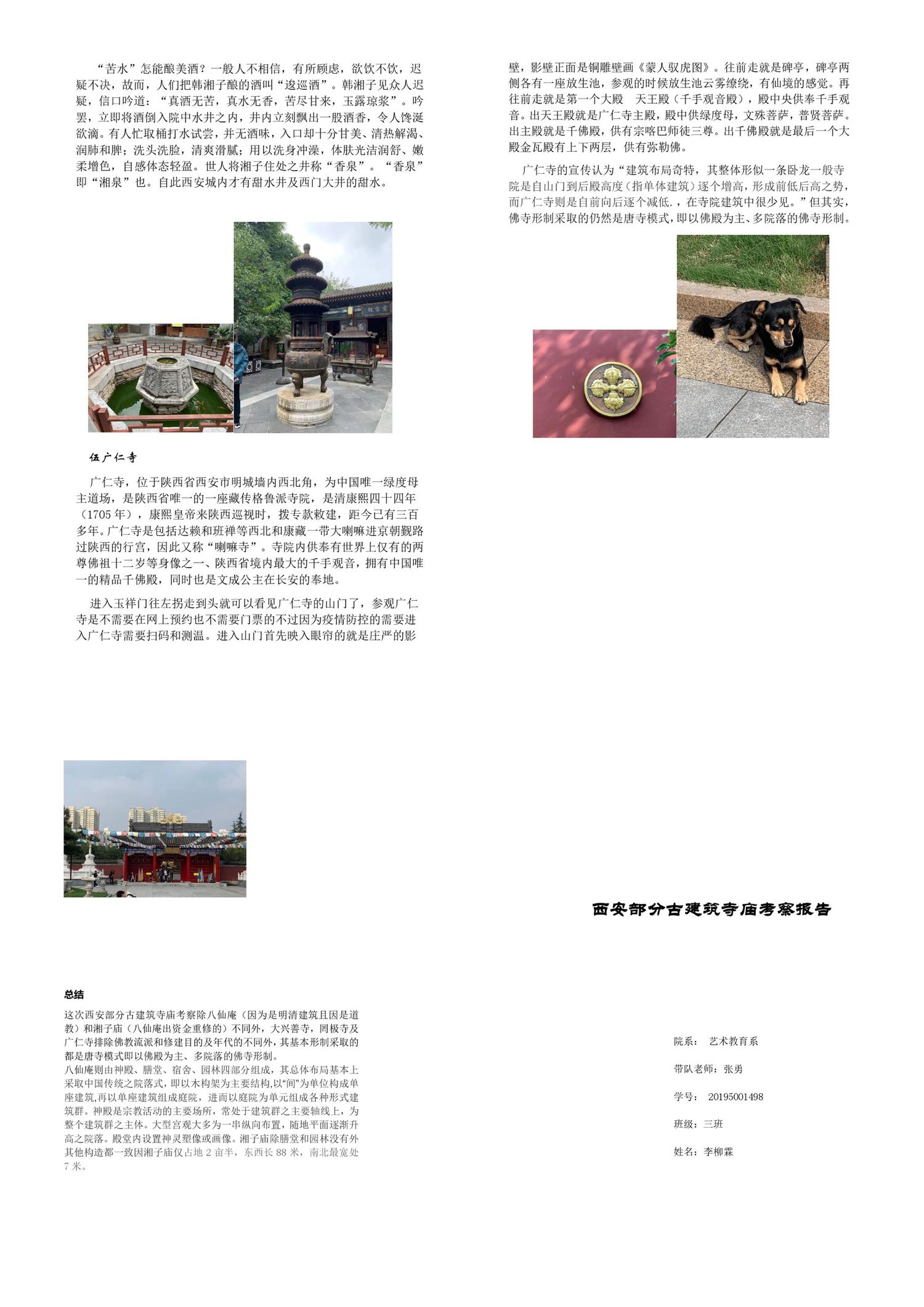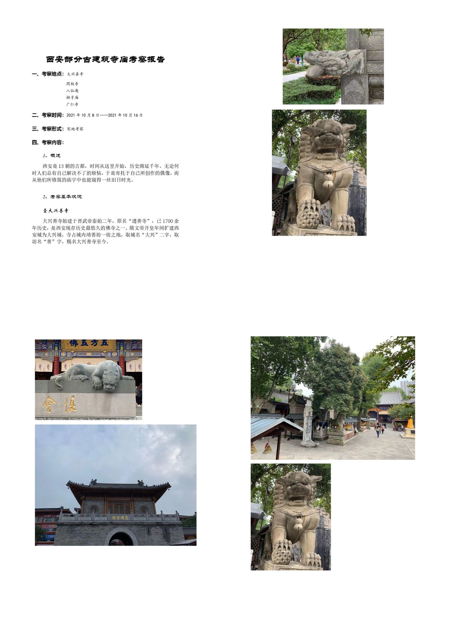 艺术教育专业结合教育实践在西安进行部分古建筑寺庙的考察报告