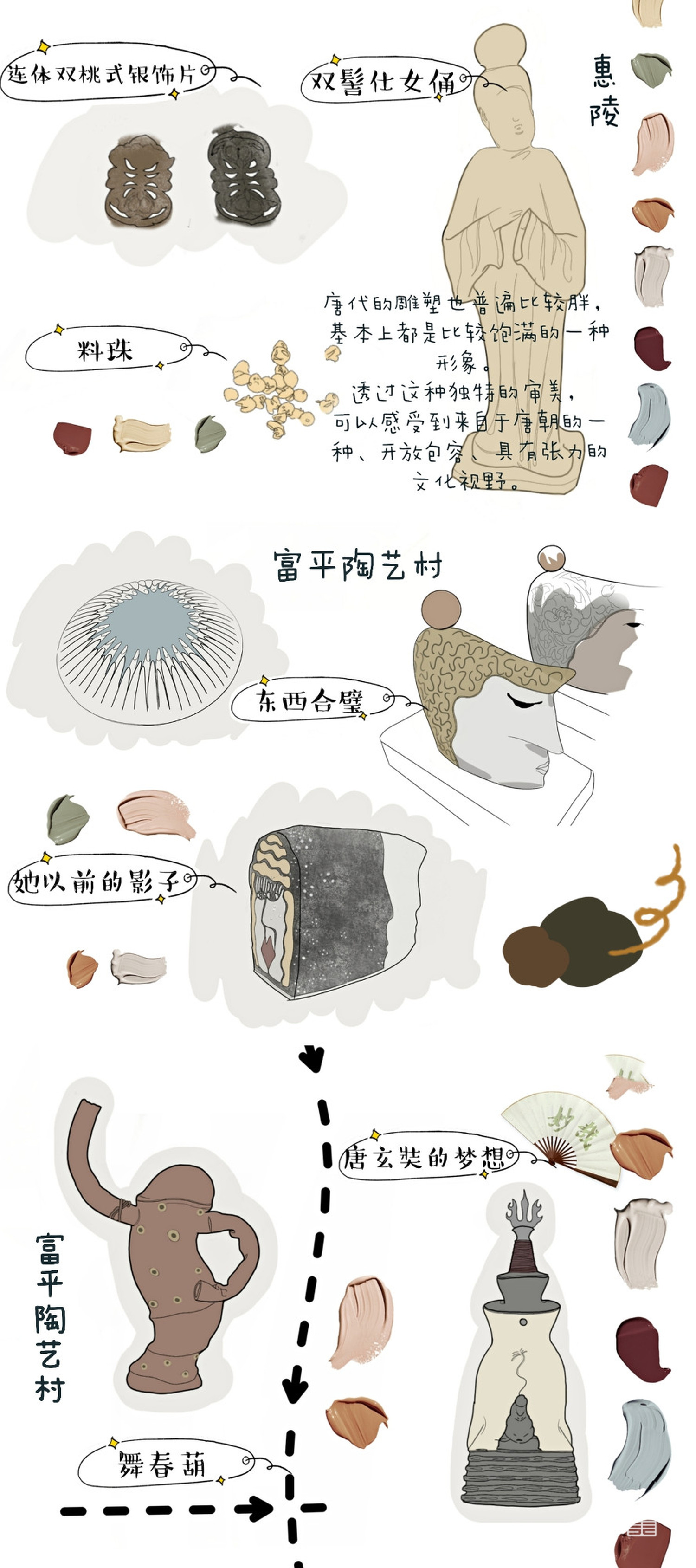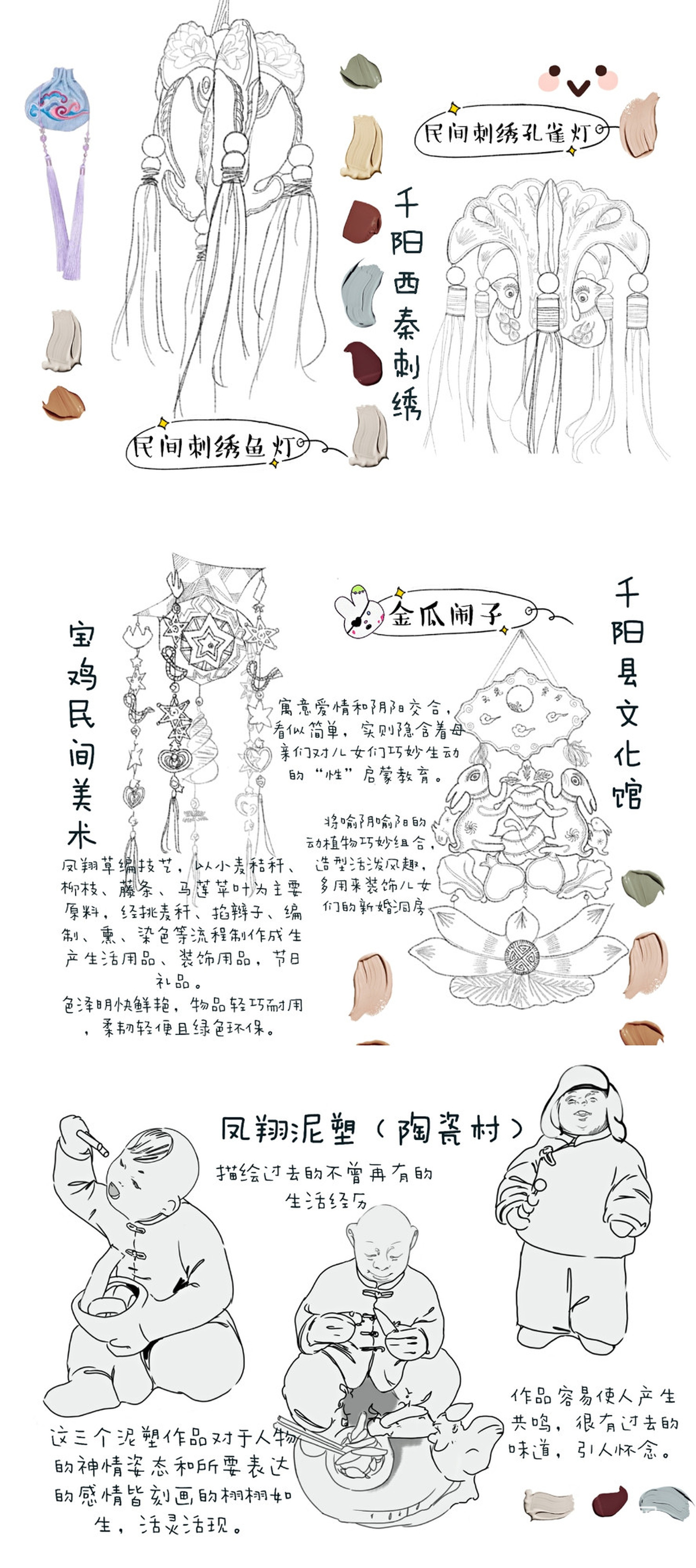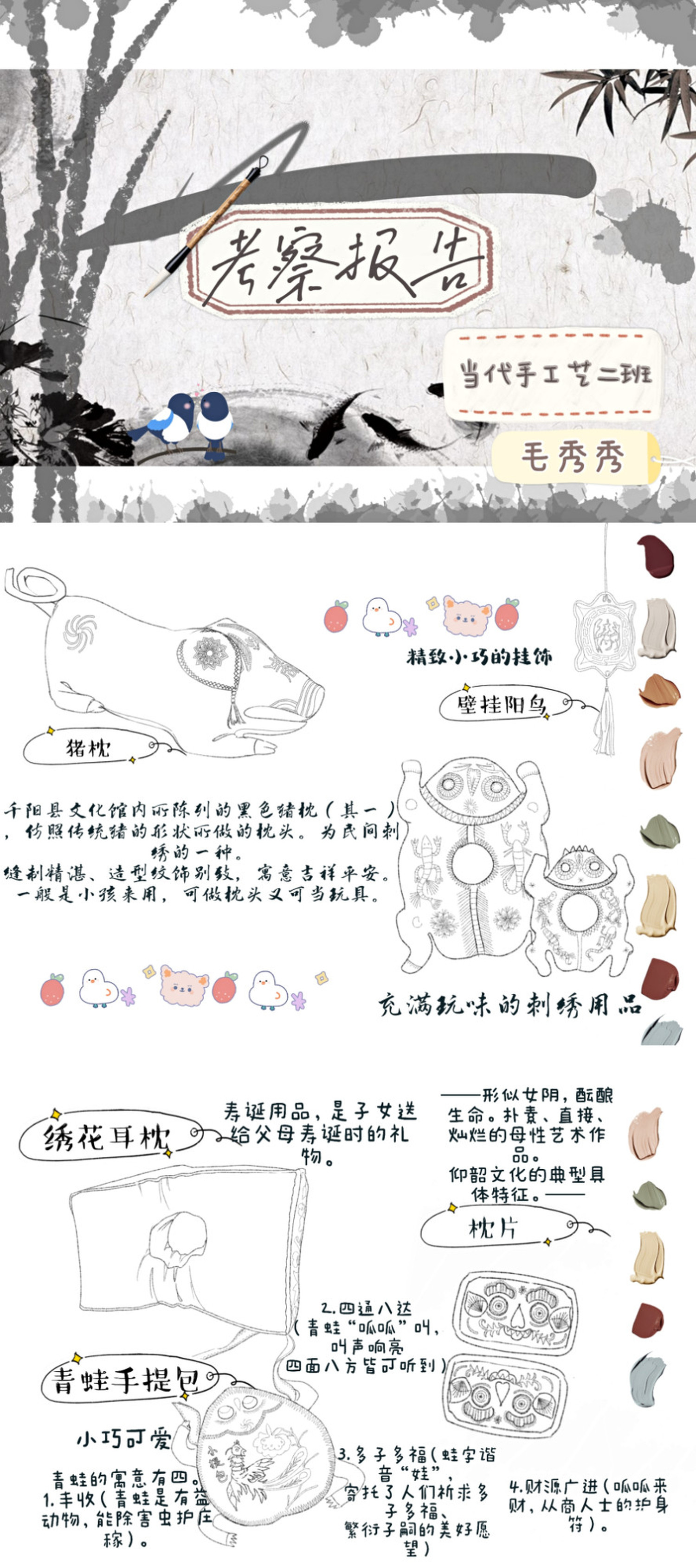 图1为根据考察所创的文创作品,图2—图8为考察报告,图9—图10为考察期间部分速写。