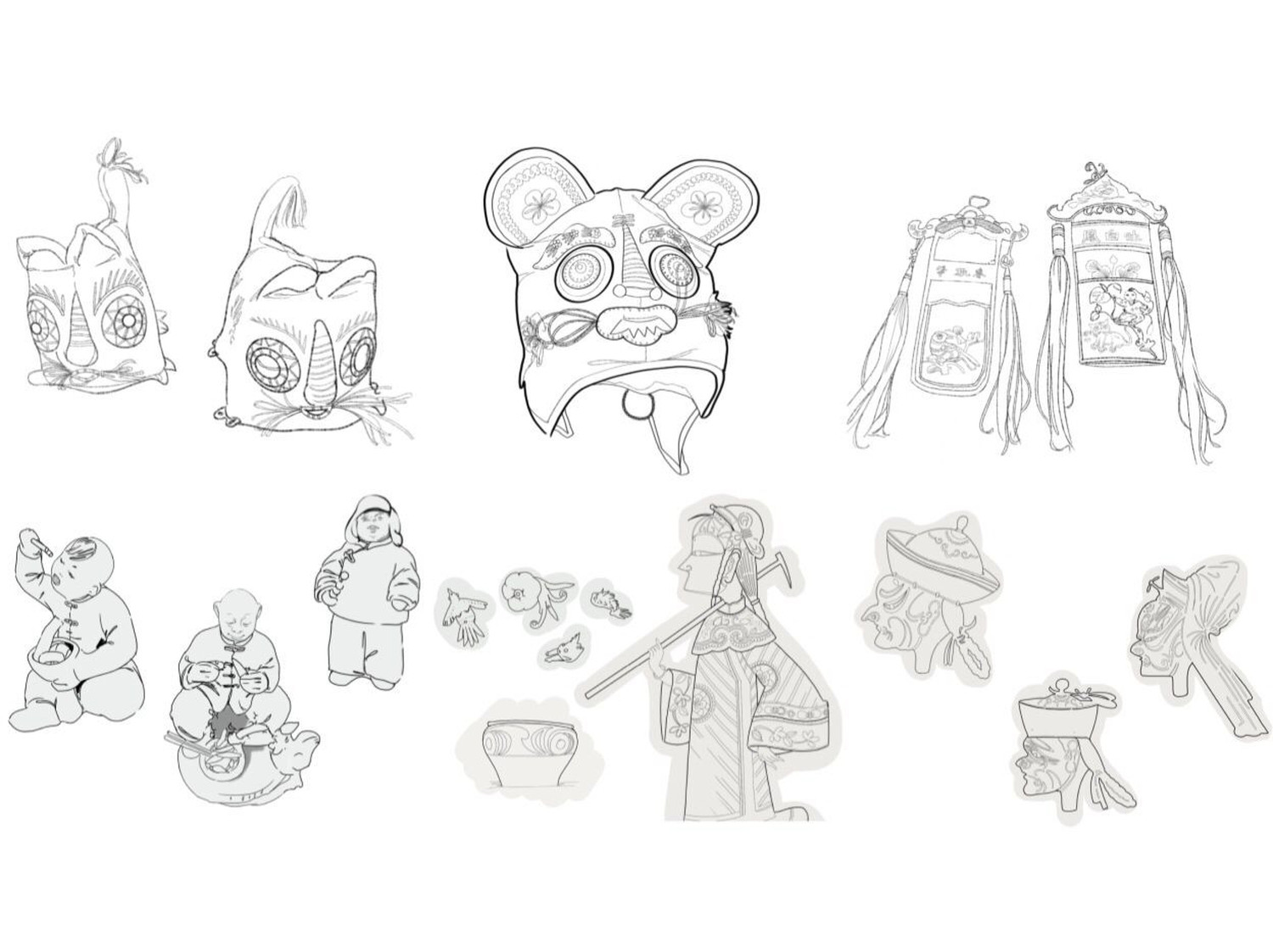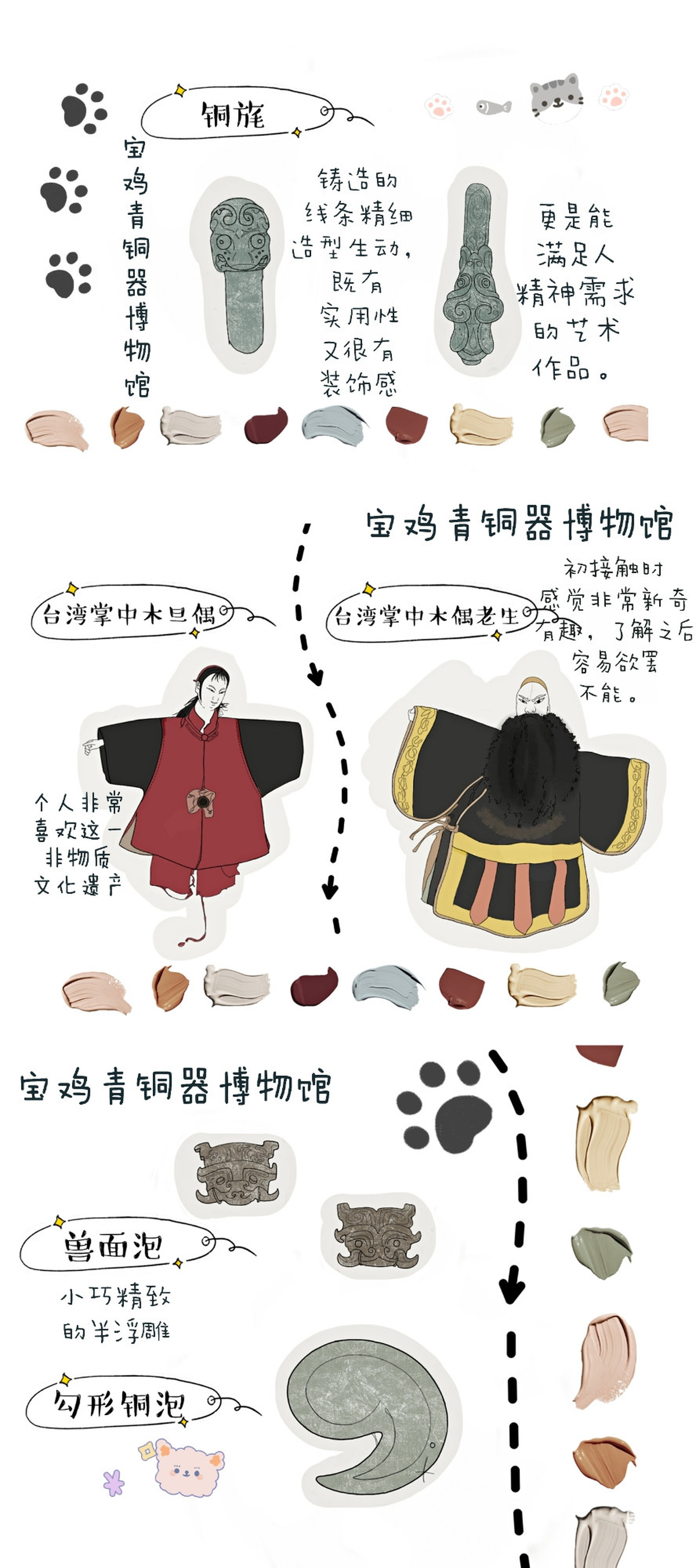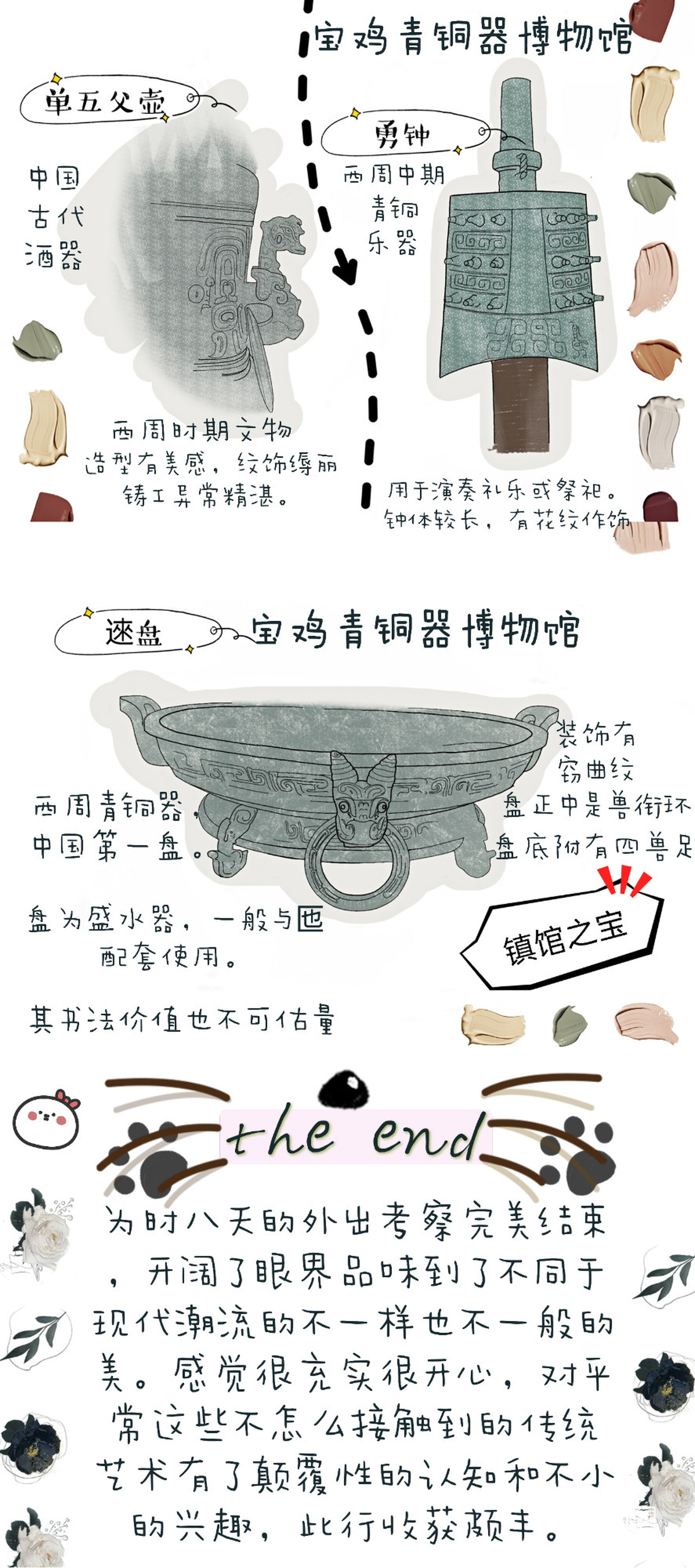 图1为根据考察所创的文创作品,图2—图8为考察报告,图9—图10为考察期间部分速写。