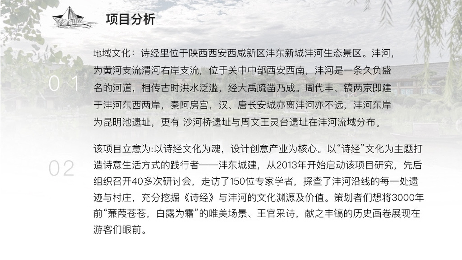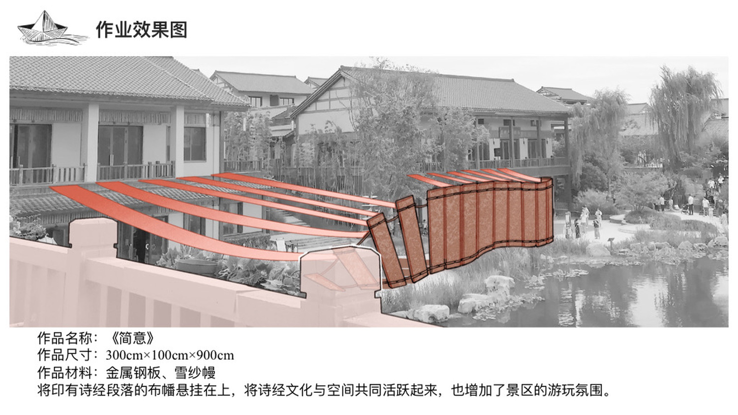 将印有诗经段落的布幡悬挂在上,将诗经文化与空间共同活跃起来,也增加了景区的游玩氛围,打卡人数的增多也会带来更多的人流量。
