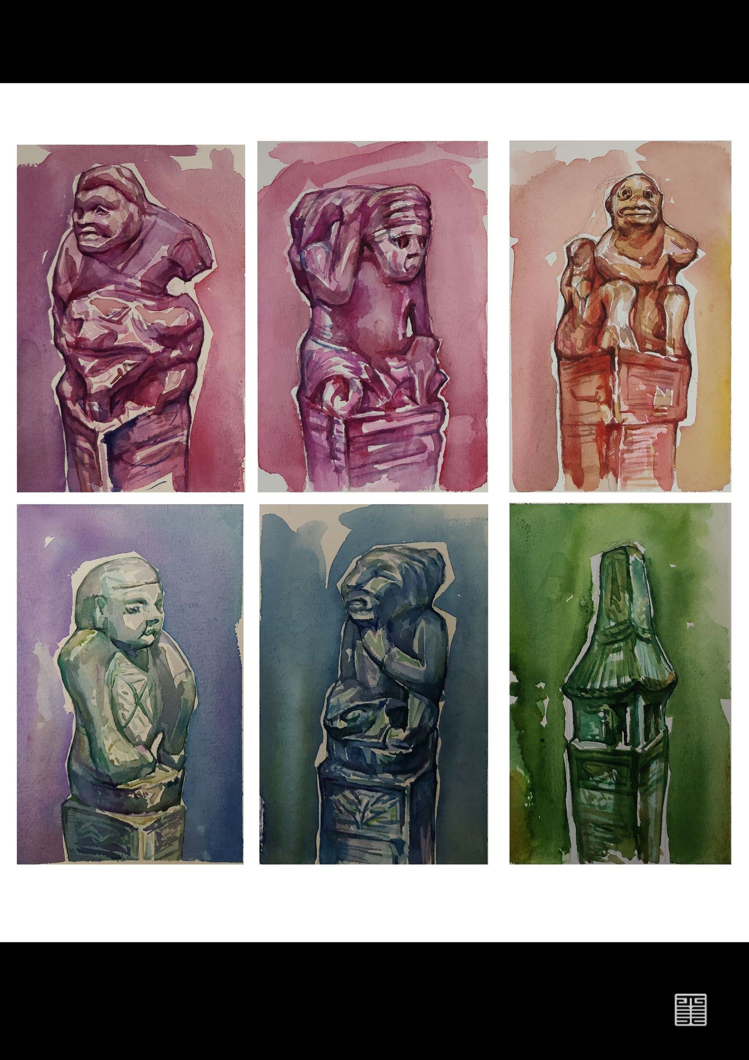 在本次写生中被拴马桩生动的形象所打动,所以创作了这几幅作品。