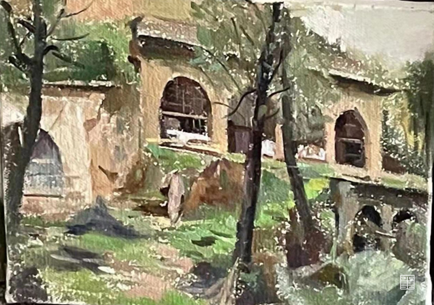 作品色彩清冷明亮,展现了下完小雨后的草坪湿冷的鲜艳的状态