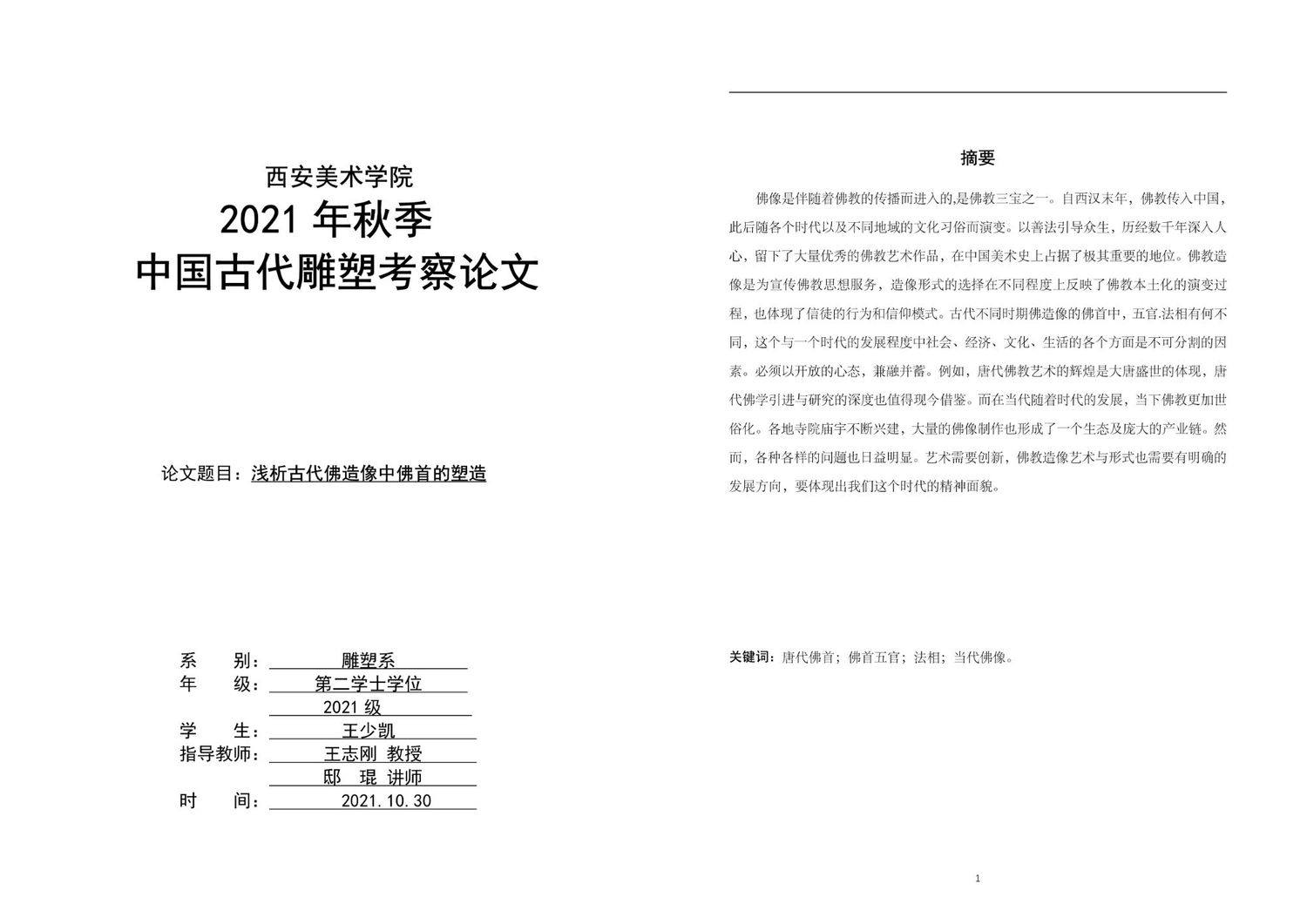 自西汉末年,佛教传入中国,此后随各个时代以及不同地域的文化习俗而演变。佛教造像是为宣传佛教思想服务,造像形式的选择在不同程度上反映了佛教本土化的演变过程,也体现了信徒的行为和信仰模式。不同的造像形式对宗教仪式在地点、规模、参拜方式等方面有影响,宗教仪式也显示出对佛教造像形式的限制和约束。在中国古代雕塑史中,雕塑大都是由民间艺人雕凿的,通常反映了当时社会人民大众的审美标准,反映了所在时代的政治大背景。在本篇文章中,我研究不同朝代佛像五官的塑造以及对当代佛像塑造的理念与方法。