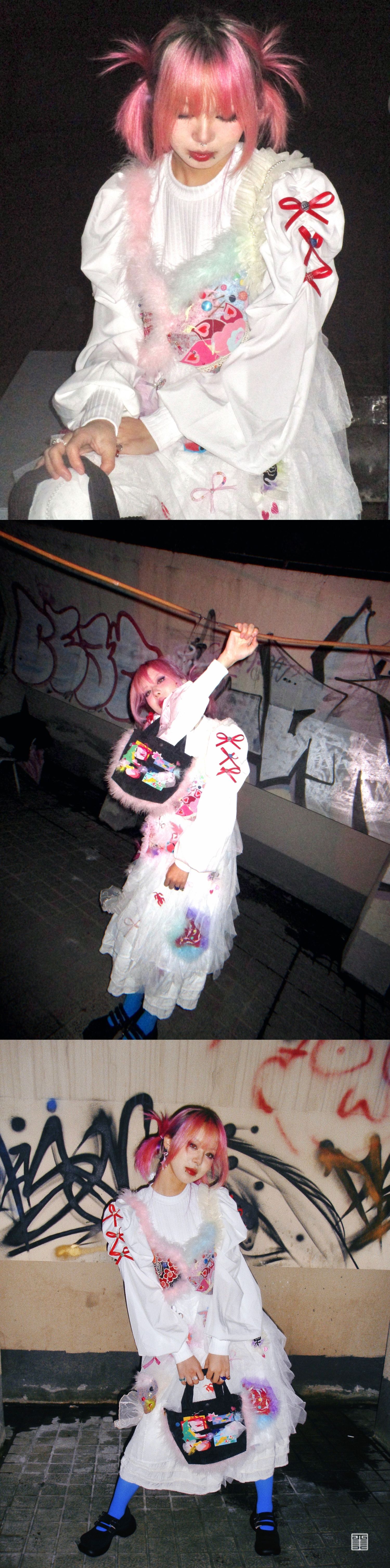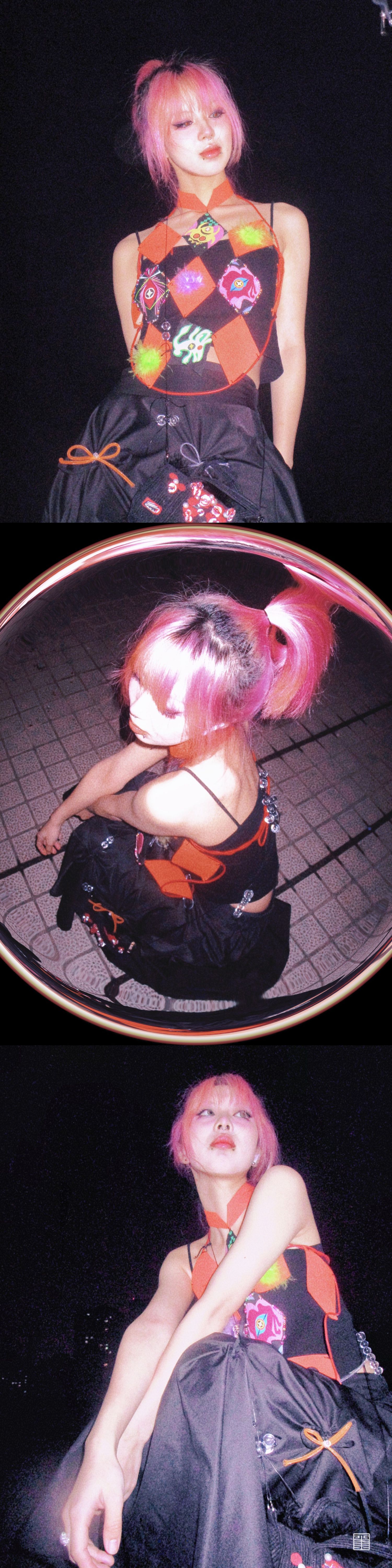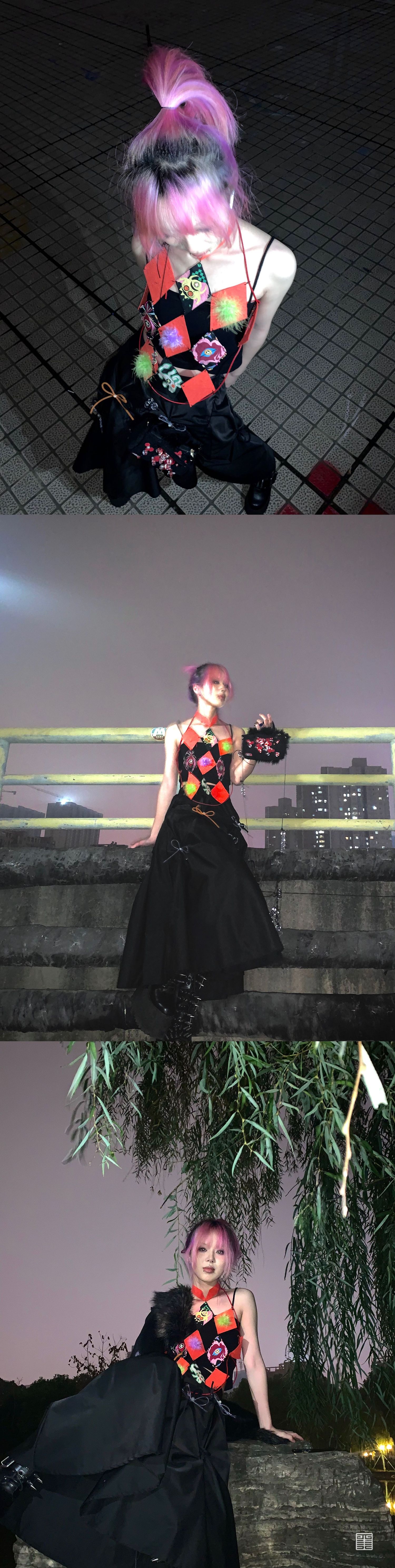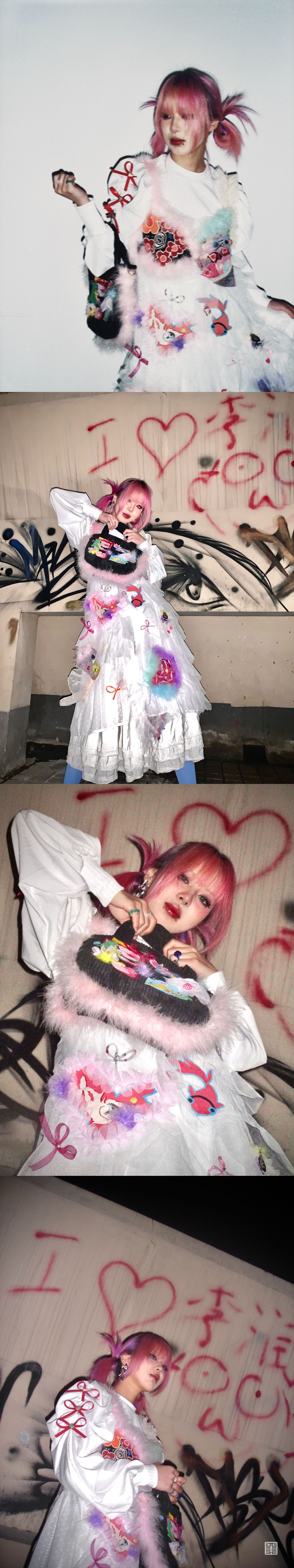 当今社会,人们在追求物质生活的同时更需要丰富文化生活。这两套的设计通过这一社会现象为起点。紧追时代的号召,从中国优秀传统文化——“布堆画”中汲取灵感。通过对中国传统纹样的提取再设计,来呼吁人们传承与发展中国优秀的传统文化。采用布堆画的传统图形进行设计装饰,并借用拼贴的手法对其进行叠层处理,表现出传统与现代时尚结合的层次美感。服装结构上运用多模块化解构主义进行现代感表达,使服装层次感更加鲜明。