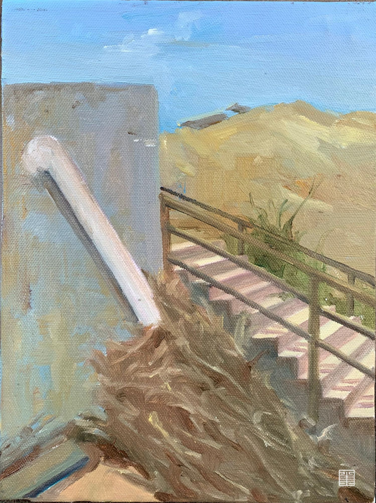 我在构图上也思虑良多斜着的白色管子,斜躺着的秸秆,沾满黄泥的灰墙碧蓝的天空,那天的快乐不言而喻。
