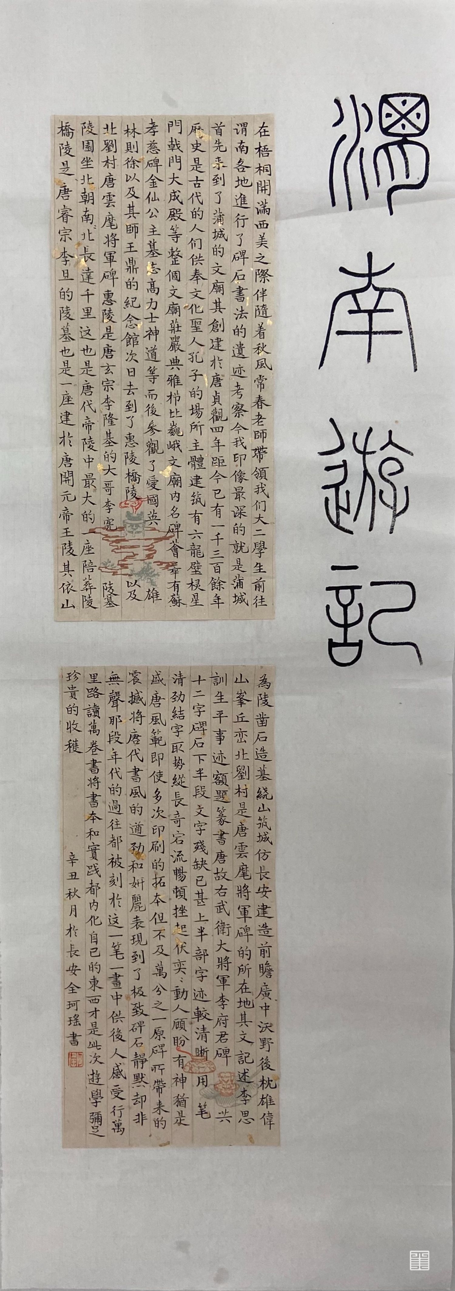 在梧桐开满西美之际,伴随着秋风。常春教授带领我们大二学生前往渭南各地进行了碑石书法的遗迹考察。令我印象最深刻的就是蒲城。