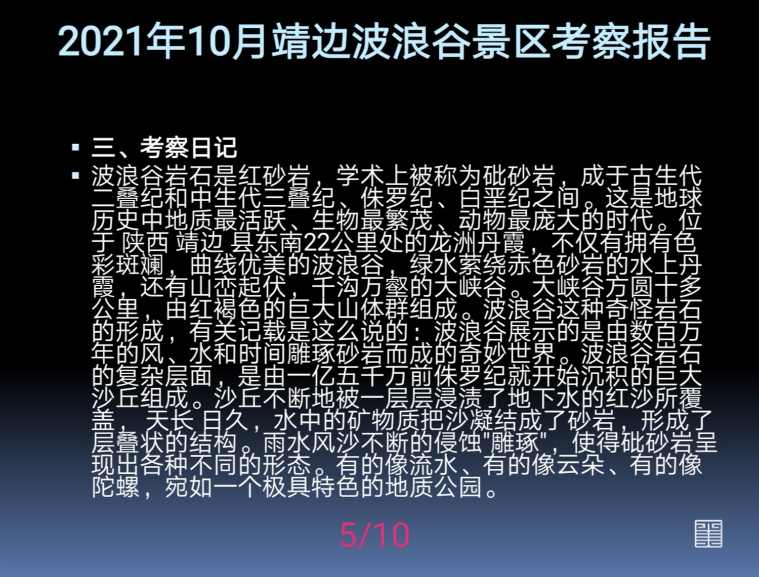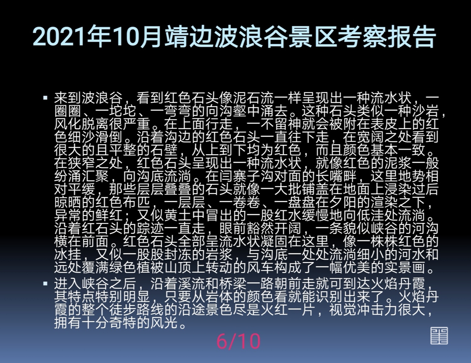 2021年10月波浪谷景区考察报告