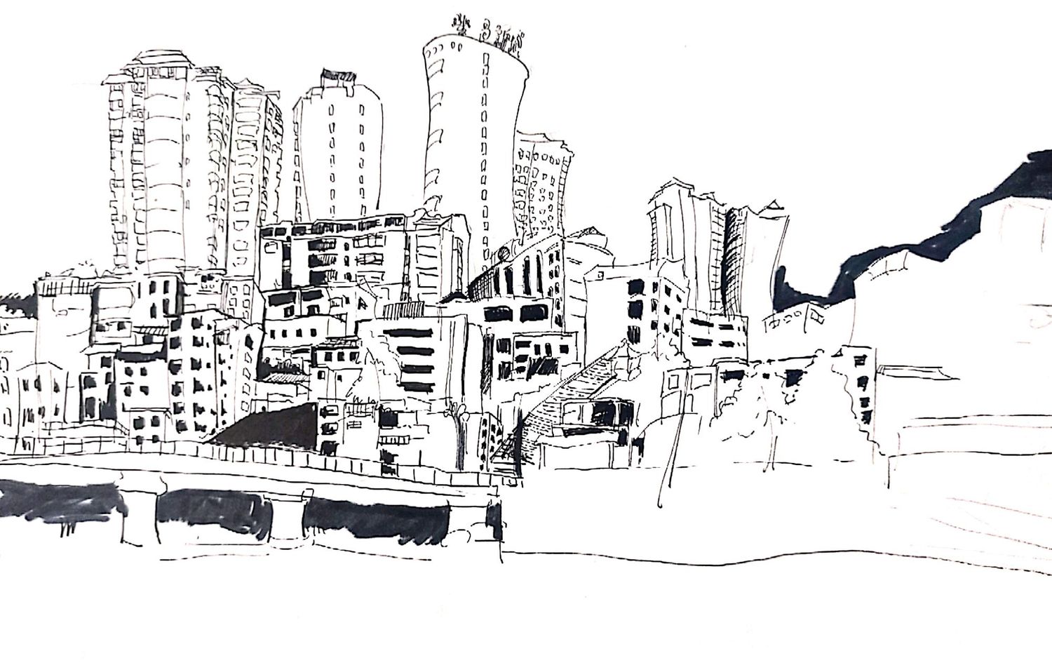 从汉江江面仰视的紫阳江城,有着错综复杂的美感。