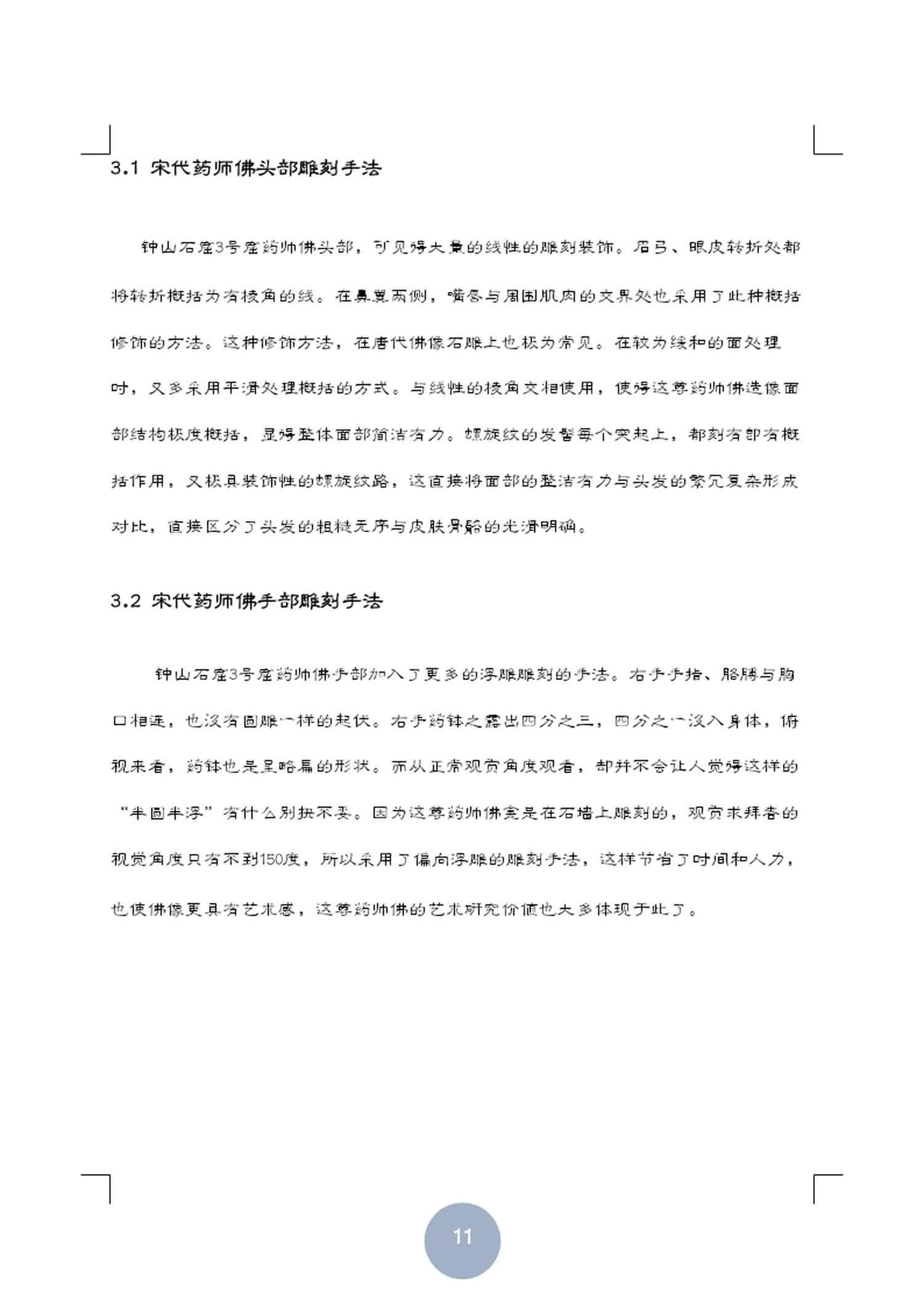 本文分为三个部分,首先分析钟山石窟三号窟的药师佛造像头部和手部的造型特征,然后分析钟山石窟三号窟的药师佛造像雕塑手法的特点及用意,接着通过分析钟山石窟三号窟的药师佛造像与社会背景的联系,提出宋代社会对于钟山石窟三号窟的药师佛造像的影响。