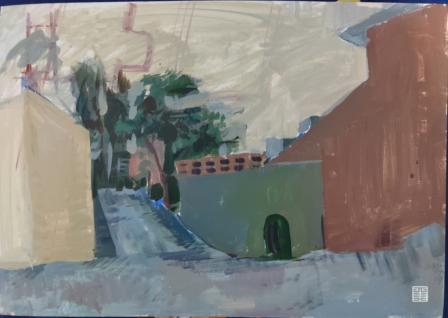 这张作品想用面和线的对比,色块形状的碰撞,色块之间的和谐,体现出主观的构图灵动性为主的抽象作品
