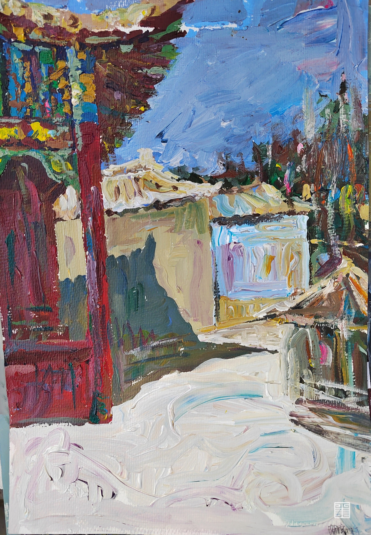 在陕北的一片黄土中,这个红色的亭子十分亮眼