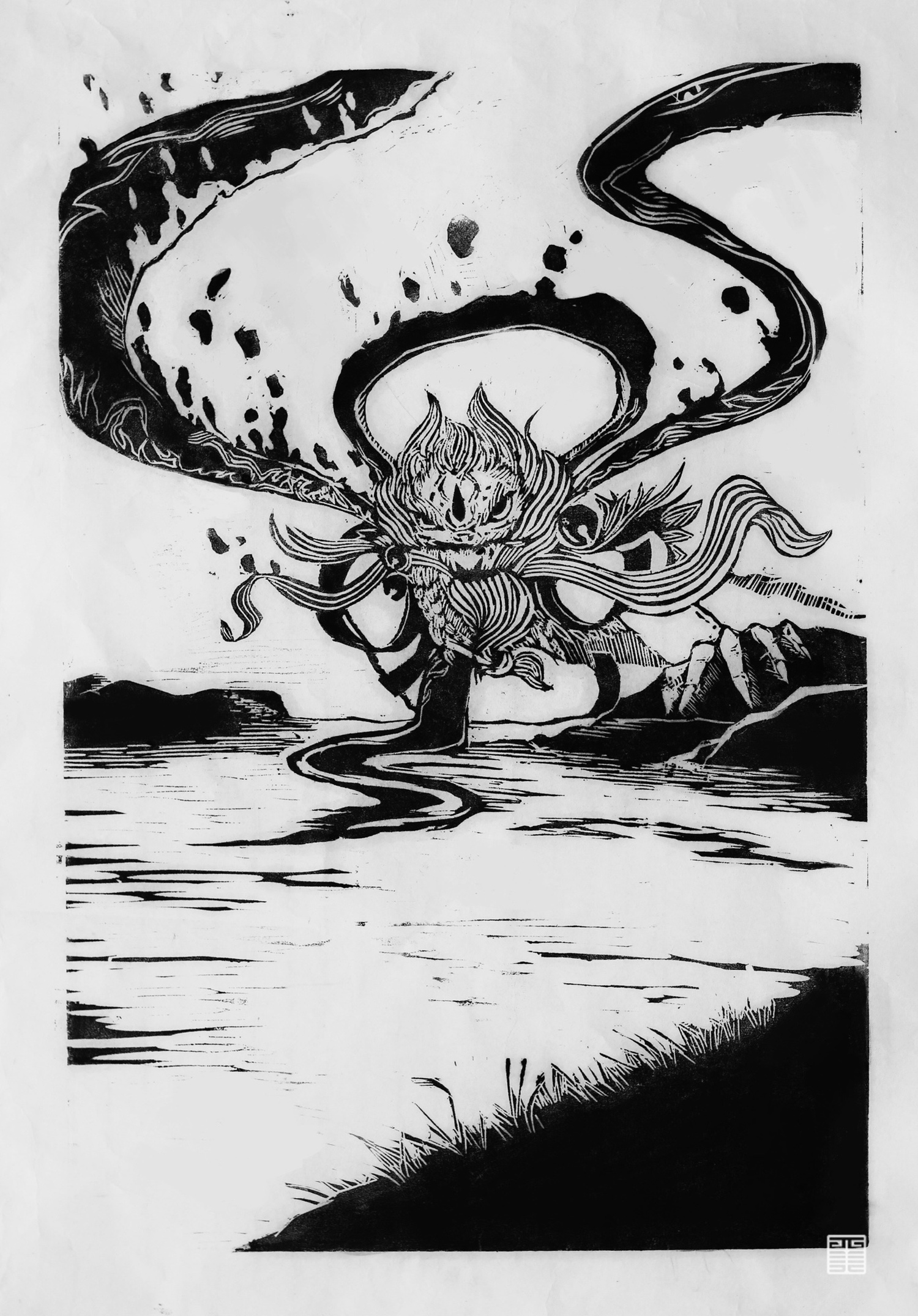 本次文化考察的创作主题是有关当地的神话故事。是以陕北地区的神话传说为背景,结合当地的风景文化来创作的。从黄河桀骜不驯不被驯服的形象来,展现黄河的气势磅礴恢宏大气,另一方面从黄河自古流传的神仙河伯为创作题材传说河伯可以换华为动物的形态,并以此为题材创作出黄河地区特有的动物,以夸张的表现是手法和拟人的心态。来刻画黄河风貌。和当地居民的生活状态。