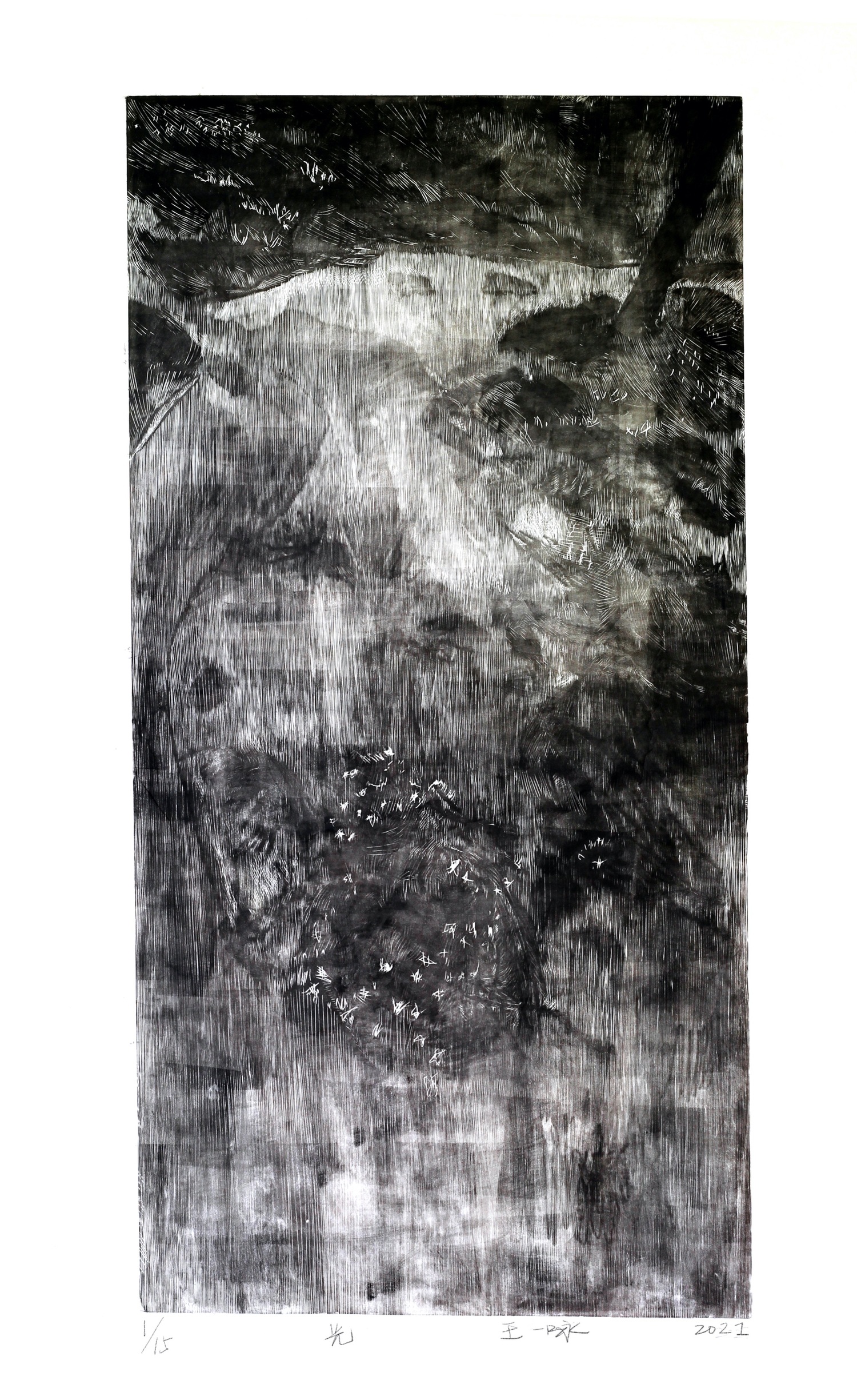 《光》强化自己的创作,不是写实不是照抄,而是表达出一种氛围和感受,希望能够表现出微妙静谧幽暗的氛围感,改变以往见过的黑白木刻常规画面,试图在画面直接呈现出微妙的灰色。
