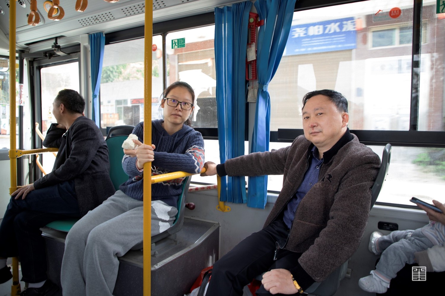 为什么要拍一路线?它是一个循环,也是这个小世界的一环。紫阳县的几乎每一个人,都可以通过这辆车达到紫阳某一地段。生命也是一个循环,从生到死,既定的人生路线。就像公交车的站点一样,几乎能一眼望到头,上学、工作、结婚、生子、带娃、养老。每个年龄段的人在不同地方下车,学生去紫阳中学,成年人可能去黄金商贸城,老人去紫阳广场。车永远在前进,过一站少一站,下一趟又接着循环。倘若当下我与你相遇,相互给这枯燥的旅途解解闷,又有何不可。