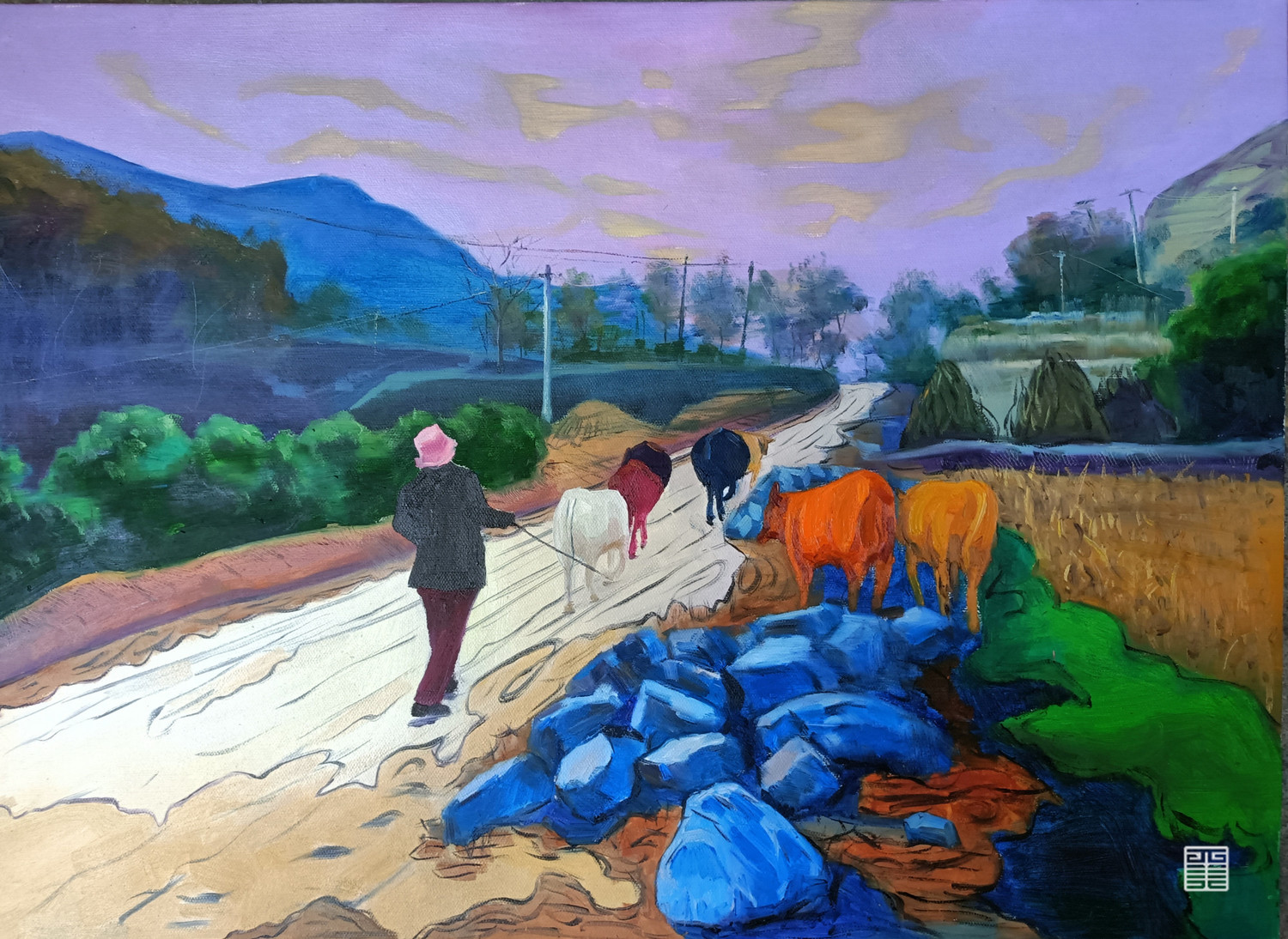 太阳下山了,一群牛群忙着“回家”,一天的收获与疲惫感,随着夜晚的来临,一些又恢复了平静!
