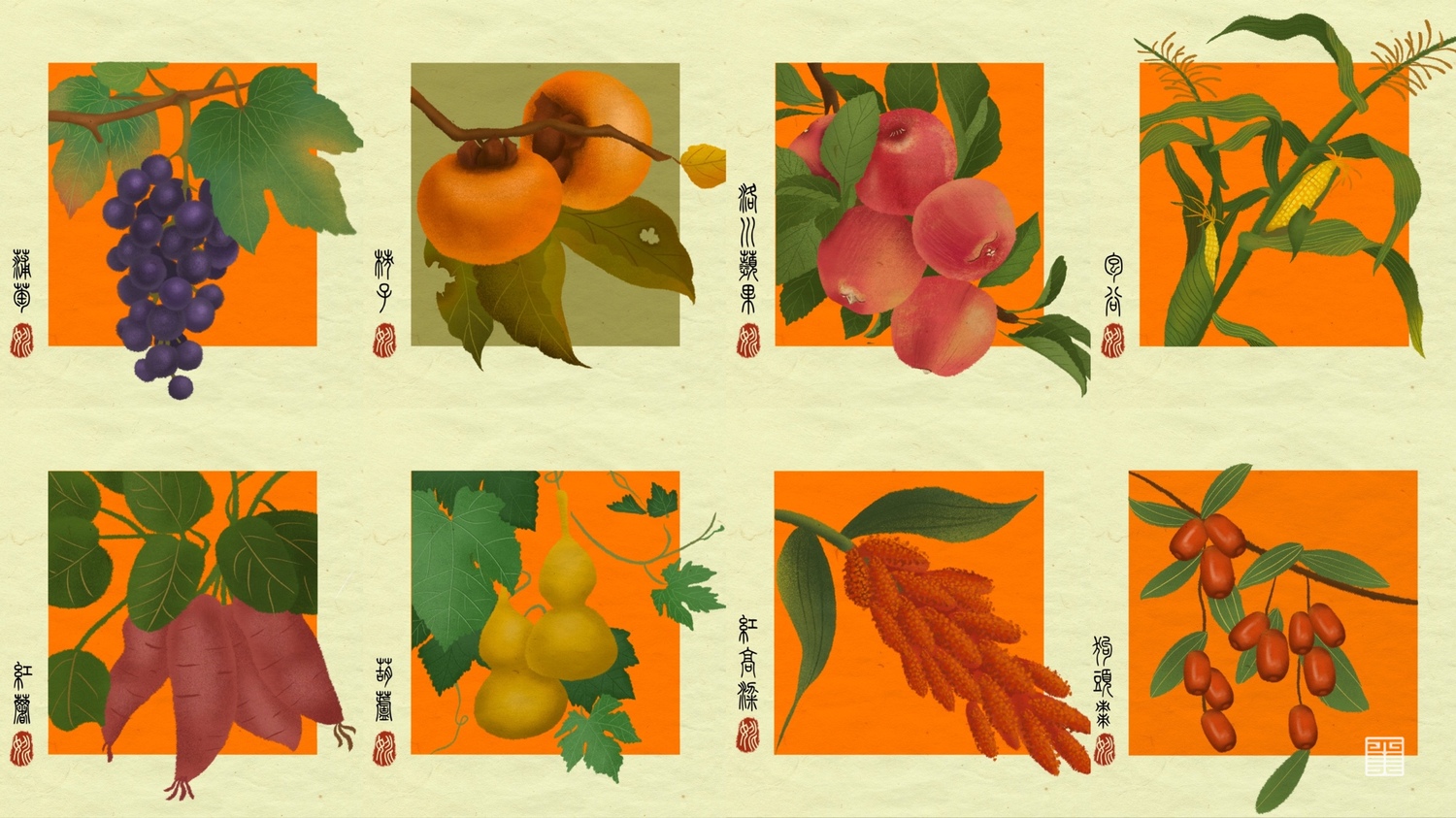 作品9: 本作品是在陕北佳县写生当地所见的农作物的集合。