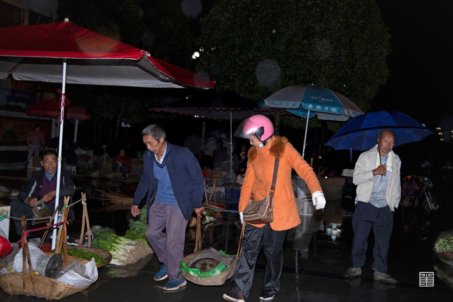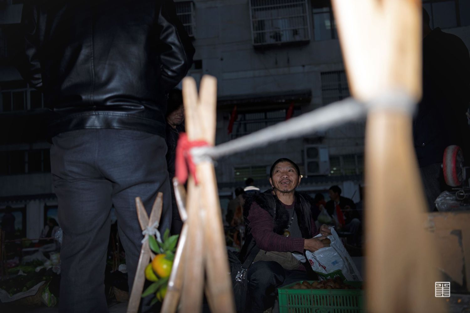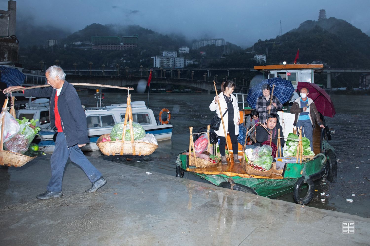 第一批来摆摊的基本都是附近的居民,七点多会有坐第一班船来摆摊的,船离港口还有很远,在岸上已经能看到他们站在船头准备挑起扁担了。听说九点多还有一批,但我从来没有等到这个时候,我觉得这一批乡亲们很幸运的是没有遭受过我的闪光灯。我的拍摄入侵感很强,但他们从来都没有抱怨过我的打扰。