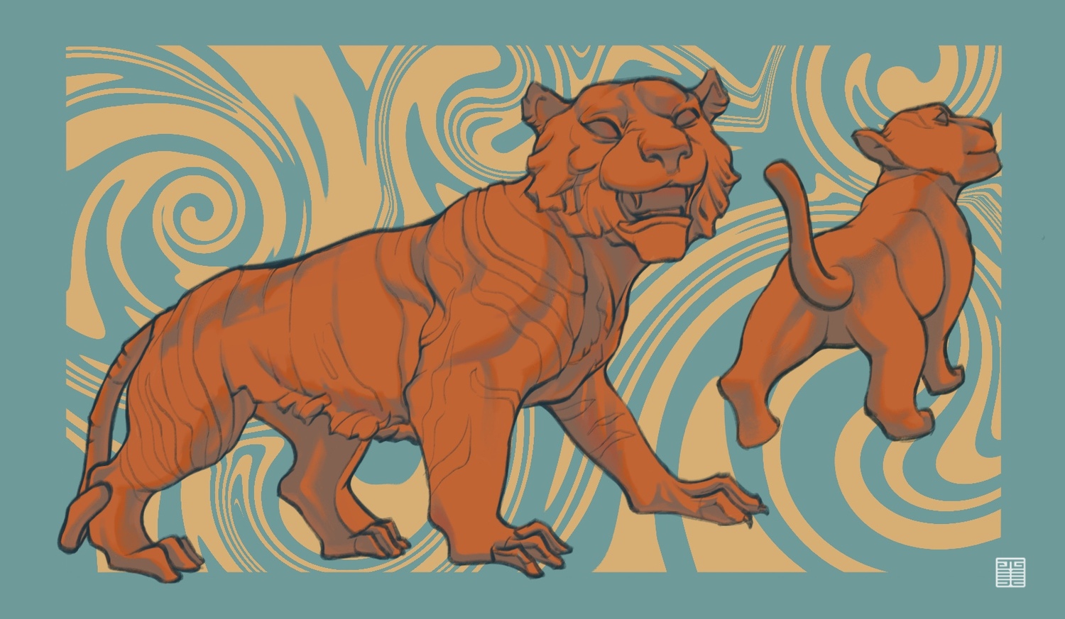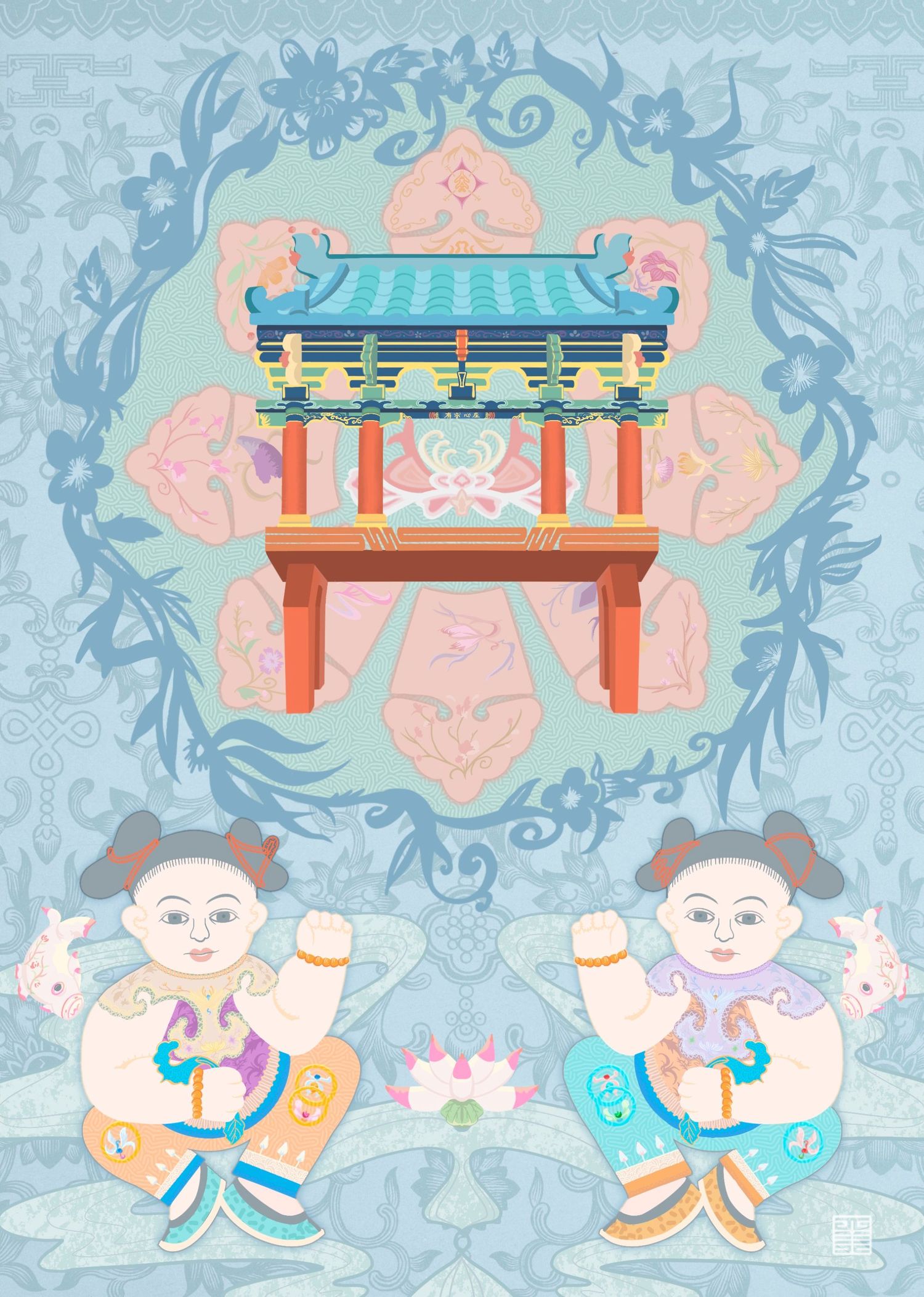 通过在陕北的十多天写生,考察到了陕北特殊的民俗文化,融合了一些陕北的祭祀活动的物件和一些传统纹样,创作出这副画,是陕北人民美好愿望的寄托,有着很好的寓意。