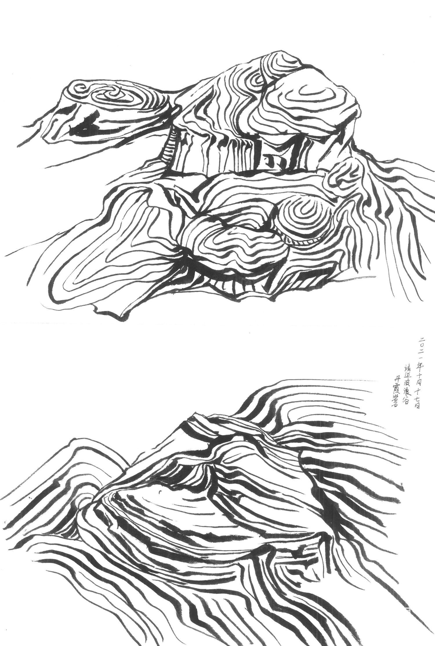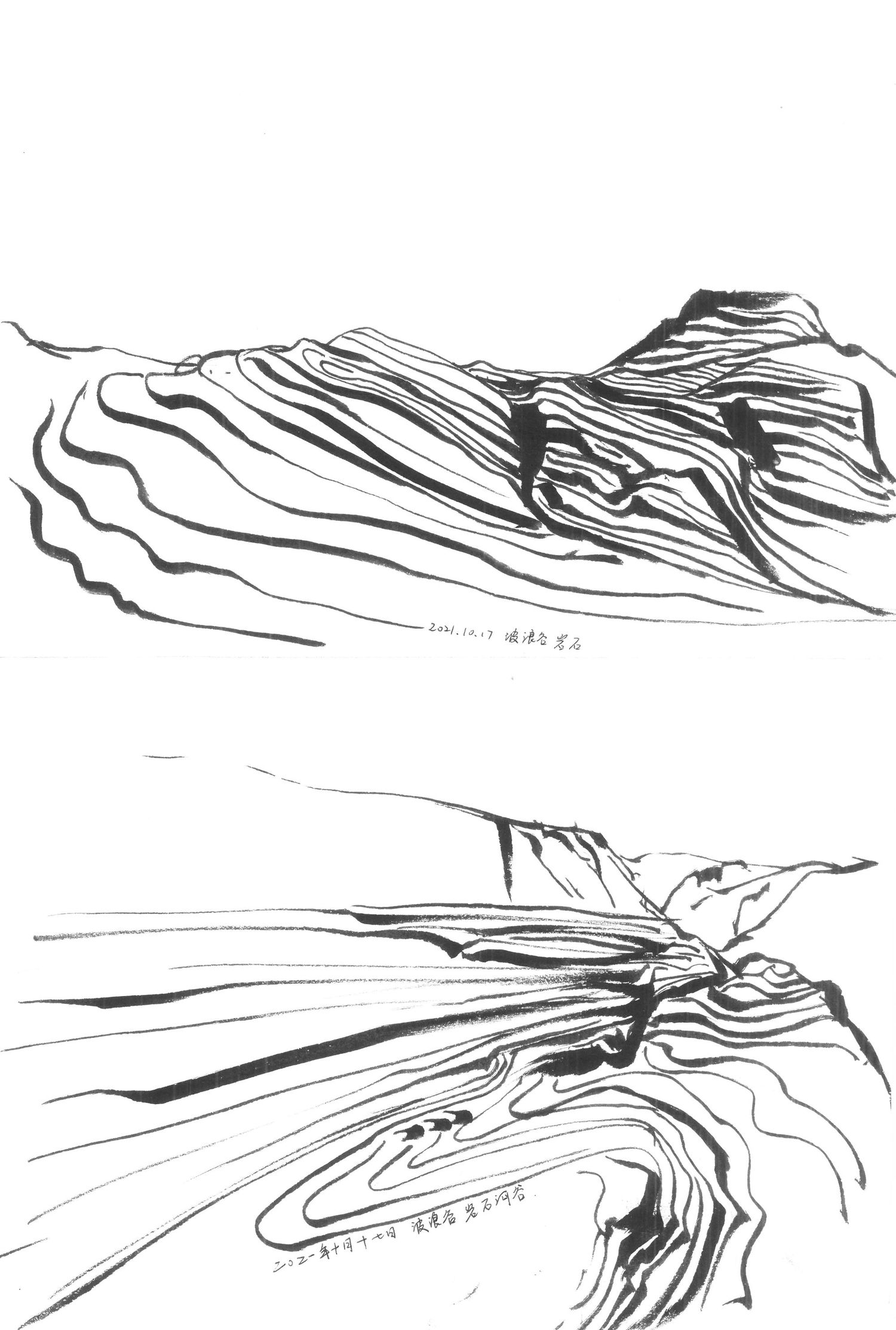 围绕陕北自然风光写生而成,千沟万壑的黄土高原一眼望去无边无际,土地好似被雕刻一般起伏跌宕,景色震撼人心。波浪谷丹霞地貌的岩石形状各异,虽为岩石,但其纹理细腻顺滑,似水流一般流淌在表面,就像是梵高画中的笔触。炕头狮子的奇怪表情难以想象,令人好奇以前人们眼中的世界。