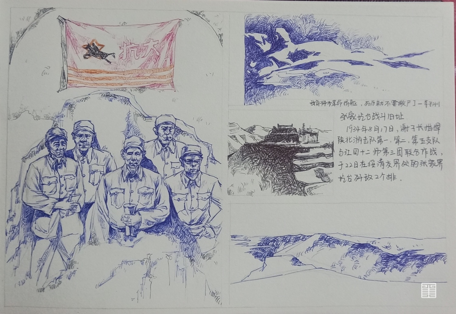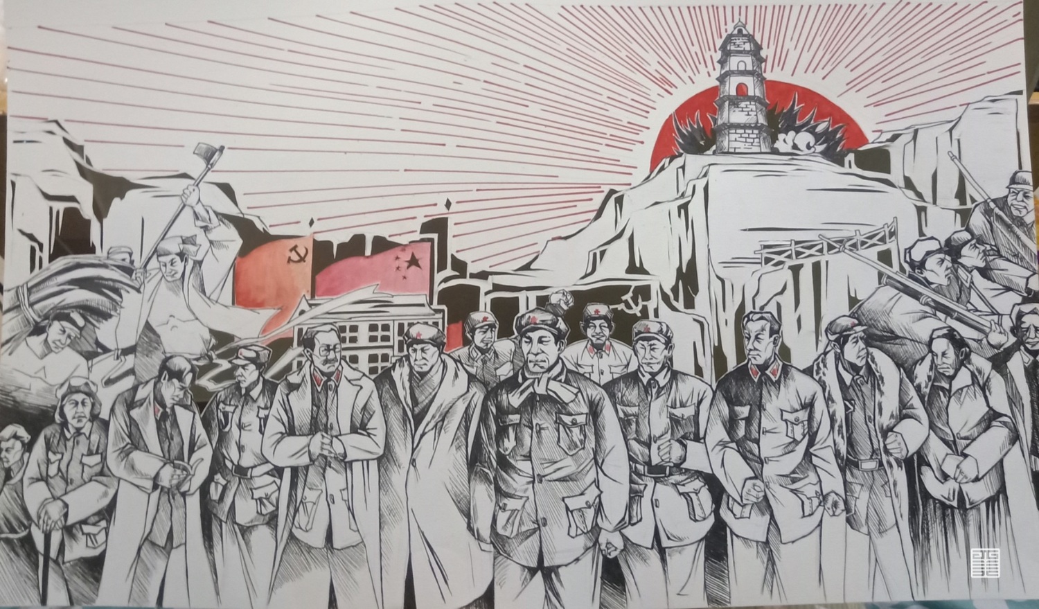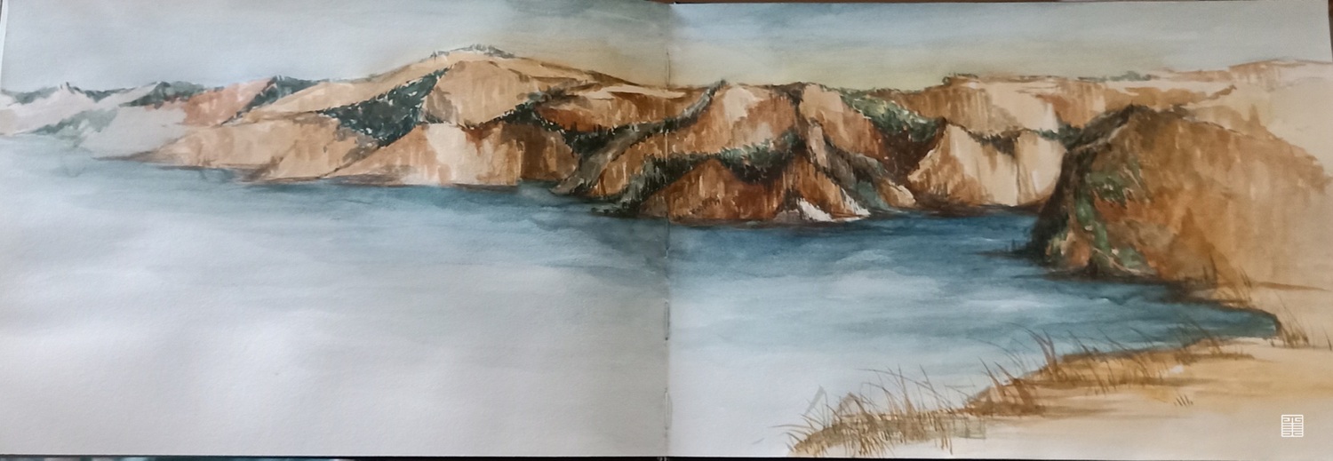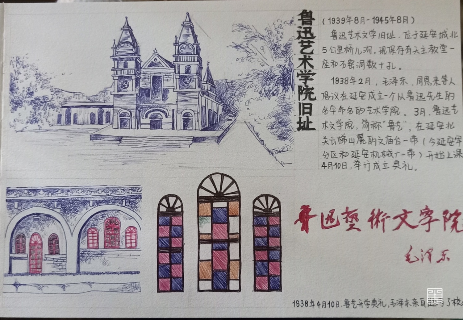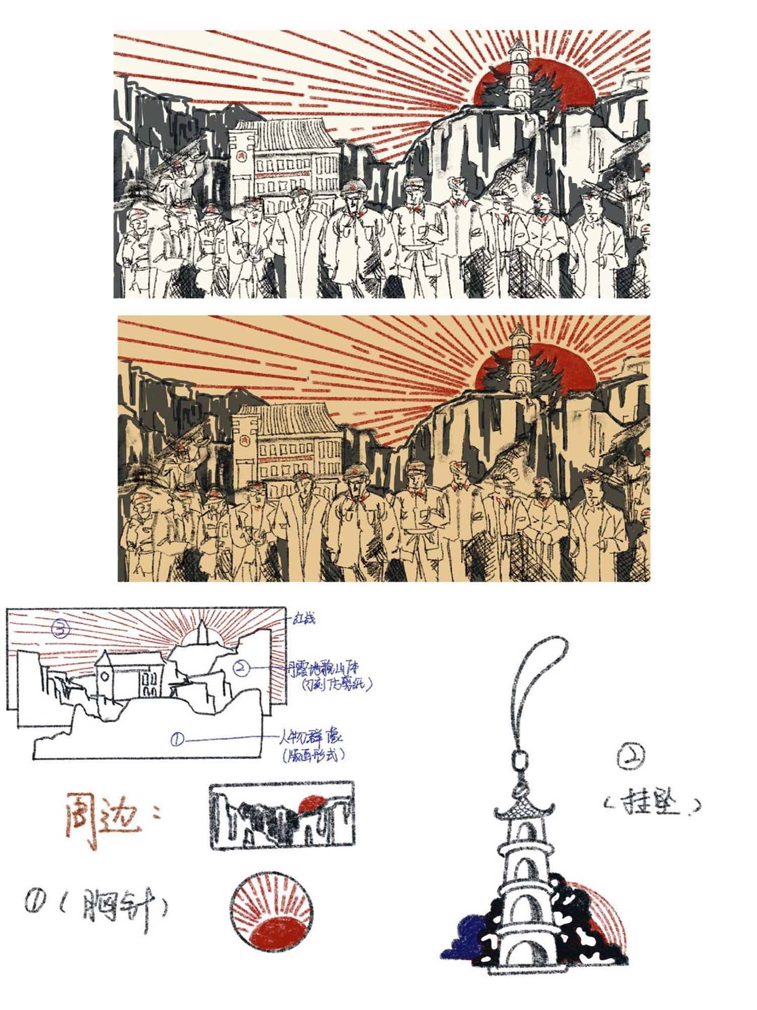 踏在黄土高原上,丹霞奇立,鞋底采集了黄土的浑厚,棉服承袭了高原的泠冽,碗里挥散着北方的鲜美,手中的画笔记录着金灿灿的历史。麻黄梁的蜿蜒流露着时间的推移,枣园的寂静映照着逝去的热血挥洒。陕北之行,历史涌入眼帘,只能用手中的画笔去记录,去诉说金色的北方故事。